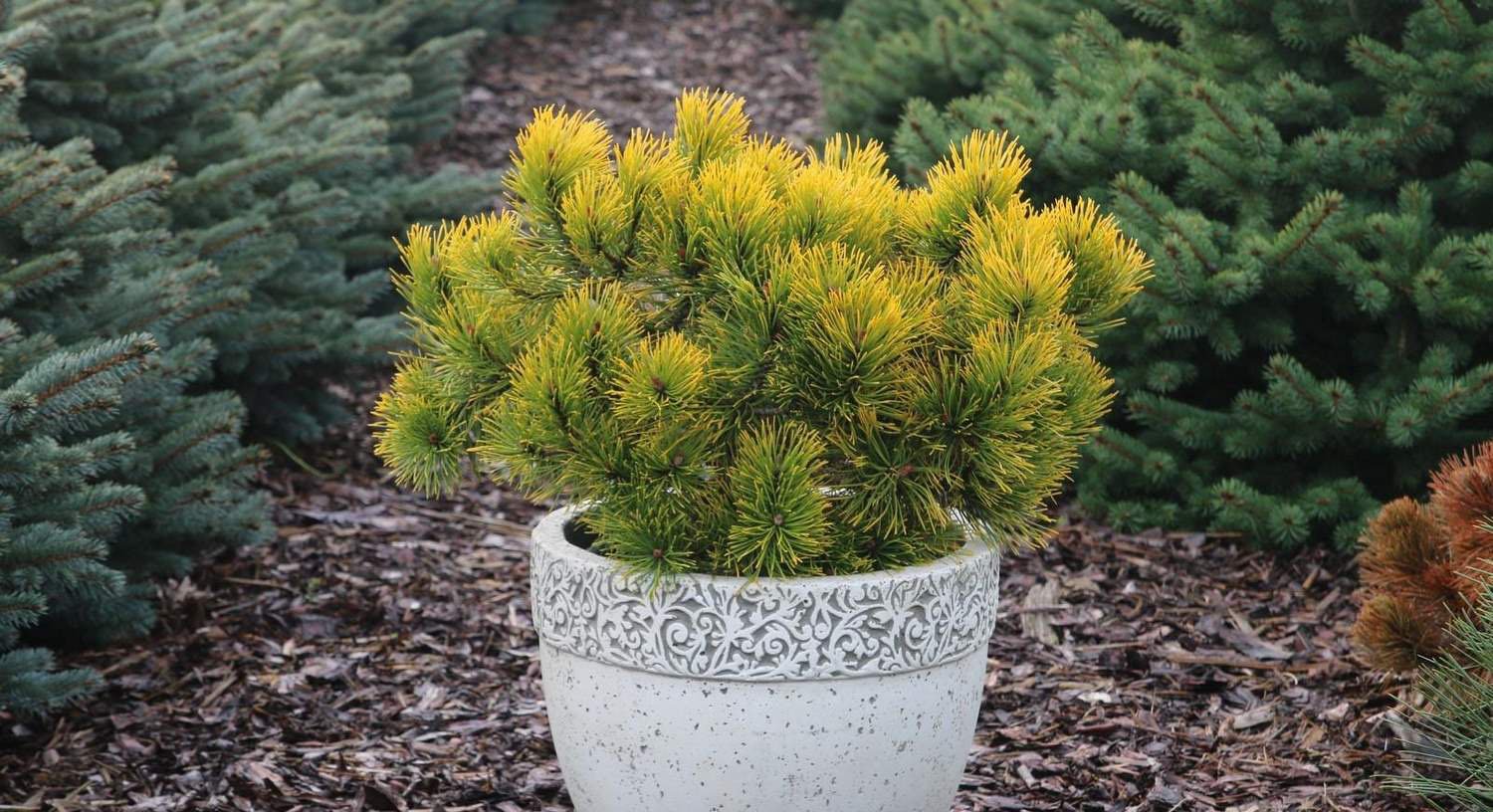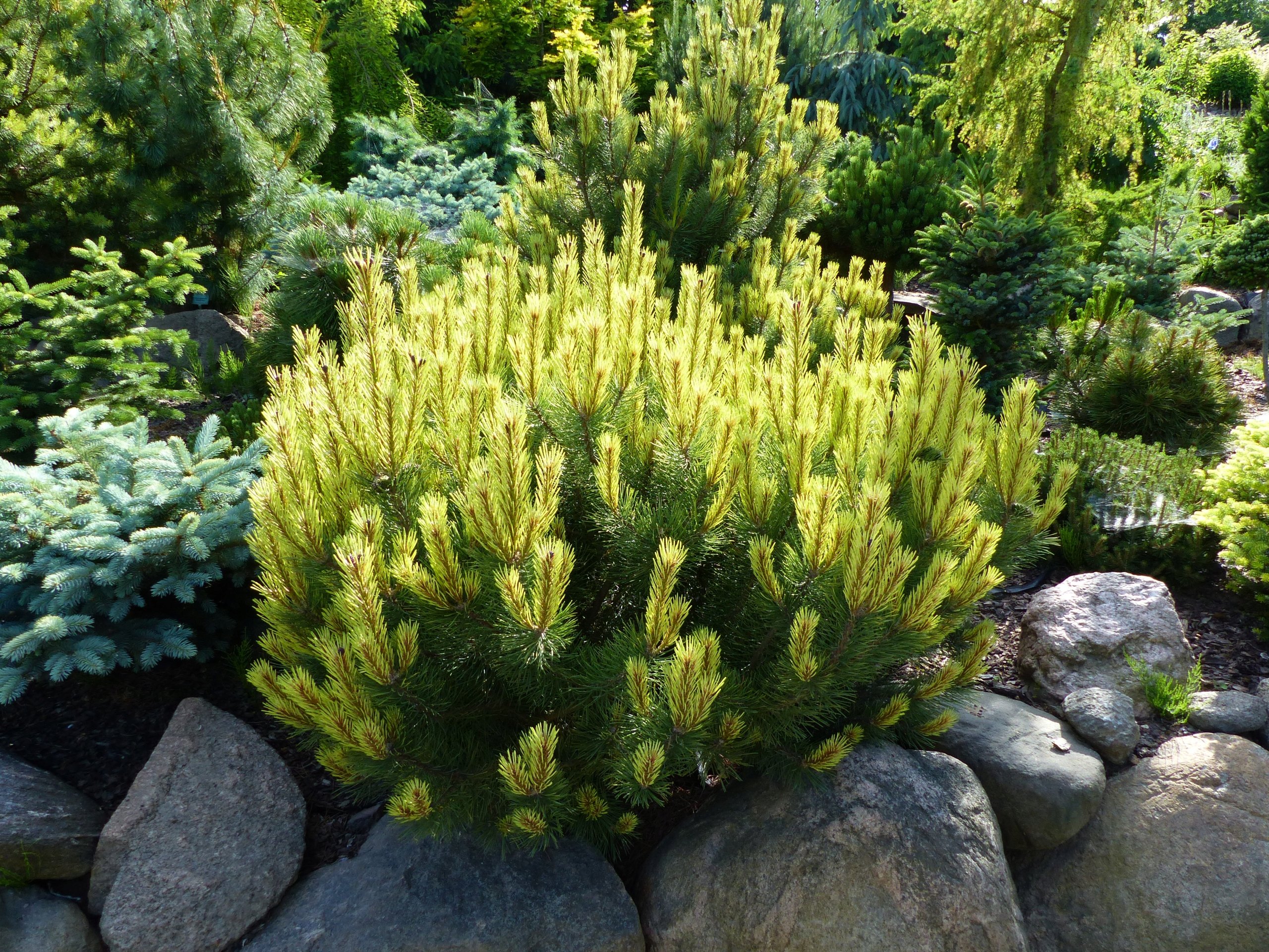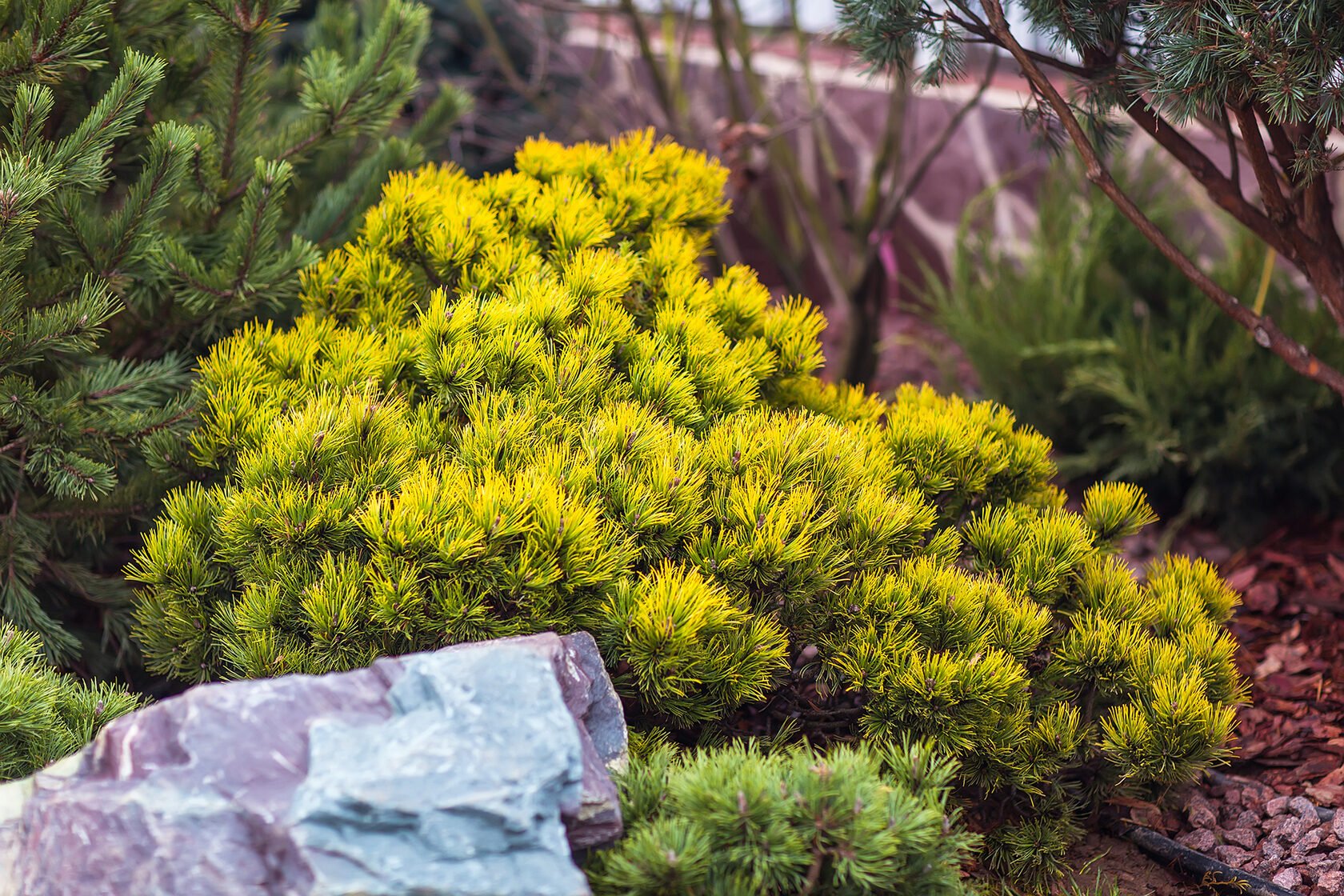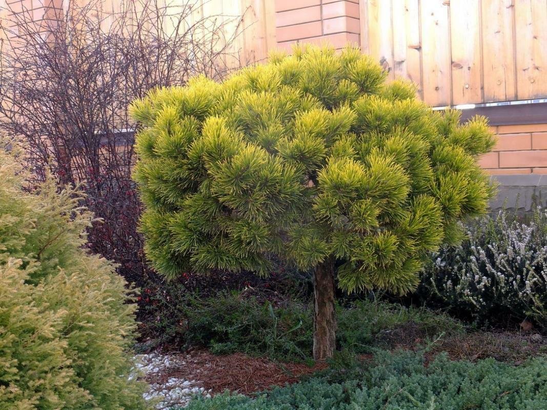 Сосна Горная Пумилио на клумбе