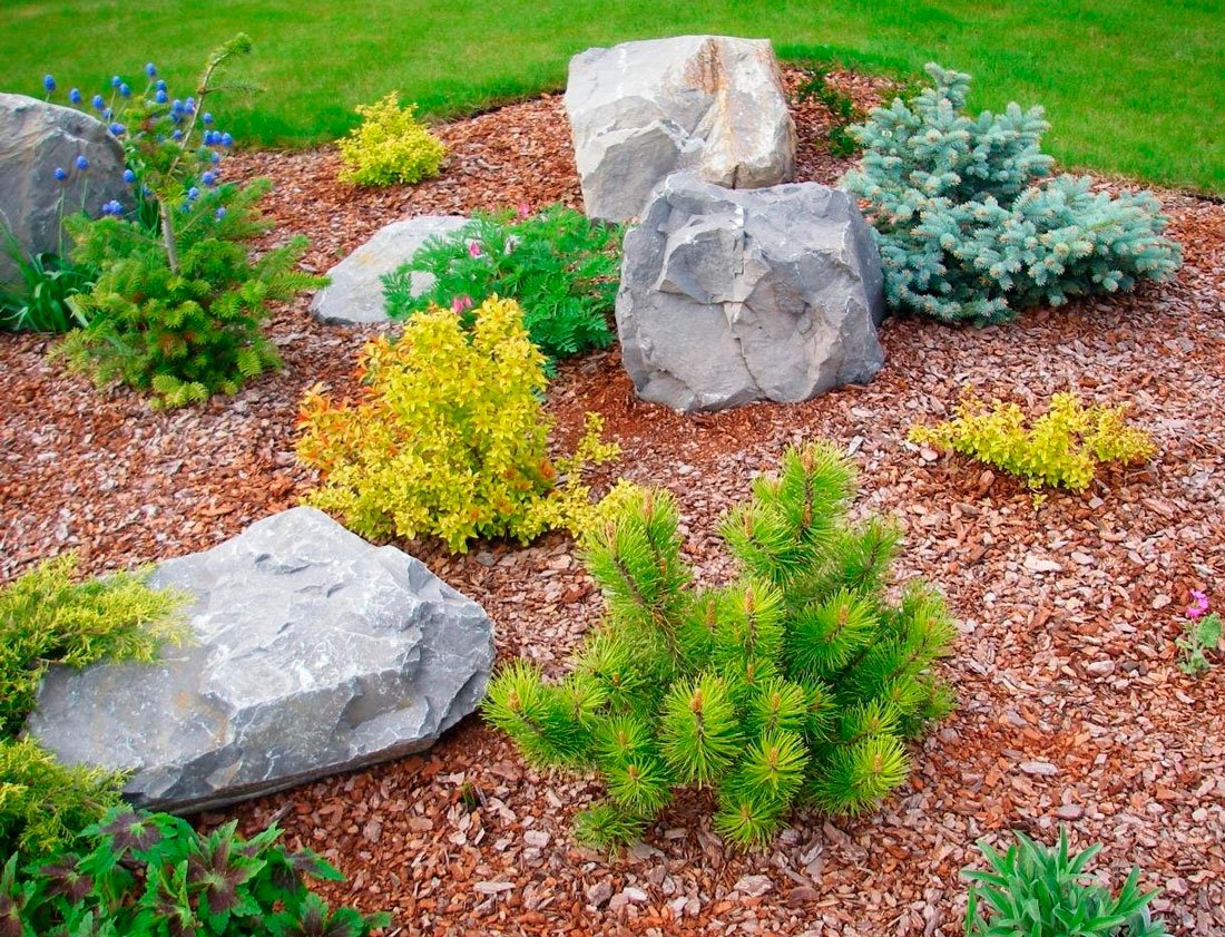 Клумба мульчирование сосновой корой