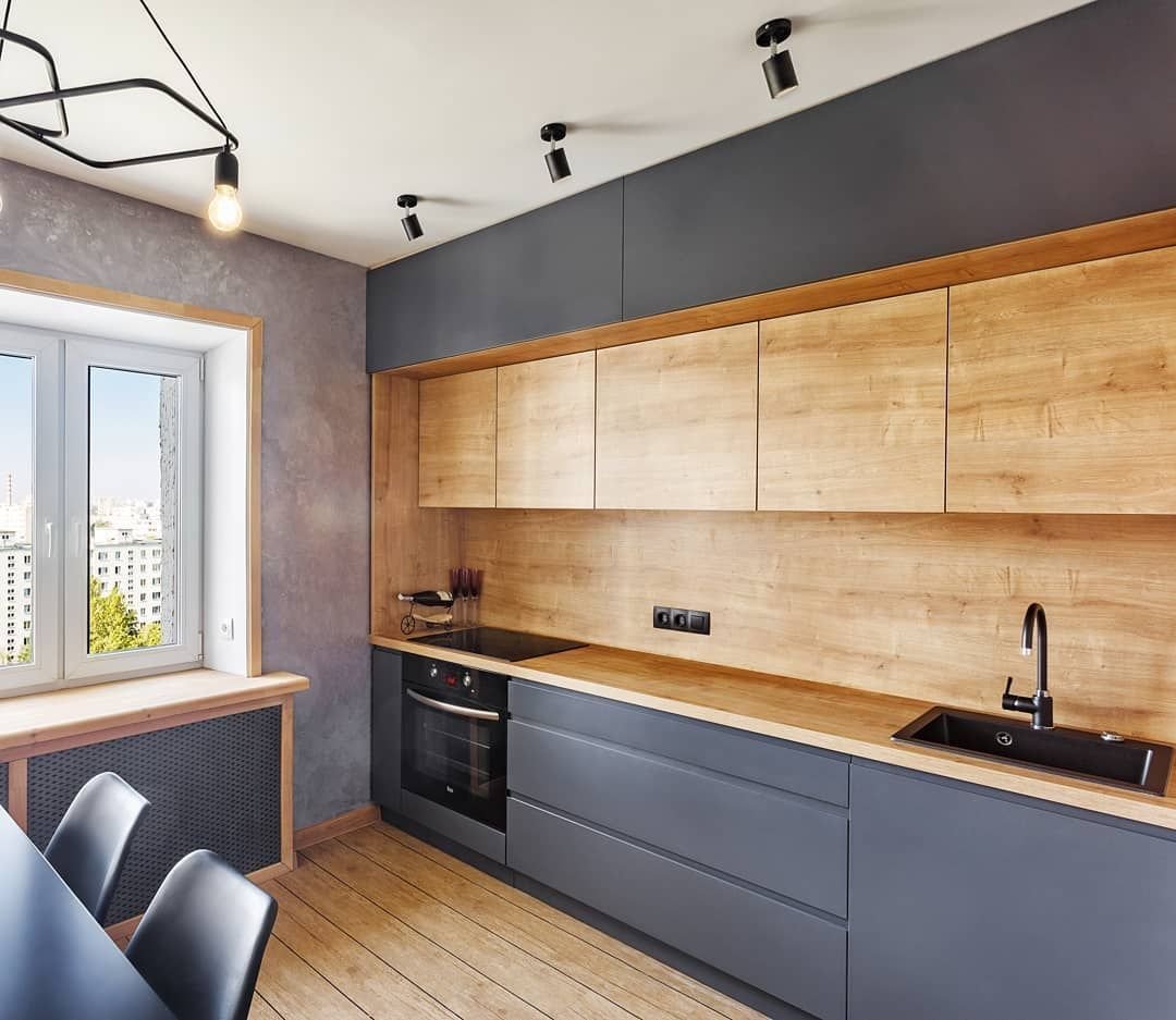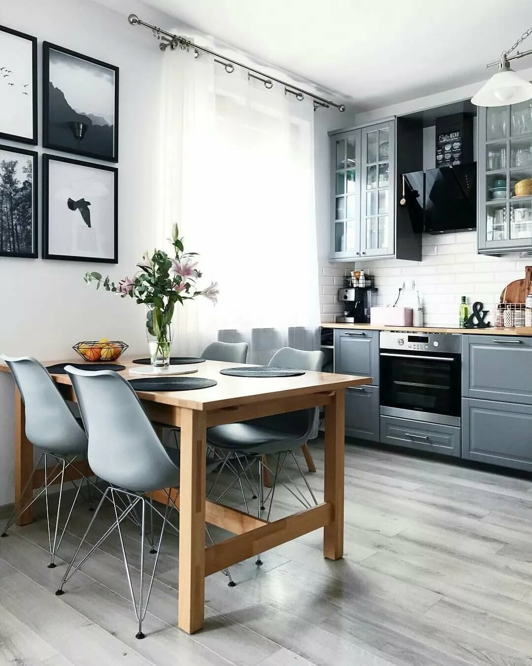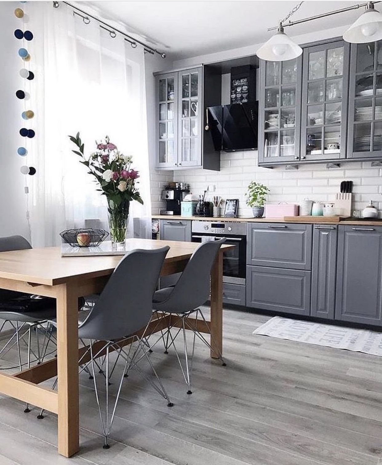 Кухня икеа темно серая вокспорт со столешницей под дерево