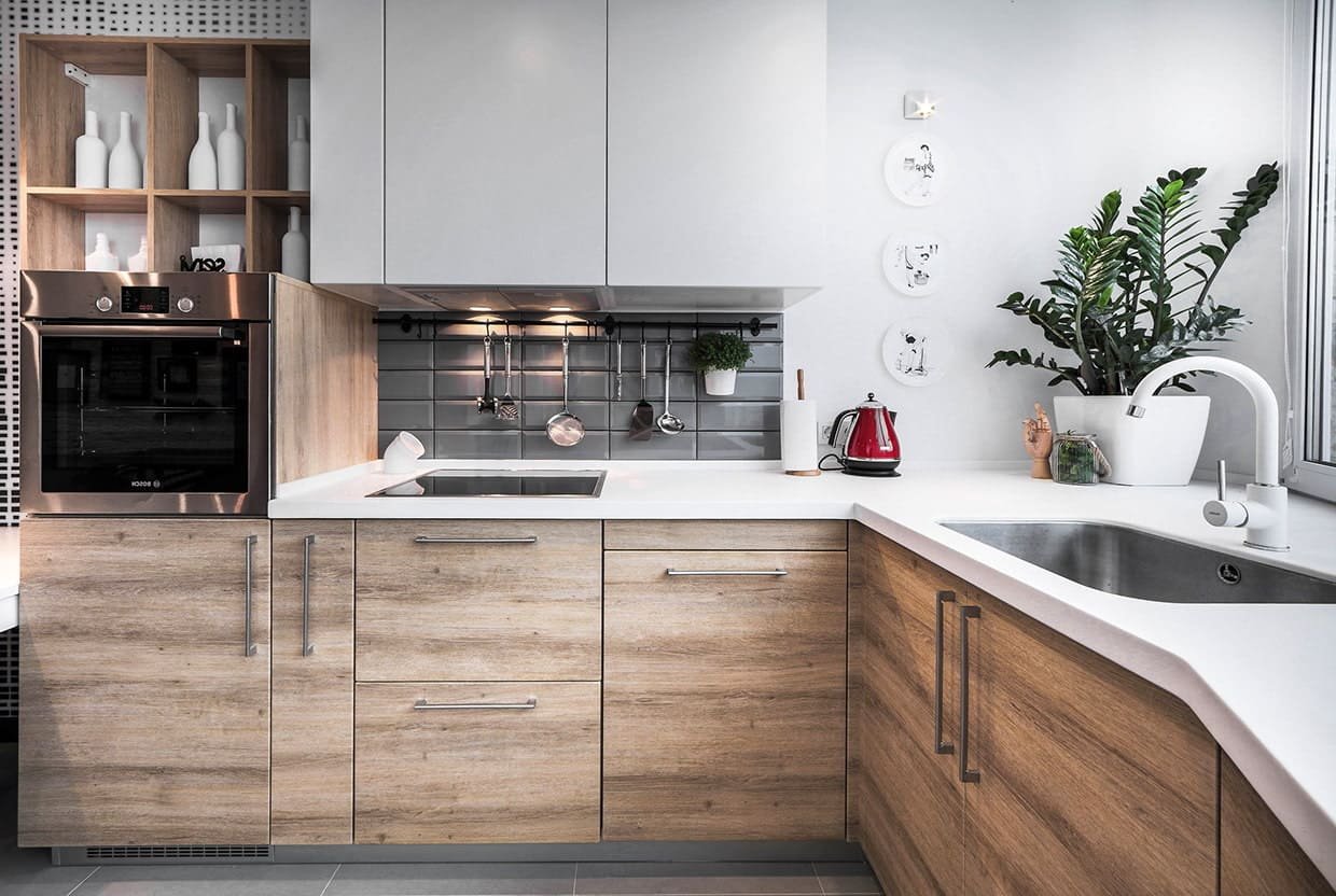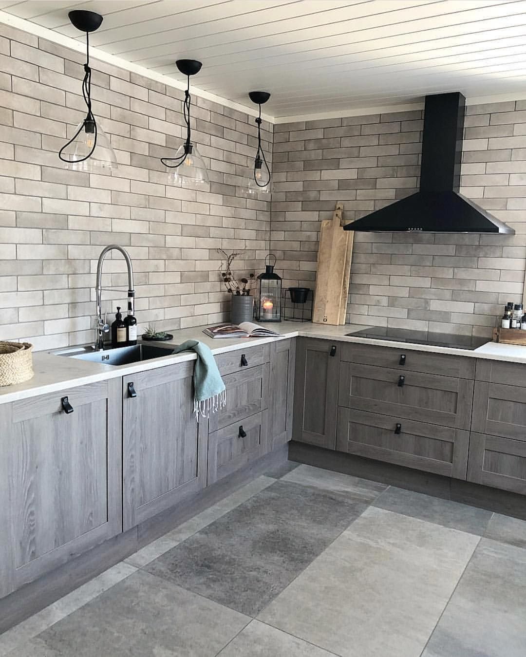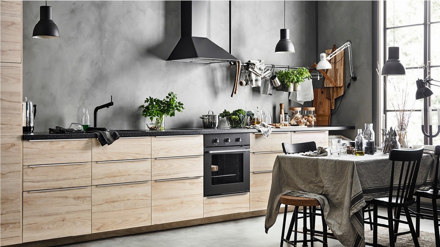 Кухня икеа темно серая вокспорт со столешницей под дерево