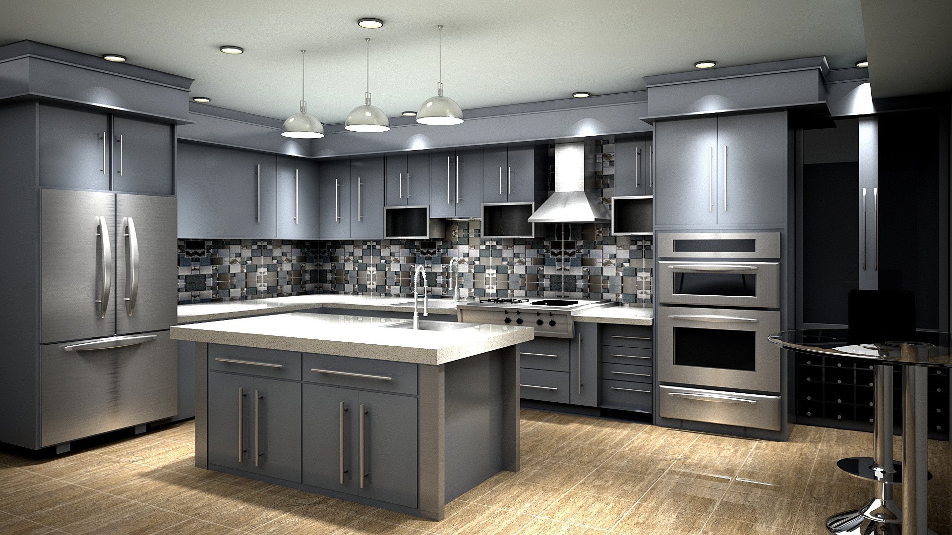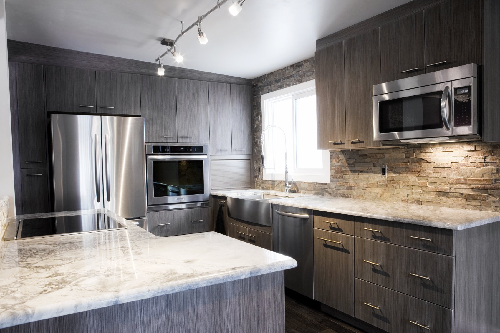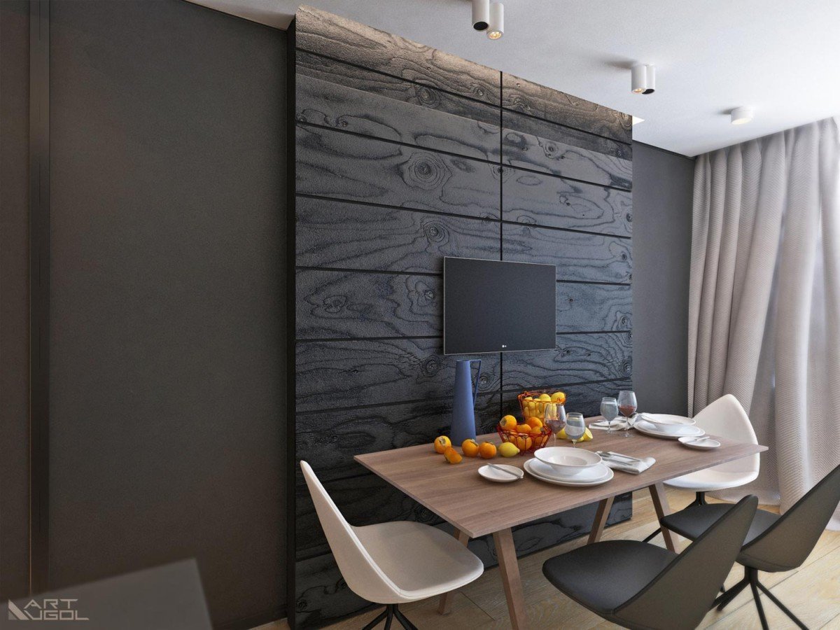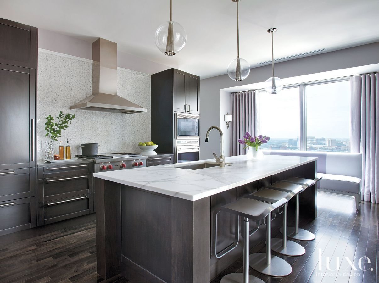 Интерьеры кухонной комнаты в серо- коричневых тонах