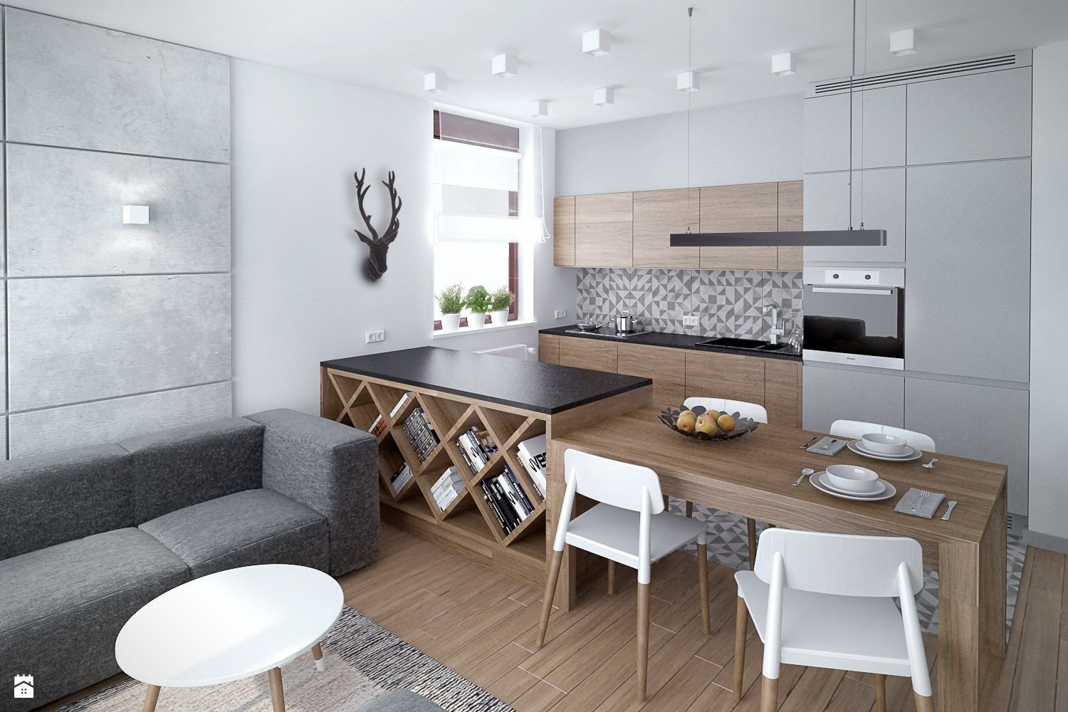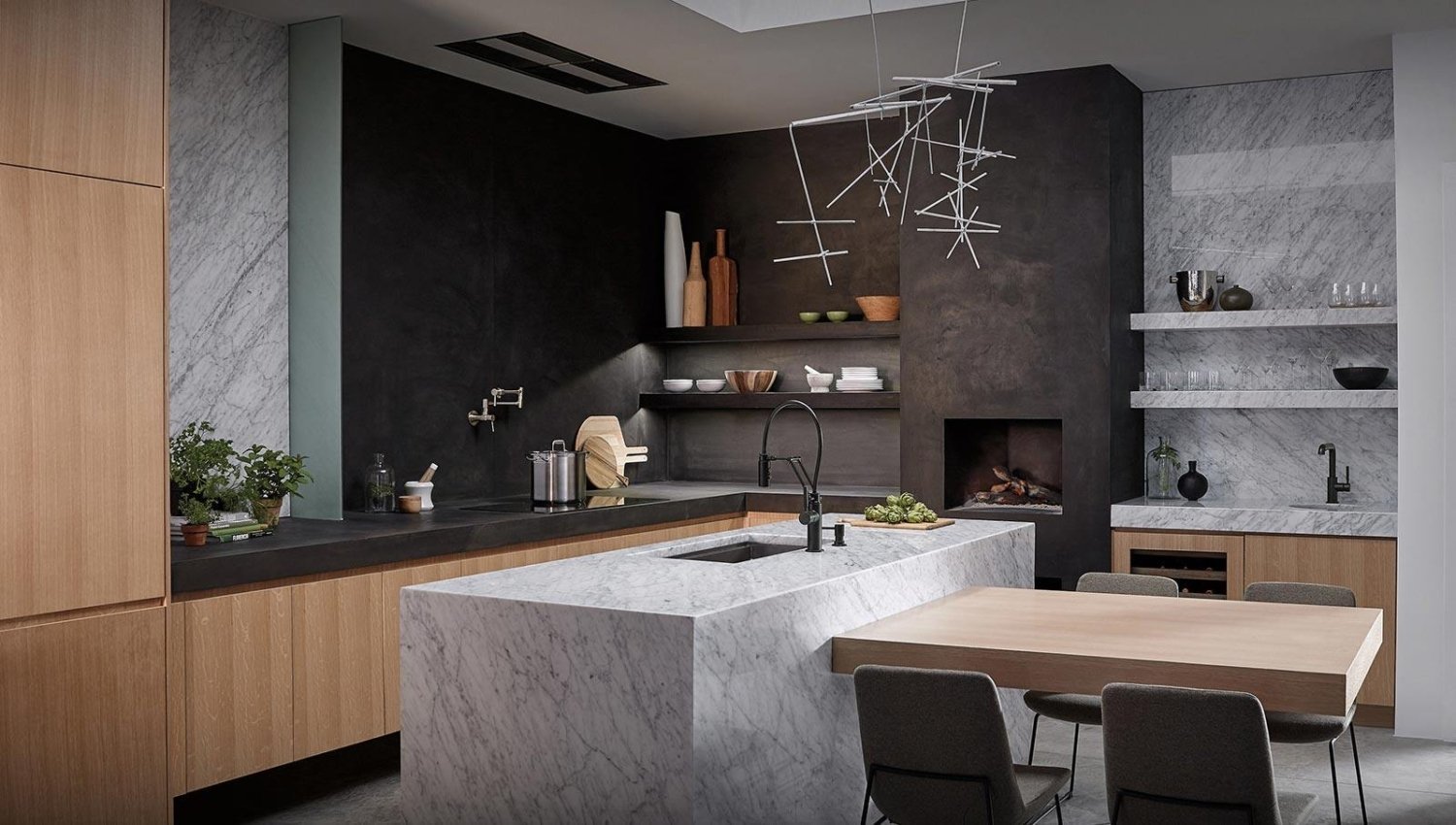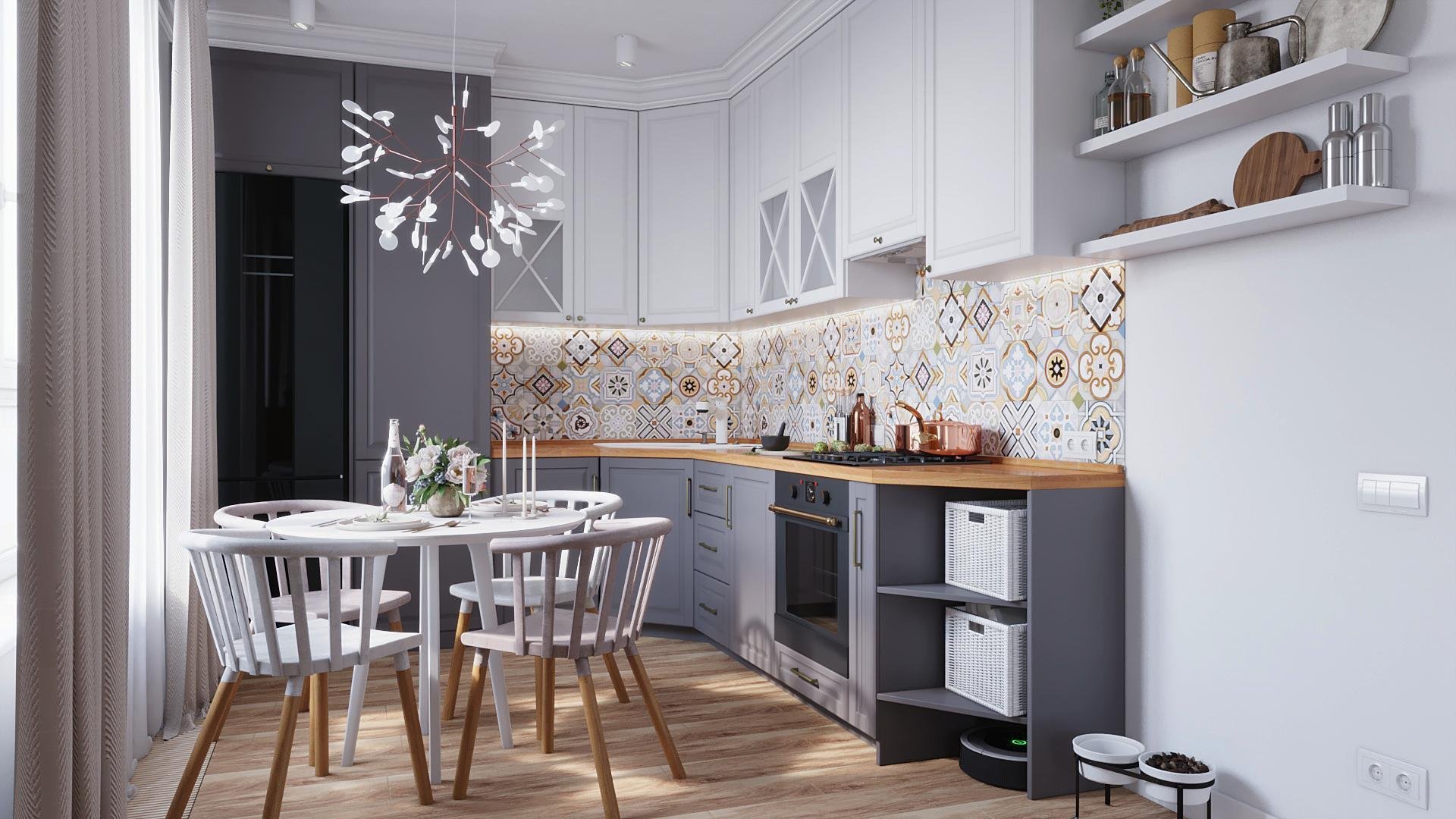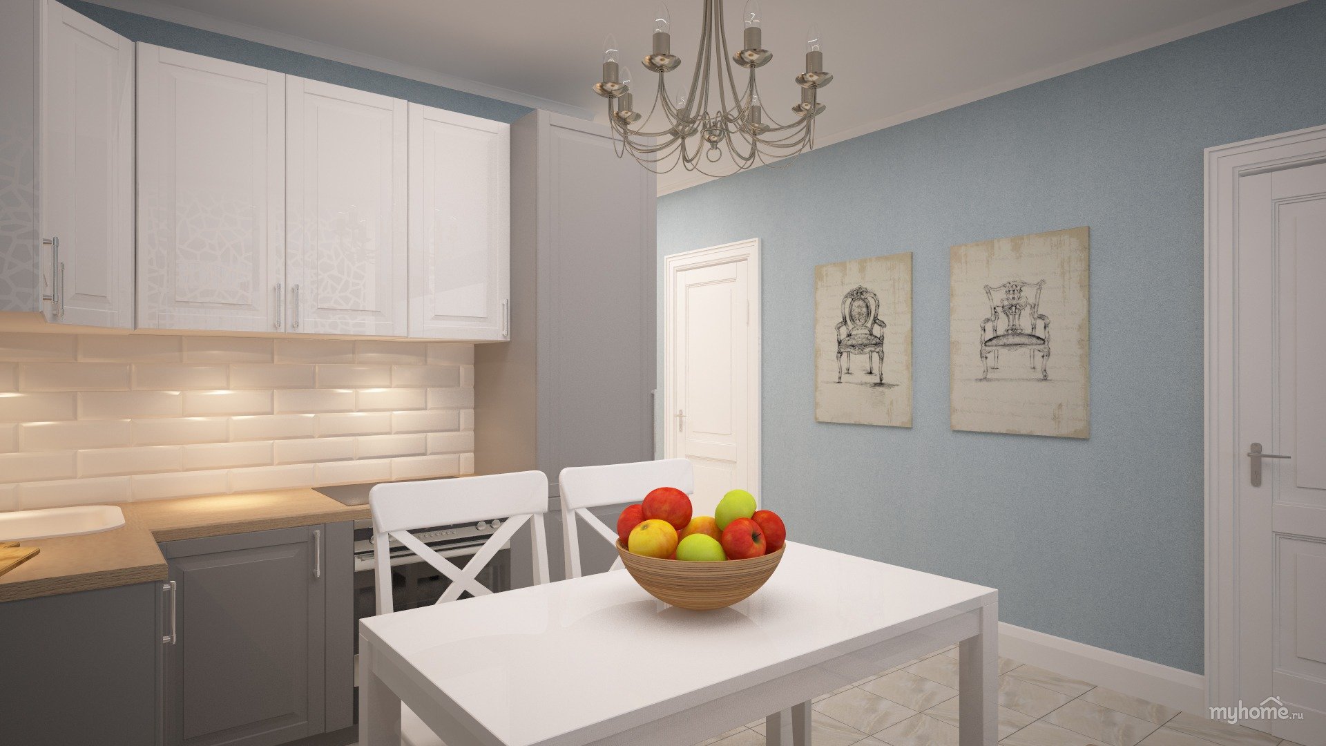 Интерьеры кухонной комнаты в серо- коричневых тонах