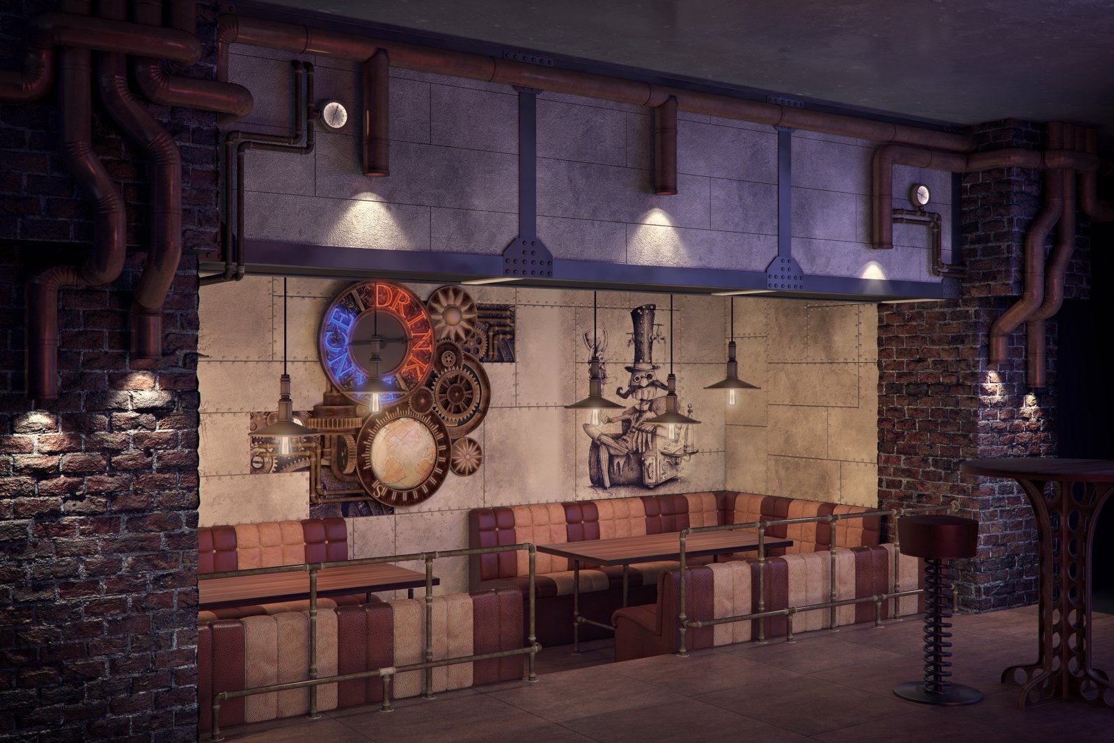 Стимпанк в интерьере ресторана