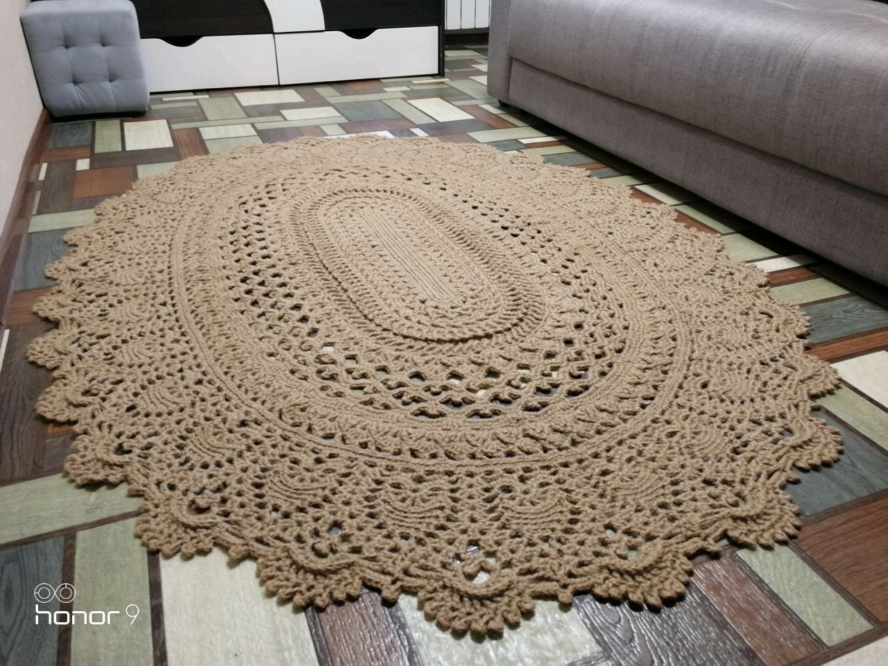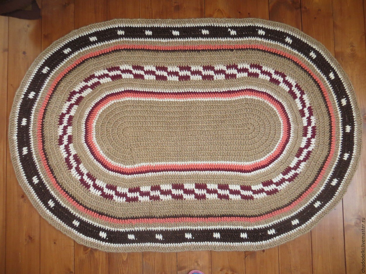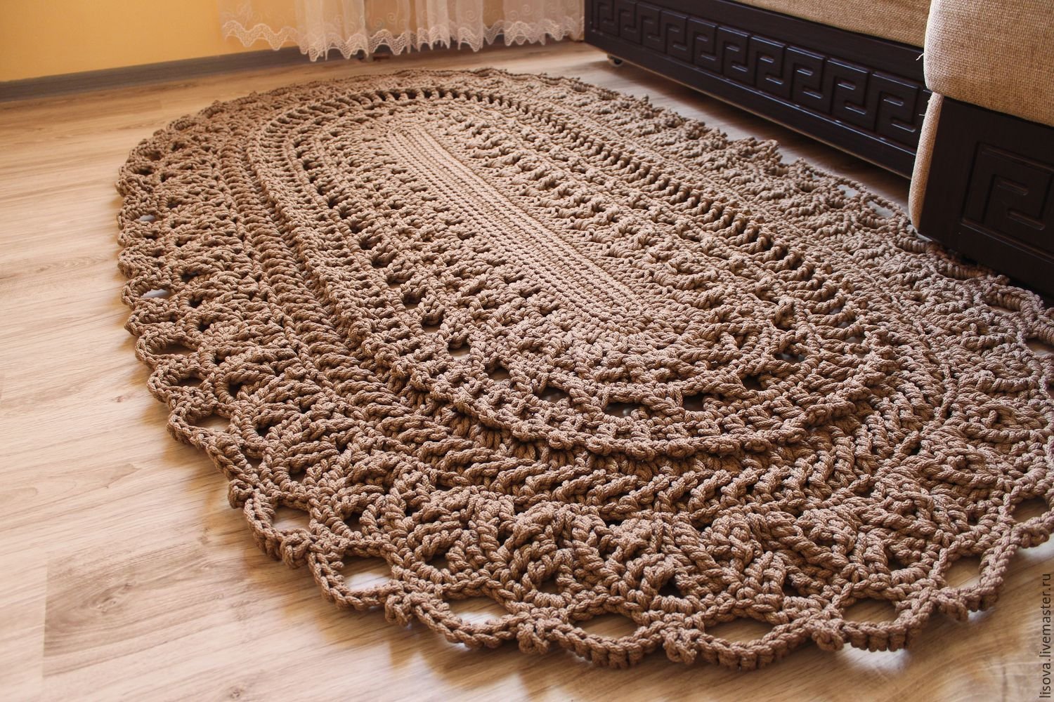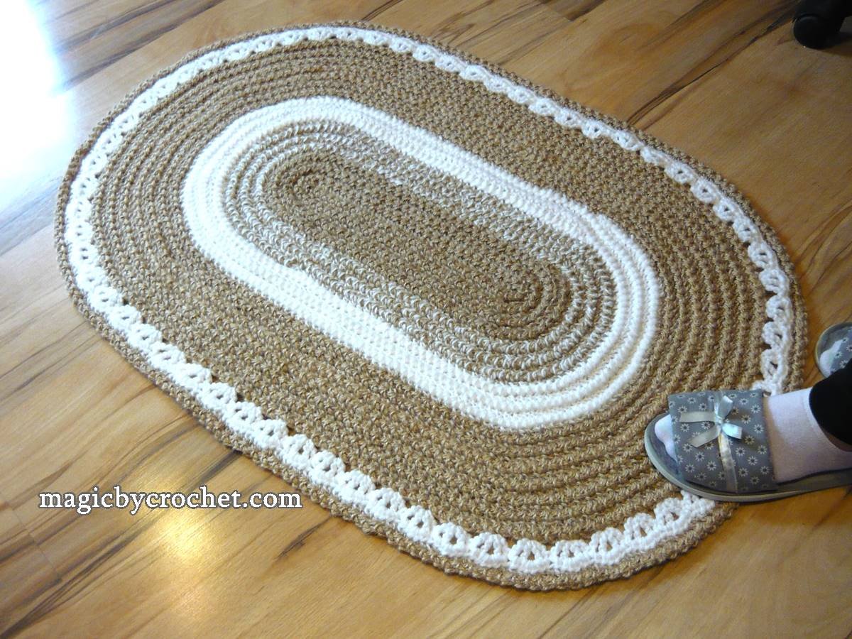 Джутовый коврик крючком овальный