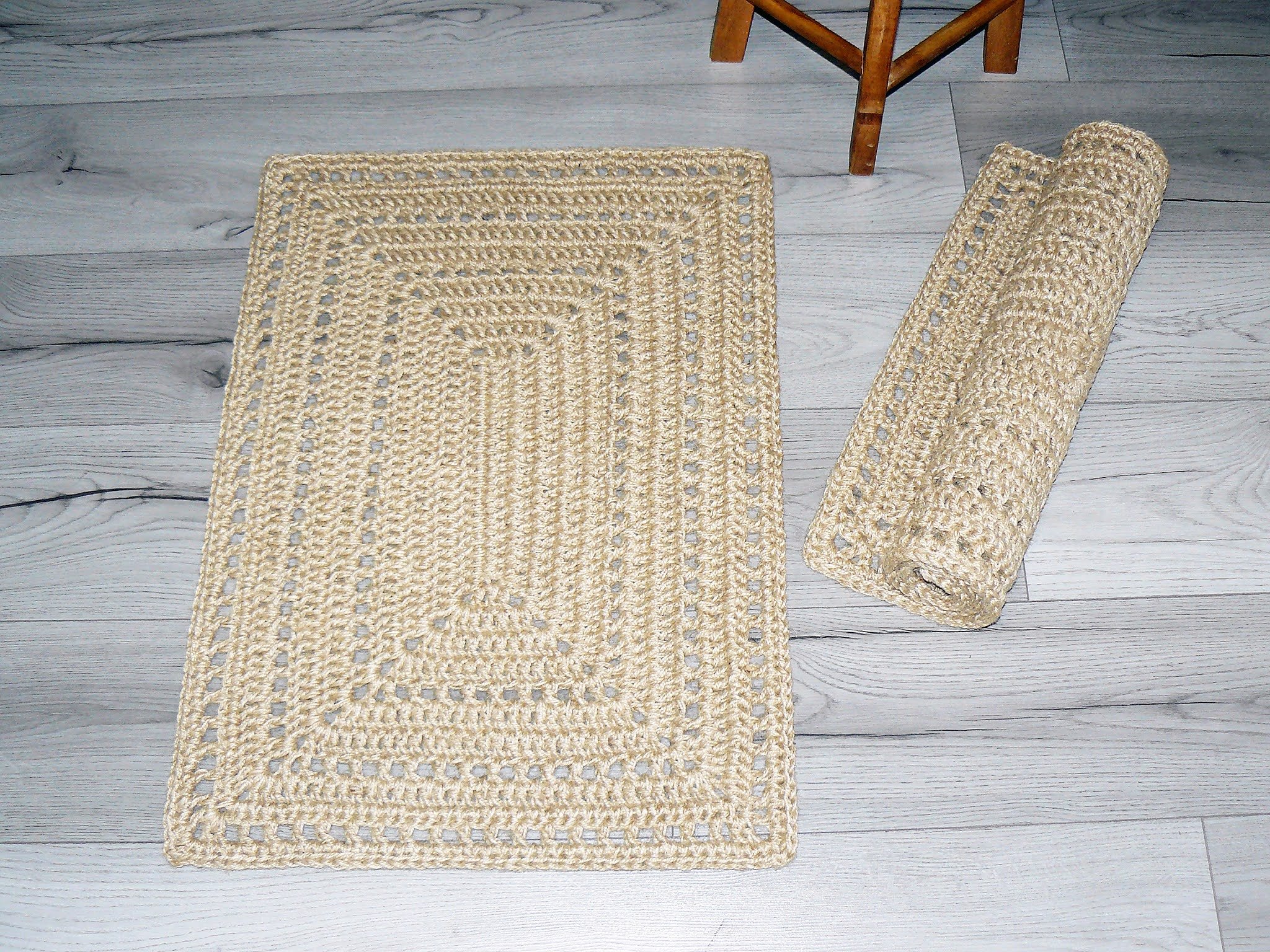 Прямоугольный коврик из джута крючком