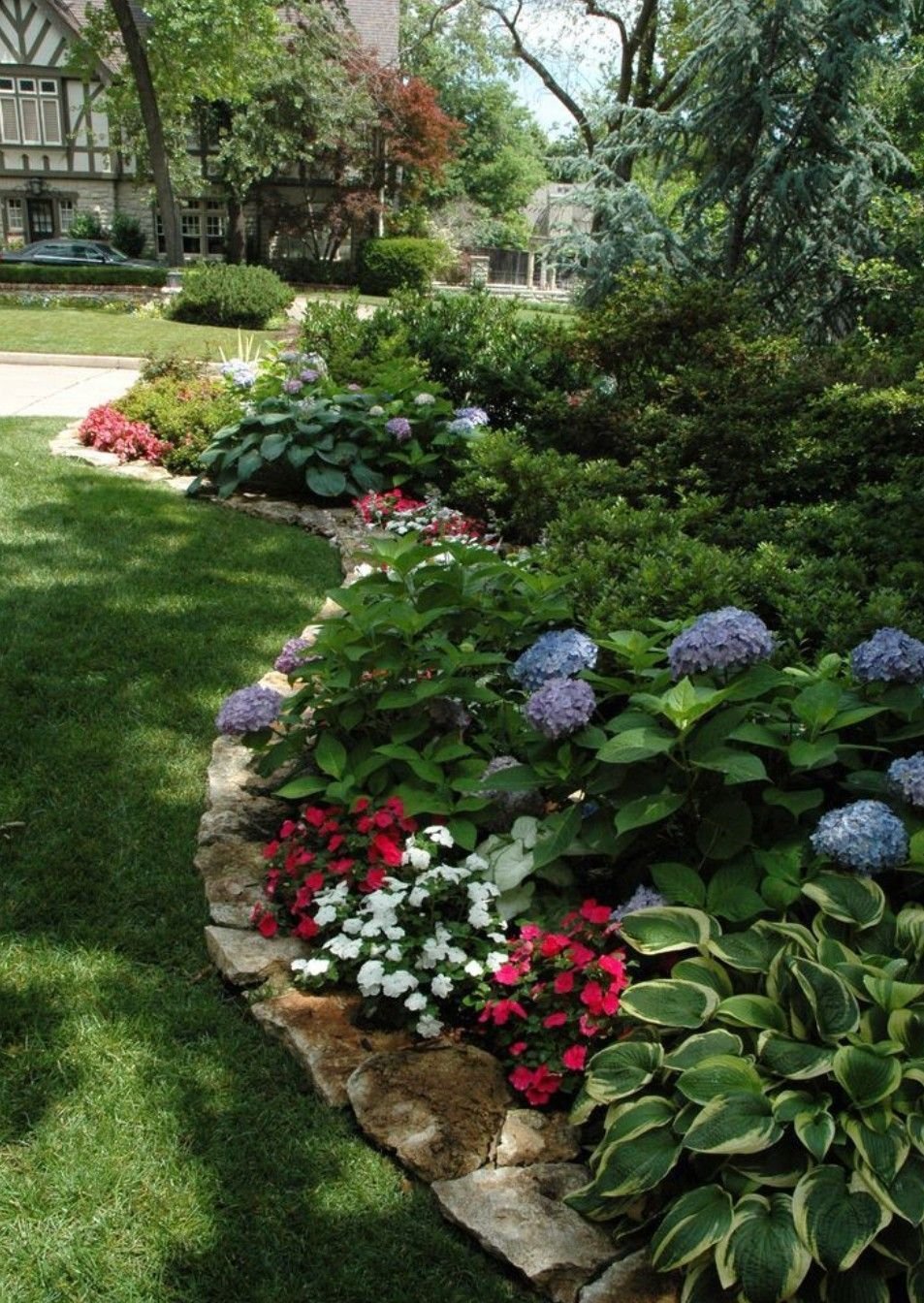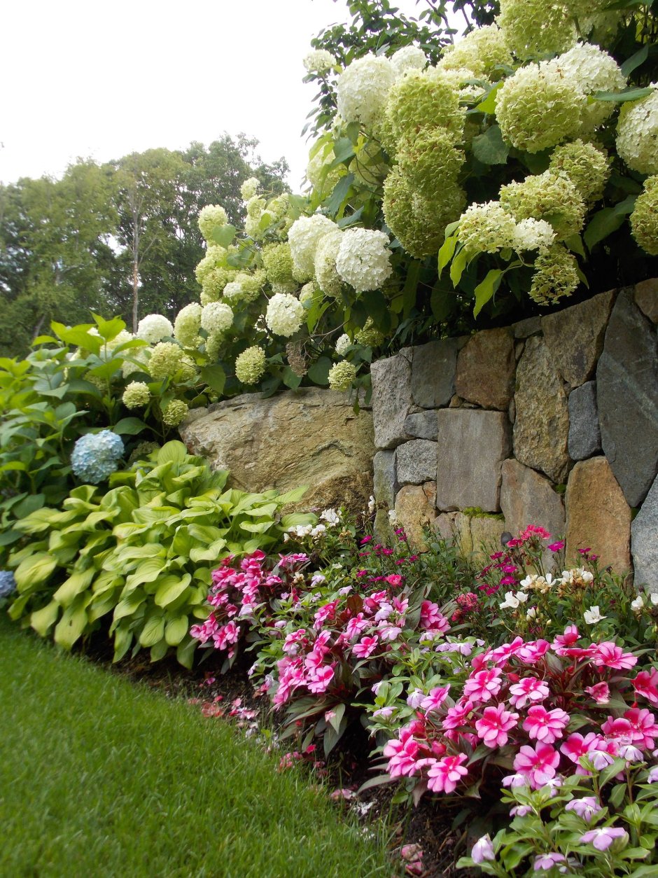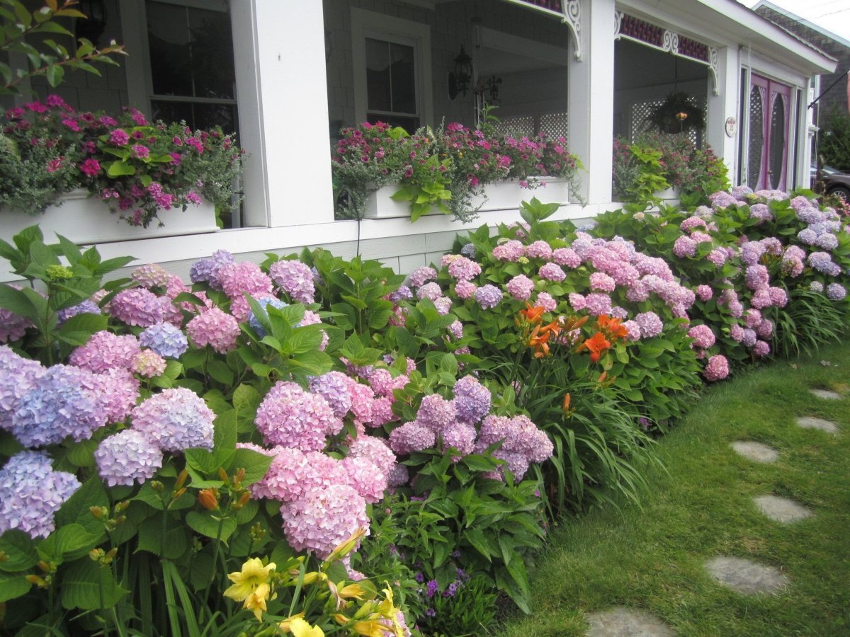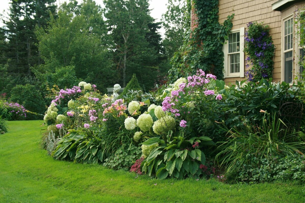 Миксбордер лилейник гортензия и Хоста
