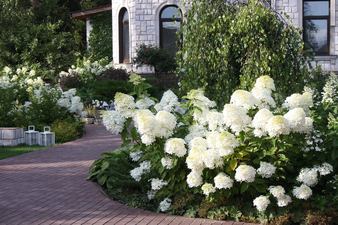 Клумба с гортензией метельчатой