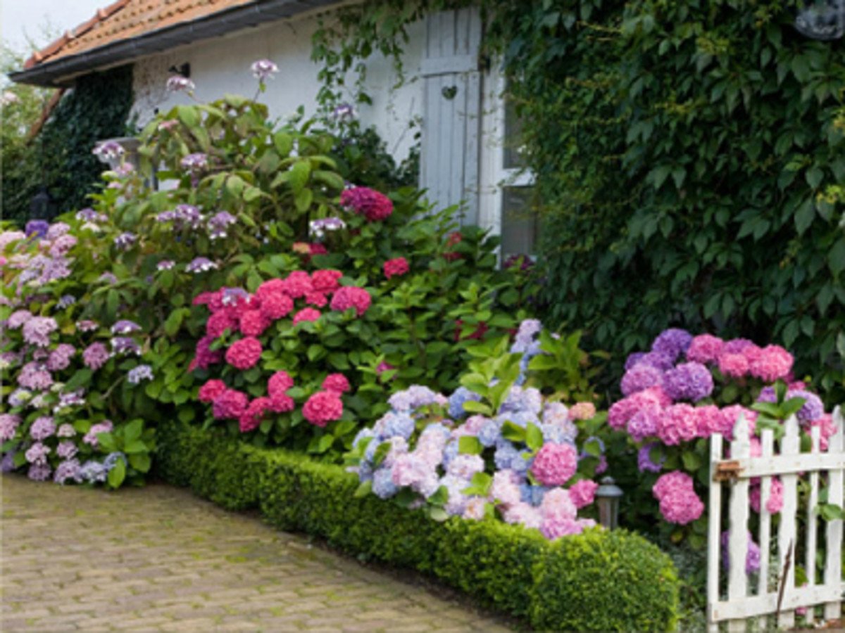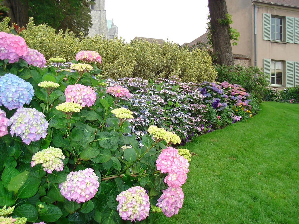 Клумбы с Крупнолистными гортензиями