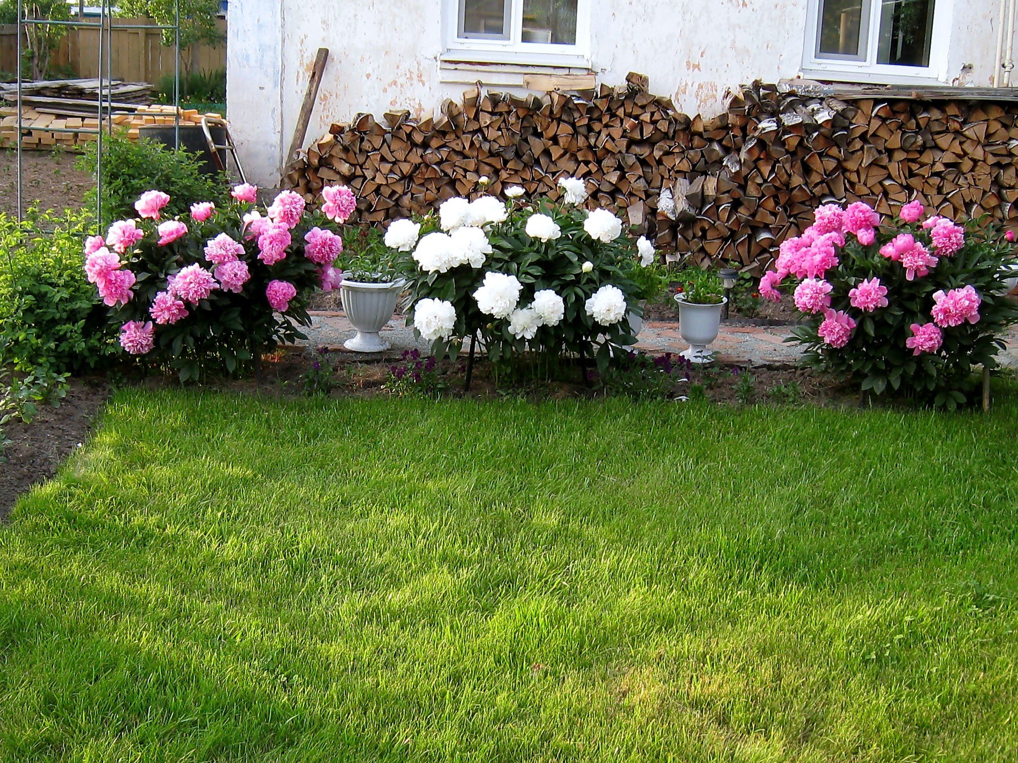 Миксбордер с пионами и гортензией