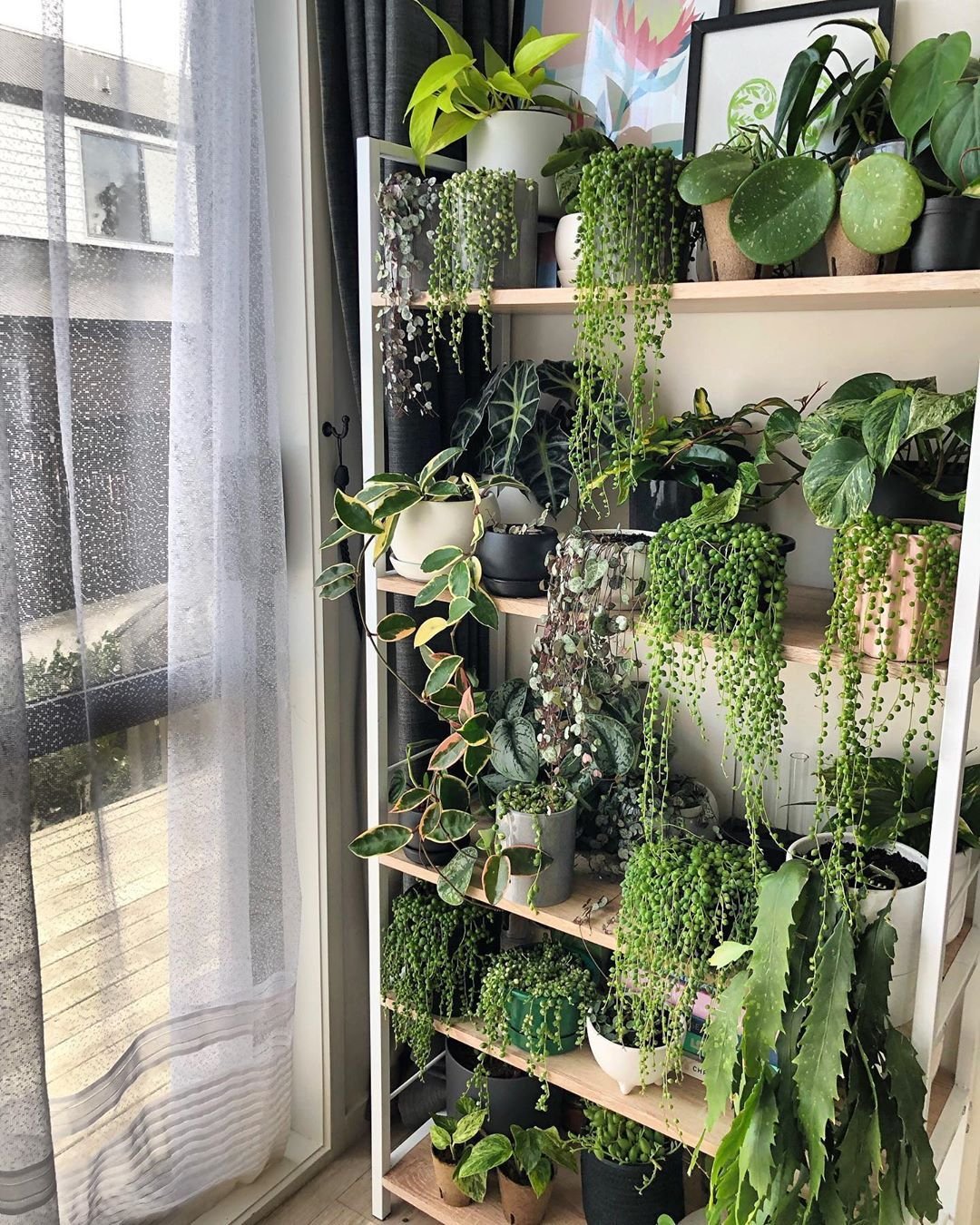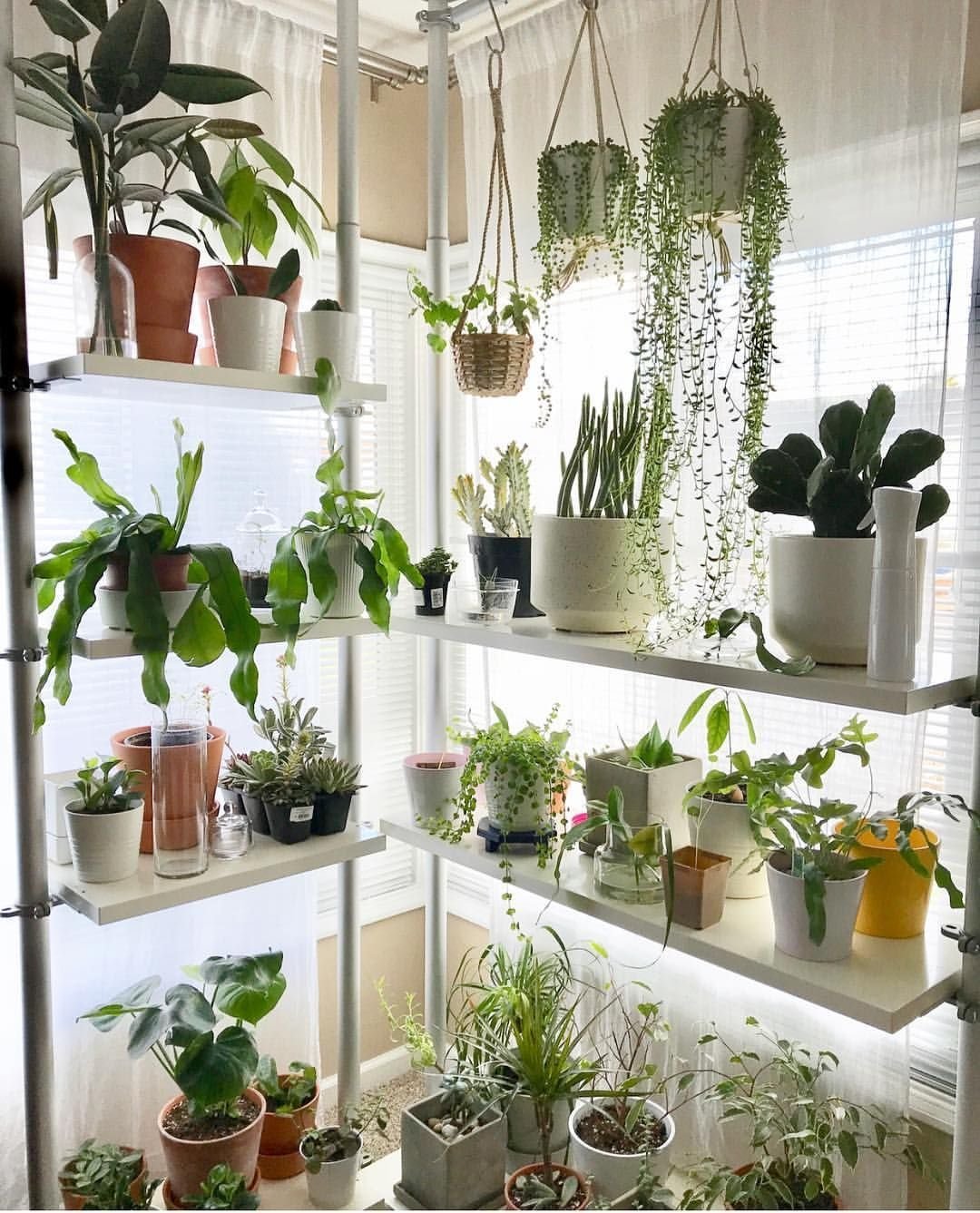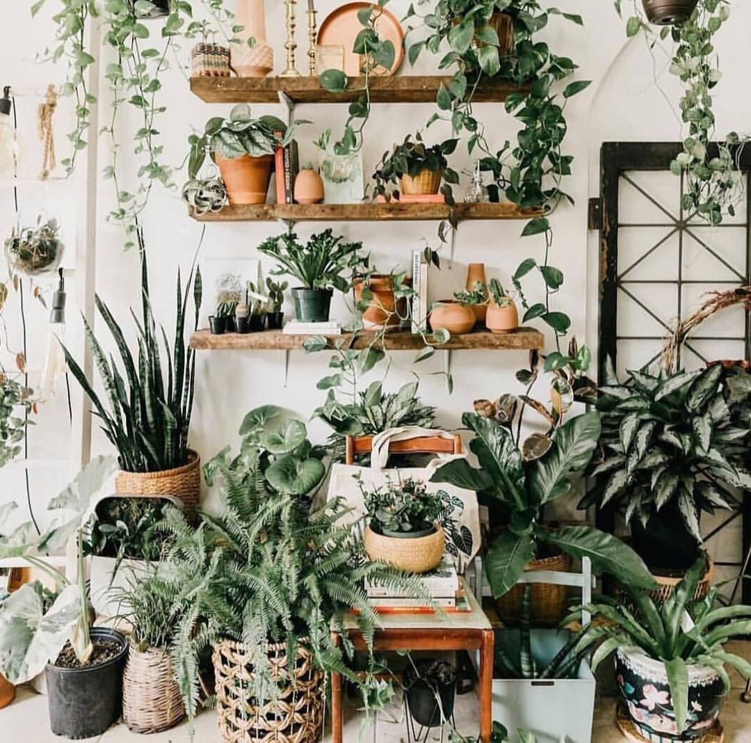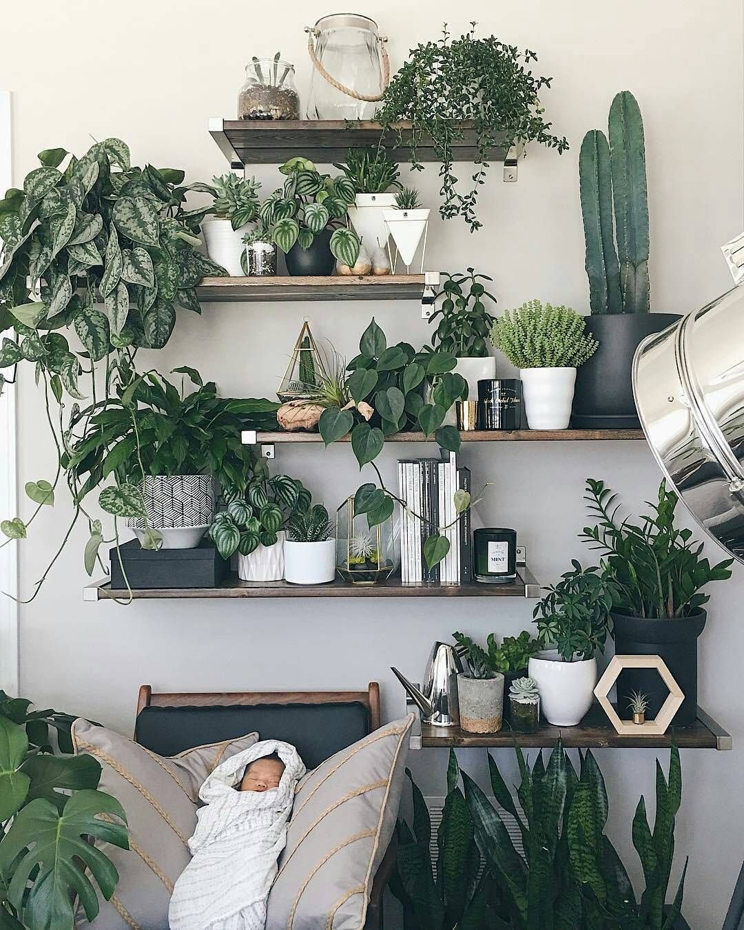 Полки с комнатными растениями в интерьере