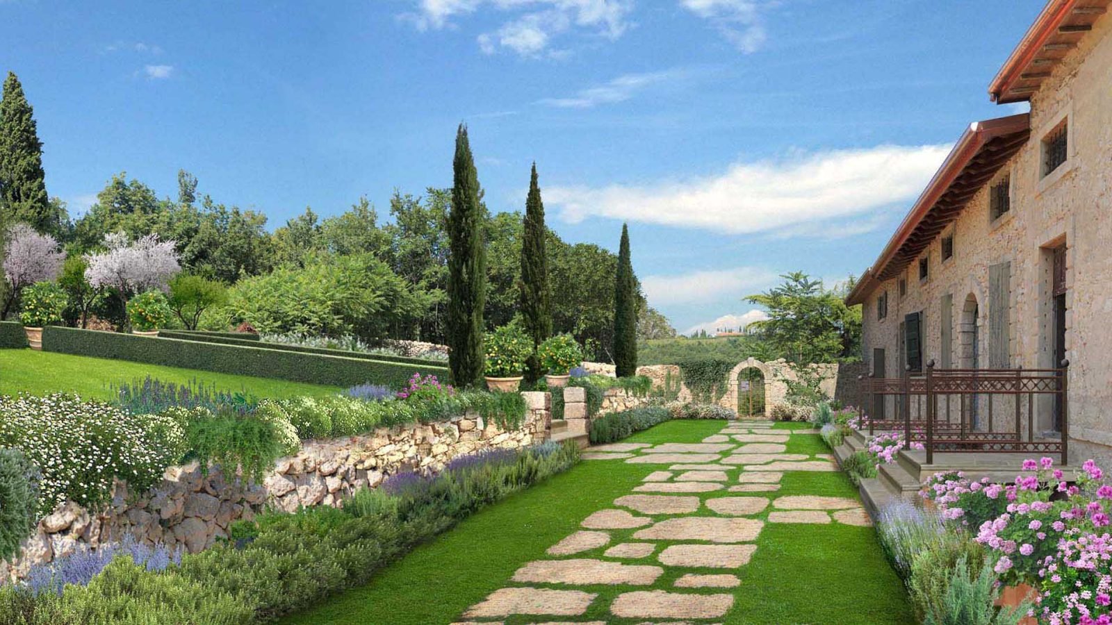 Итальянский сад ландшафт Тоскана Лаванда и розы