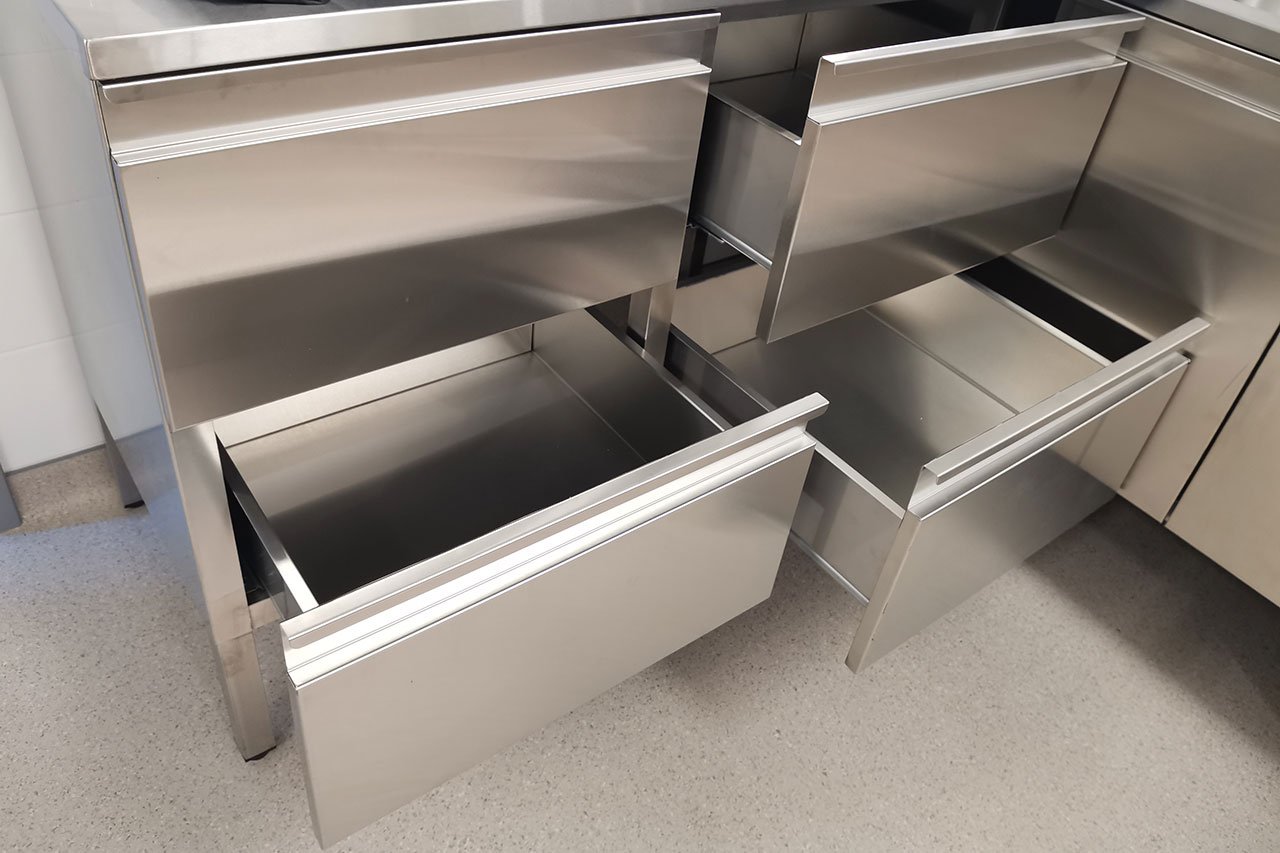 Тумбочка из нержавейки с выдвижными ящиками на кухню