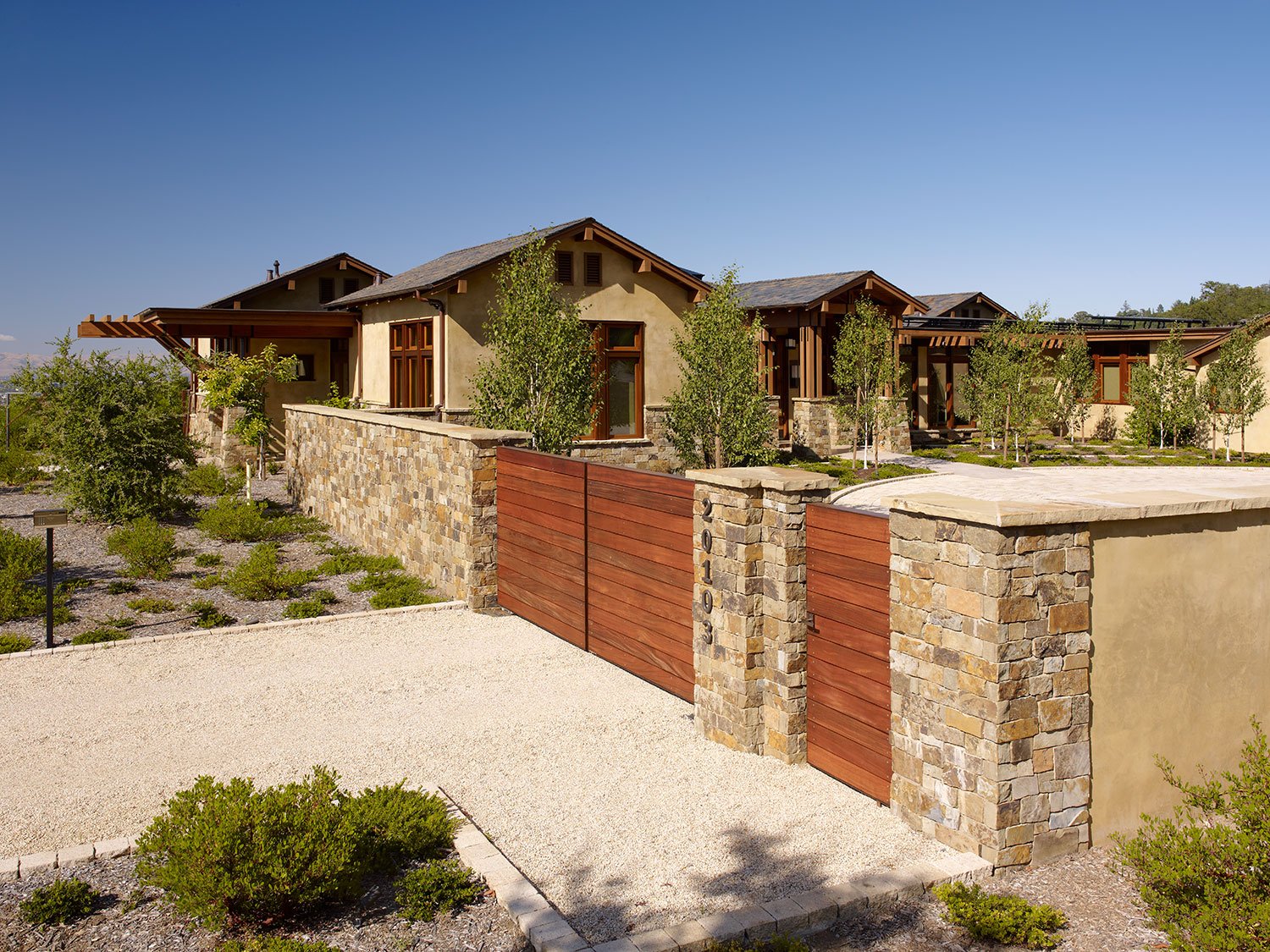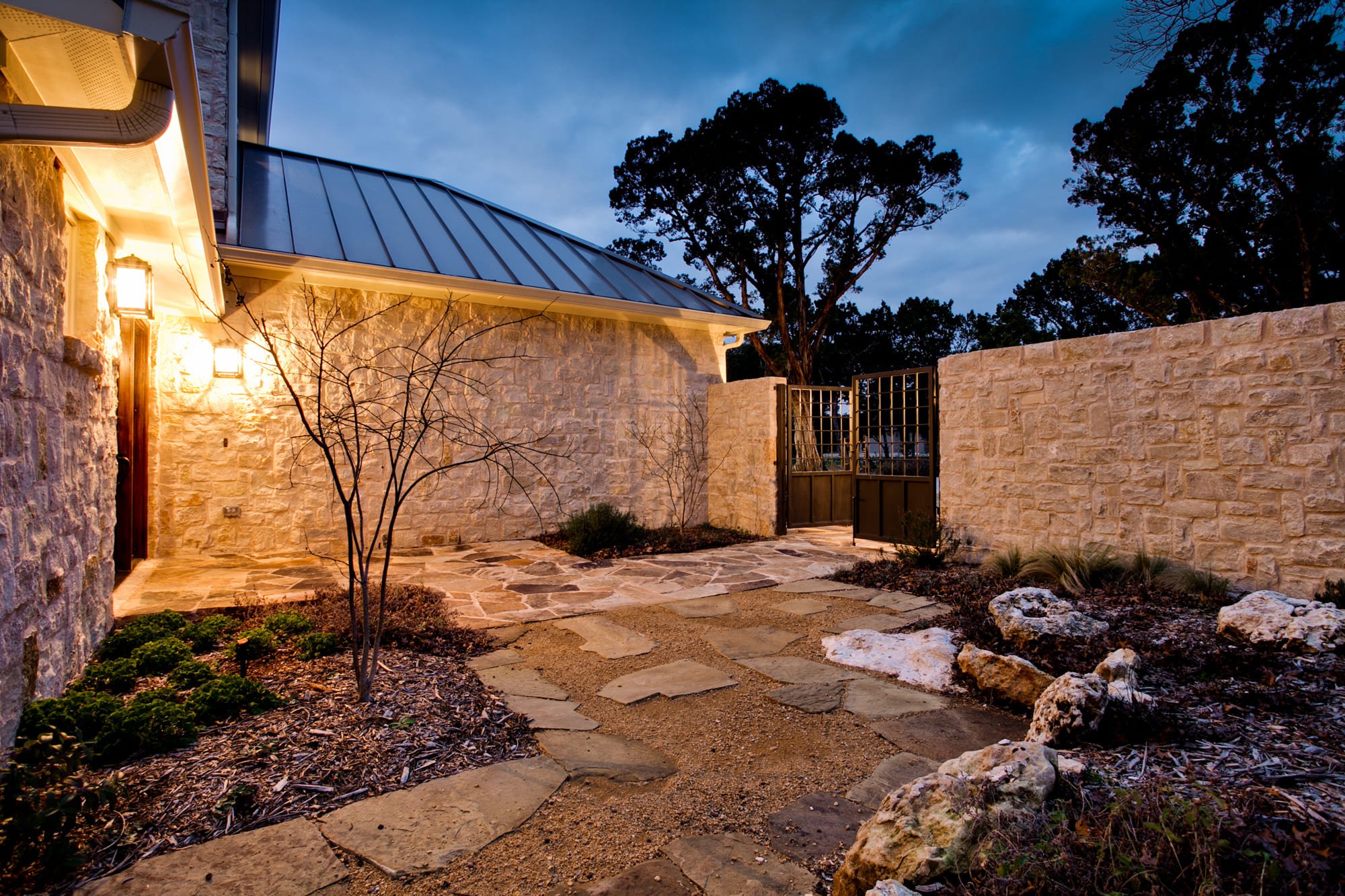 Сад с каменным забором