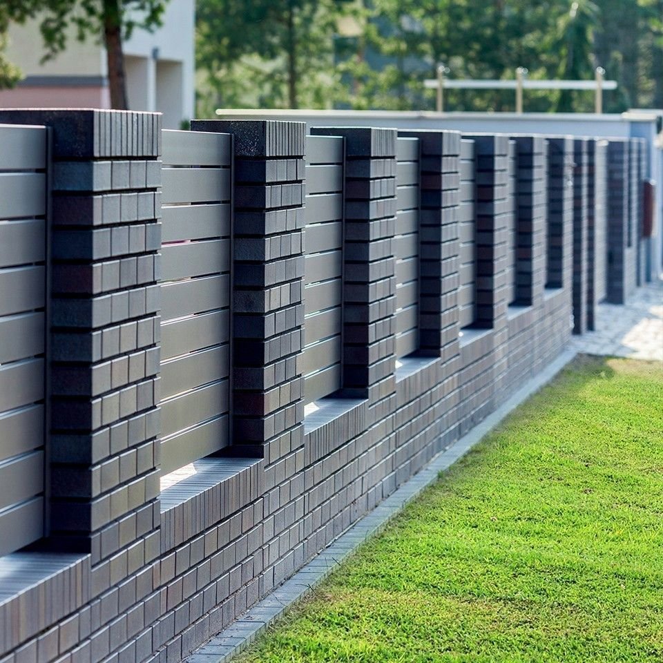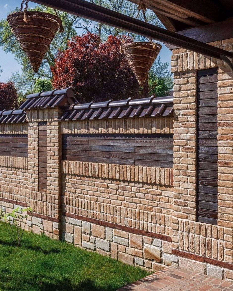 Забор из кирпича и камня