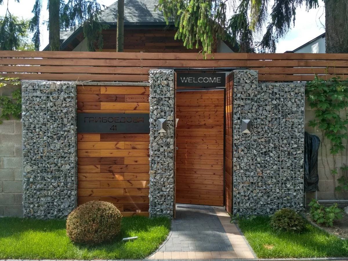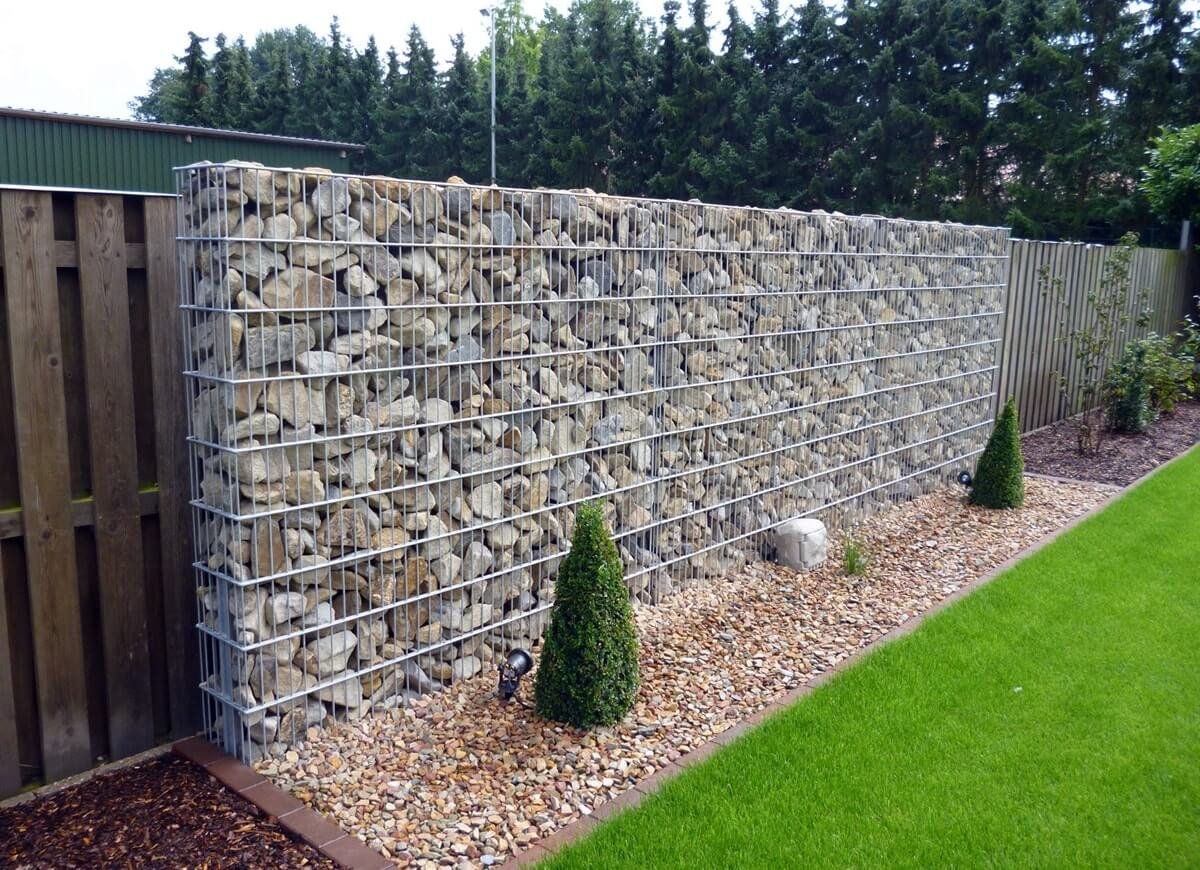 Забор из габионов и живой изгороди