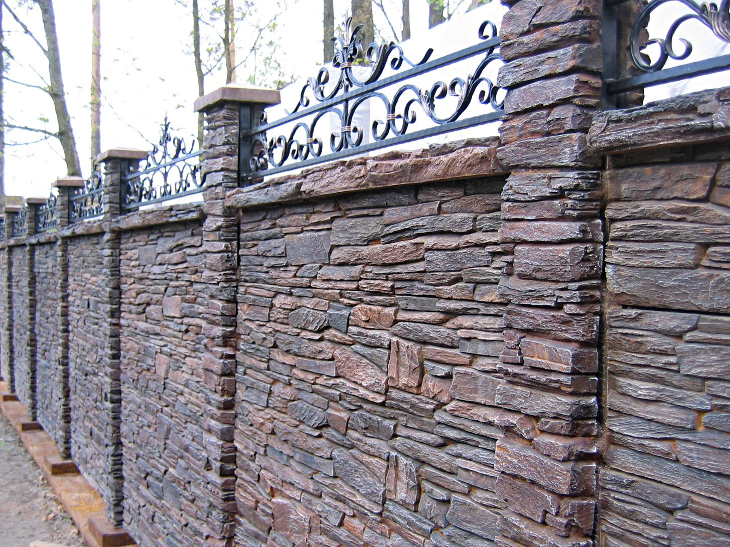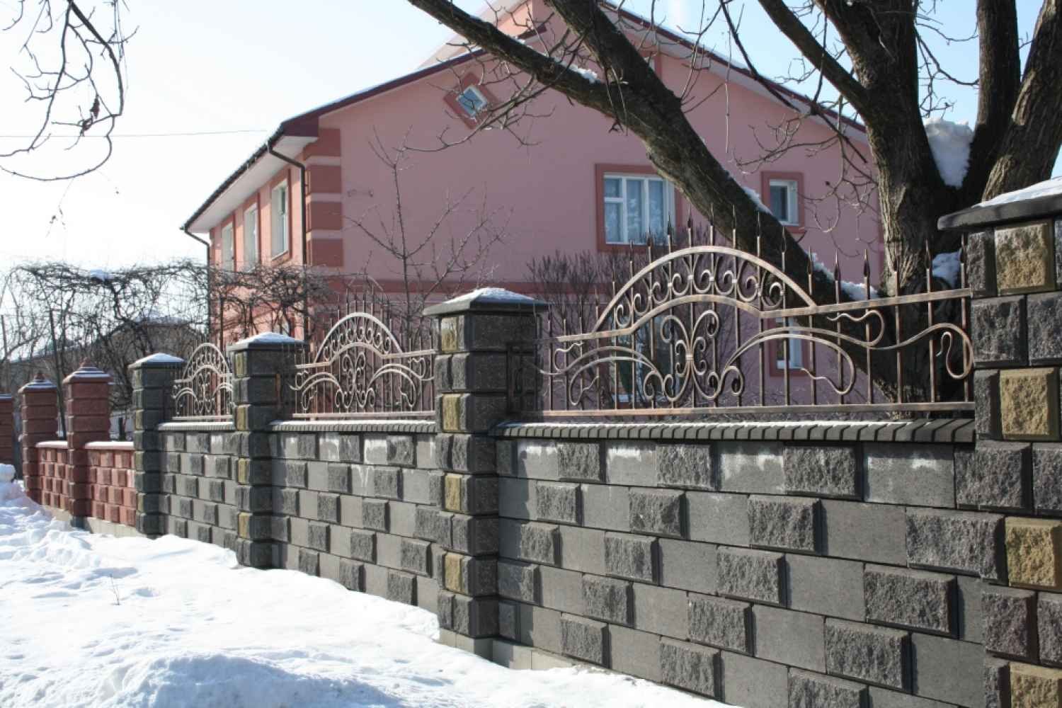 Каменный забор с ковкой