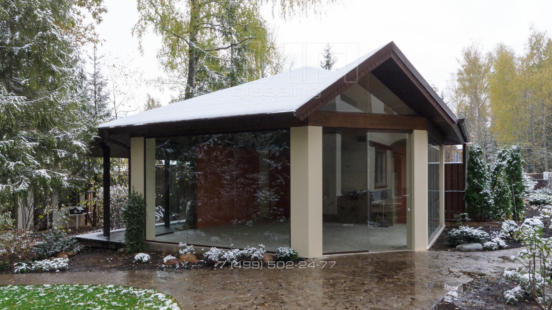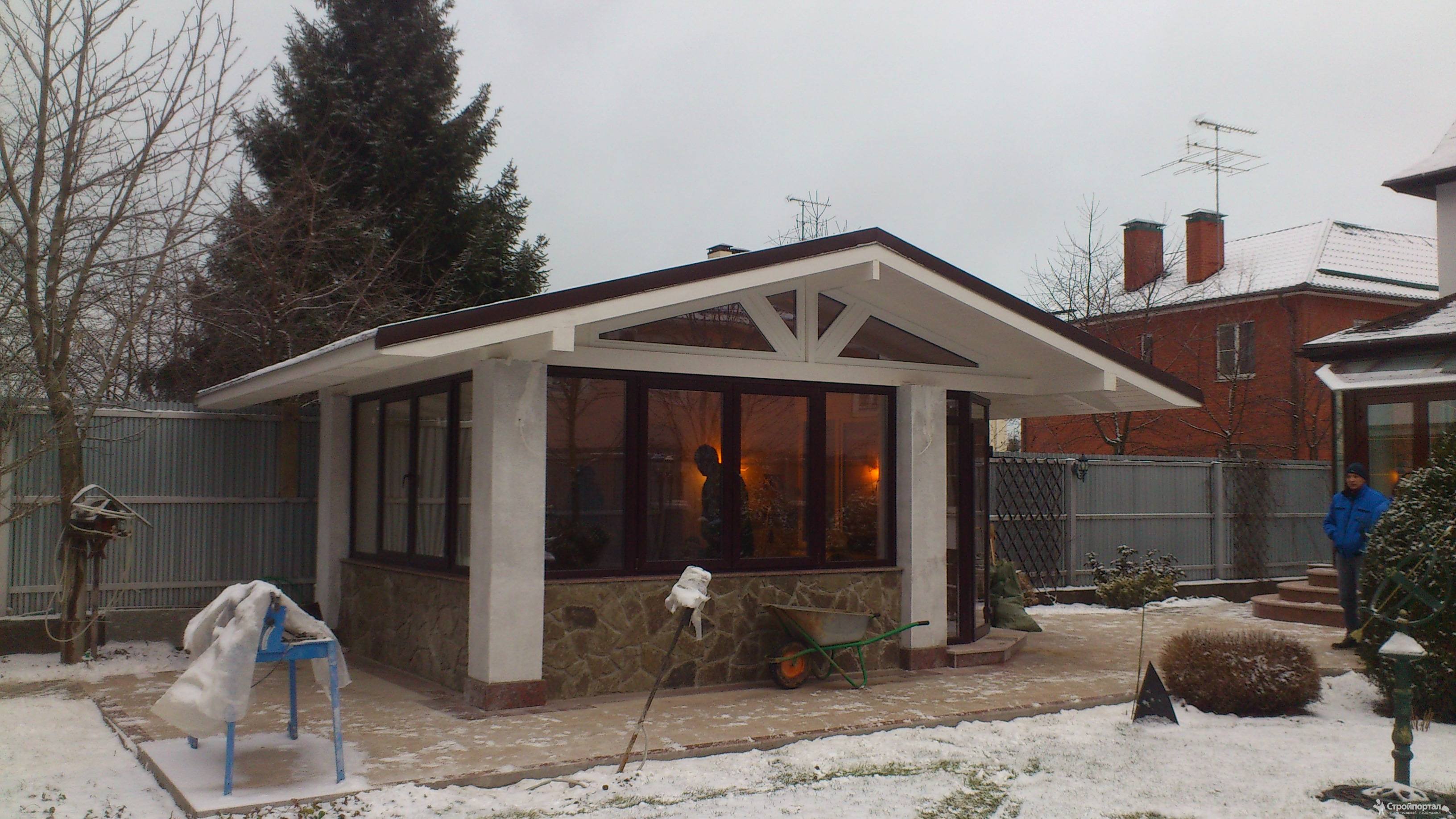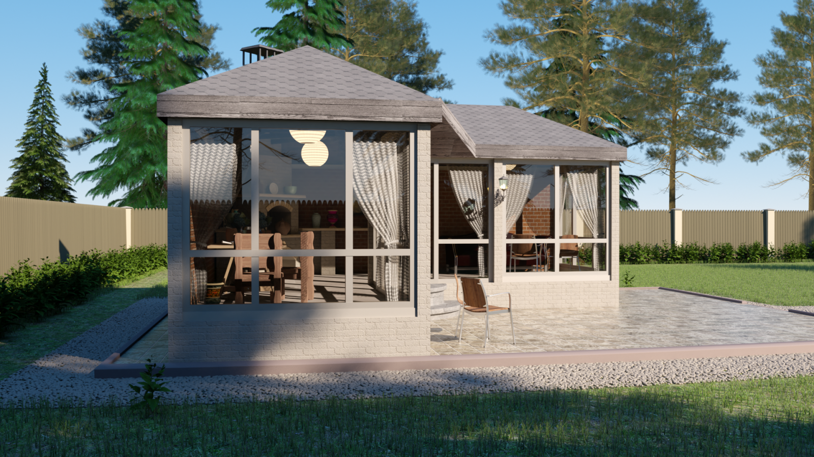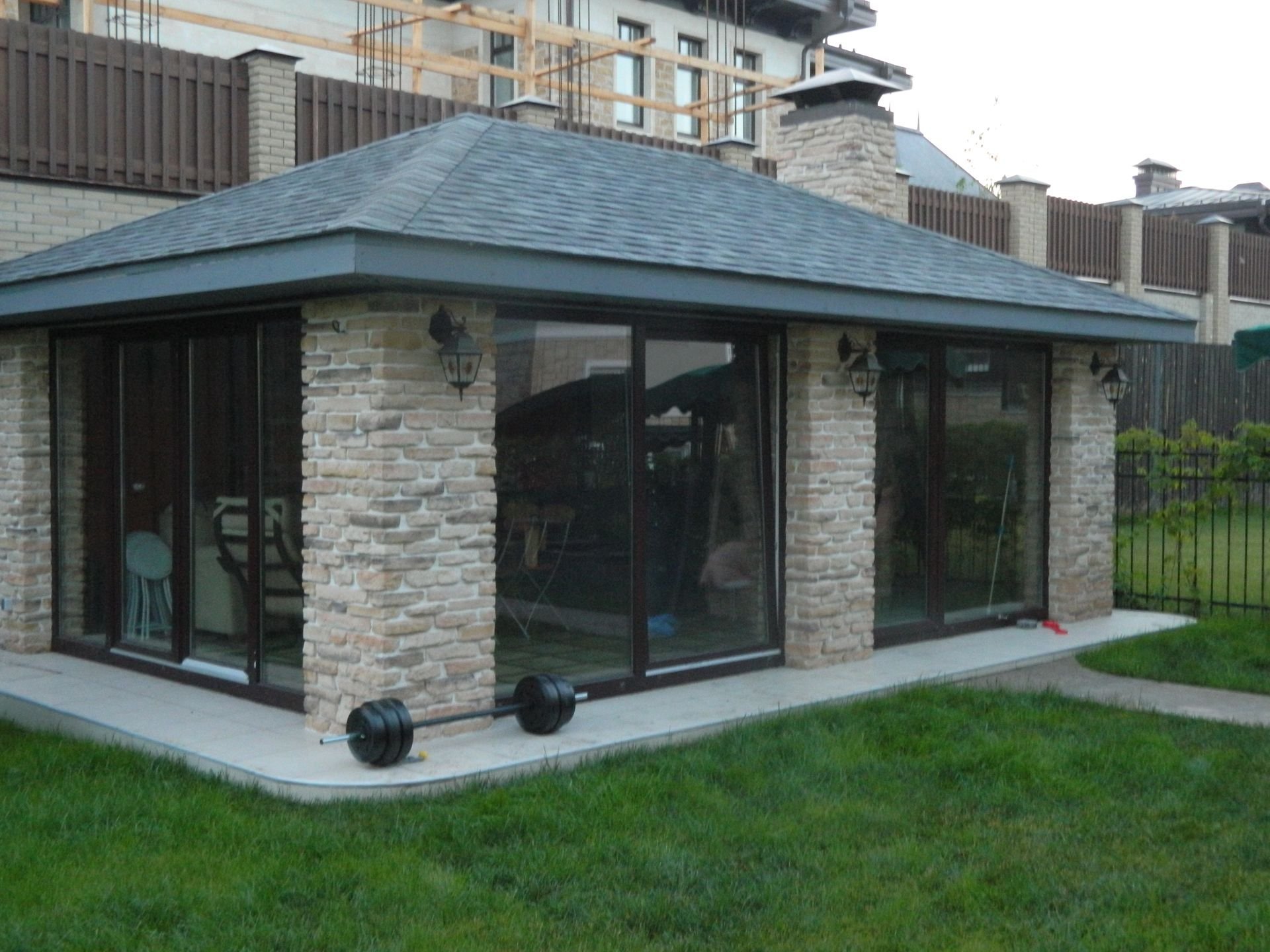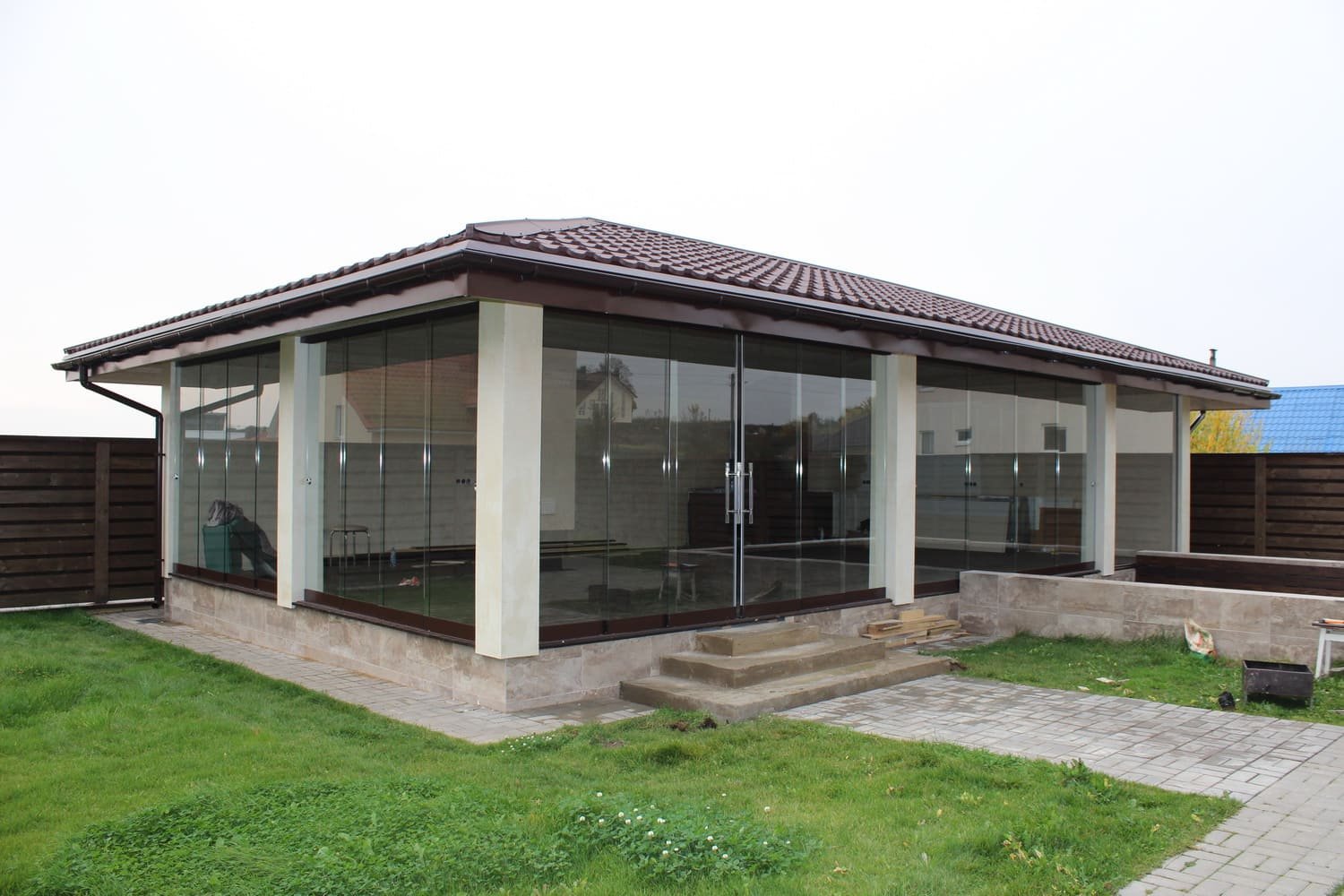 Крытая беседка застекленная с мангалом и барбекю 4х6