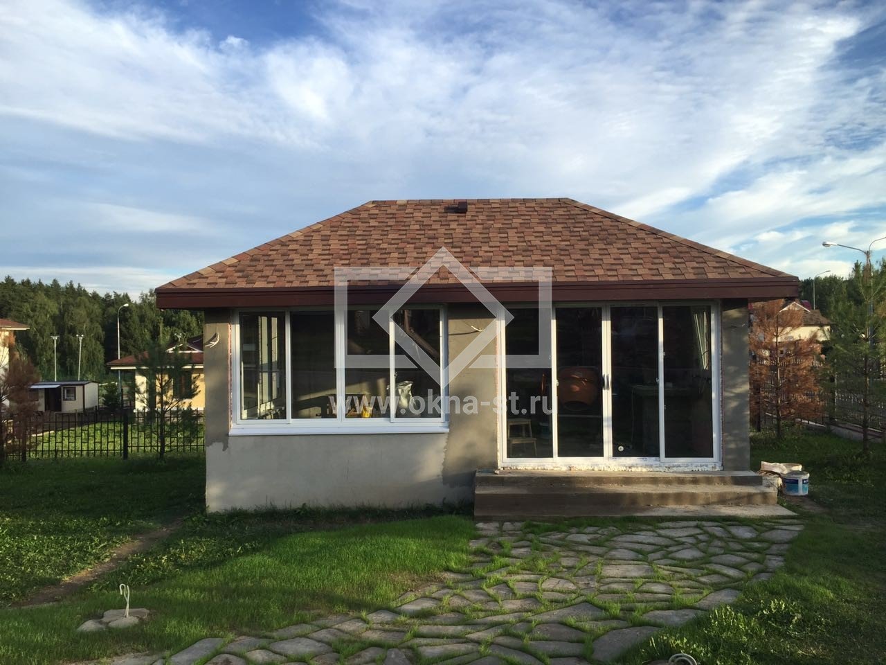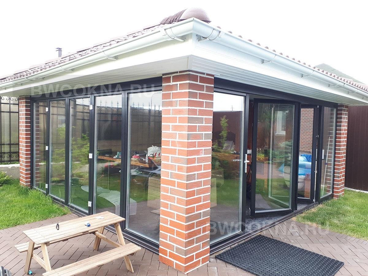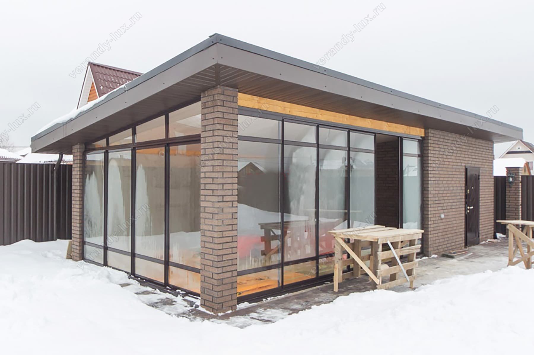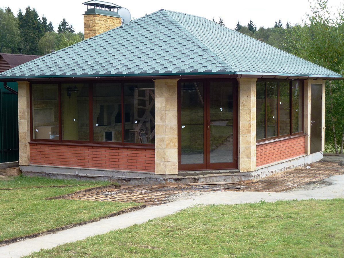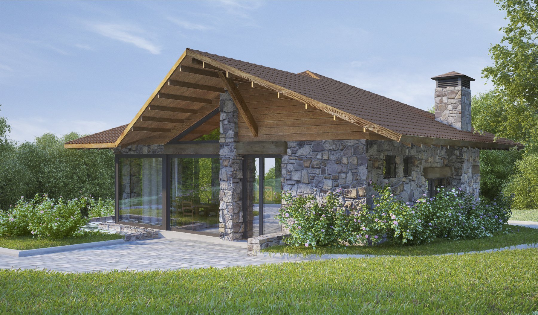 Крытая беседка застекленная с мангалом и барбекю 4х6