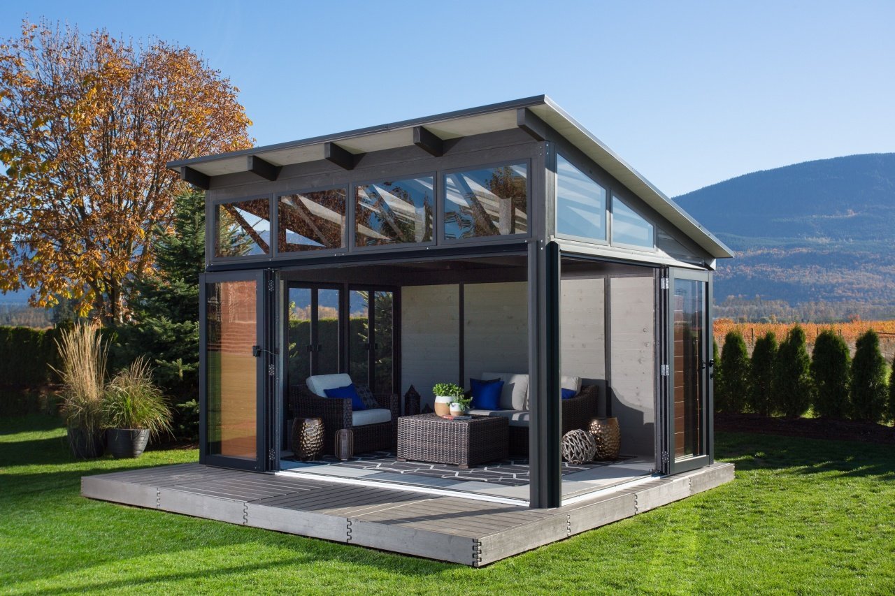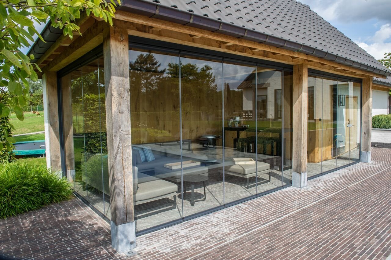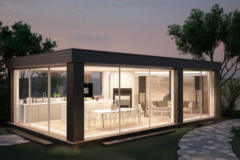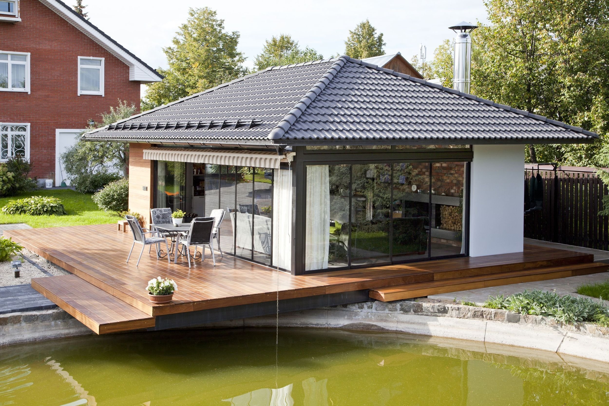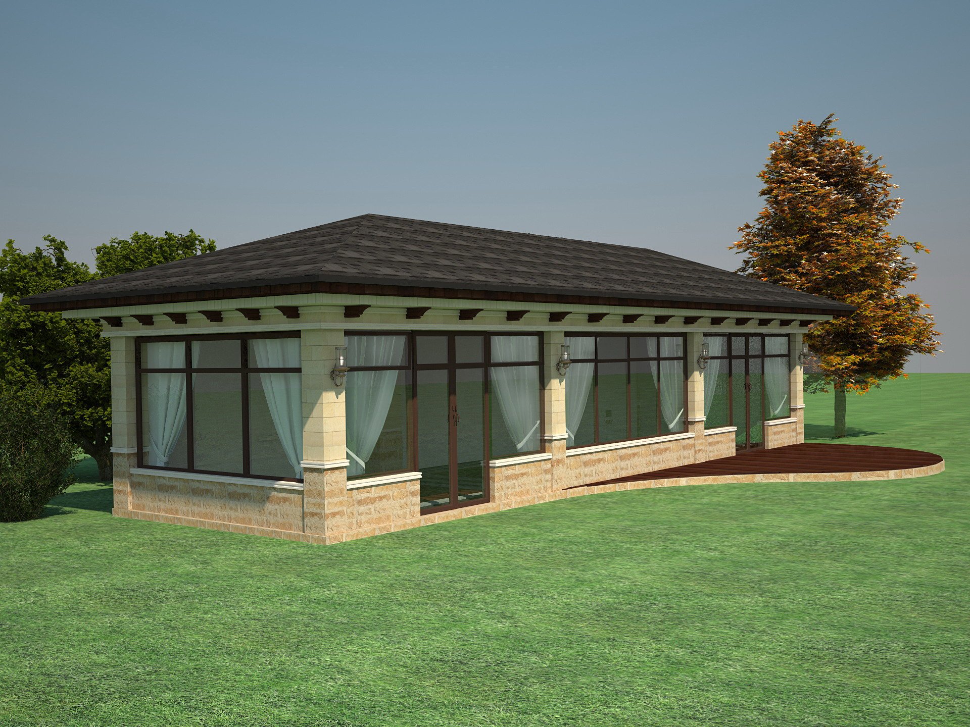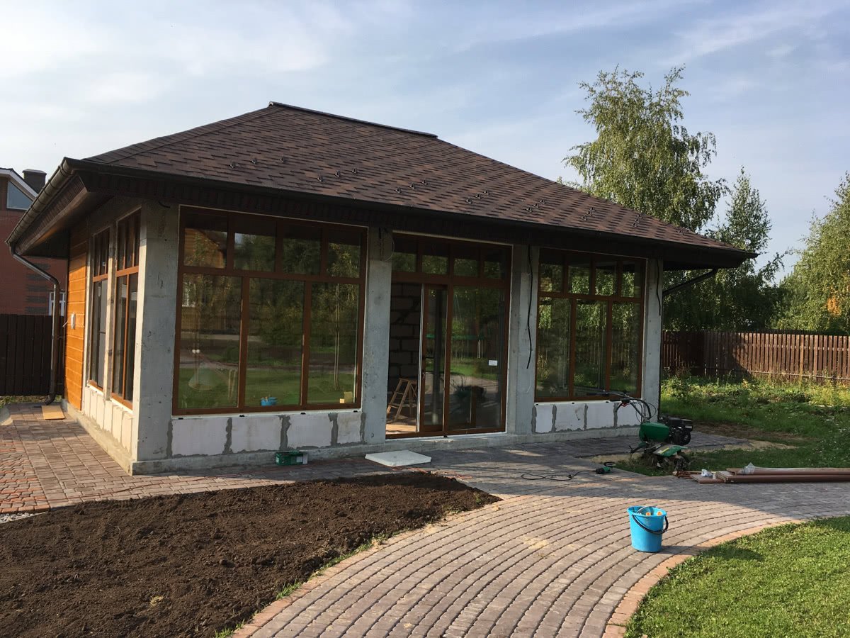 Крытая беседка застекленная с мангалом и барбекю 4х6