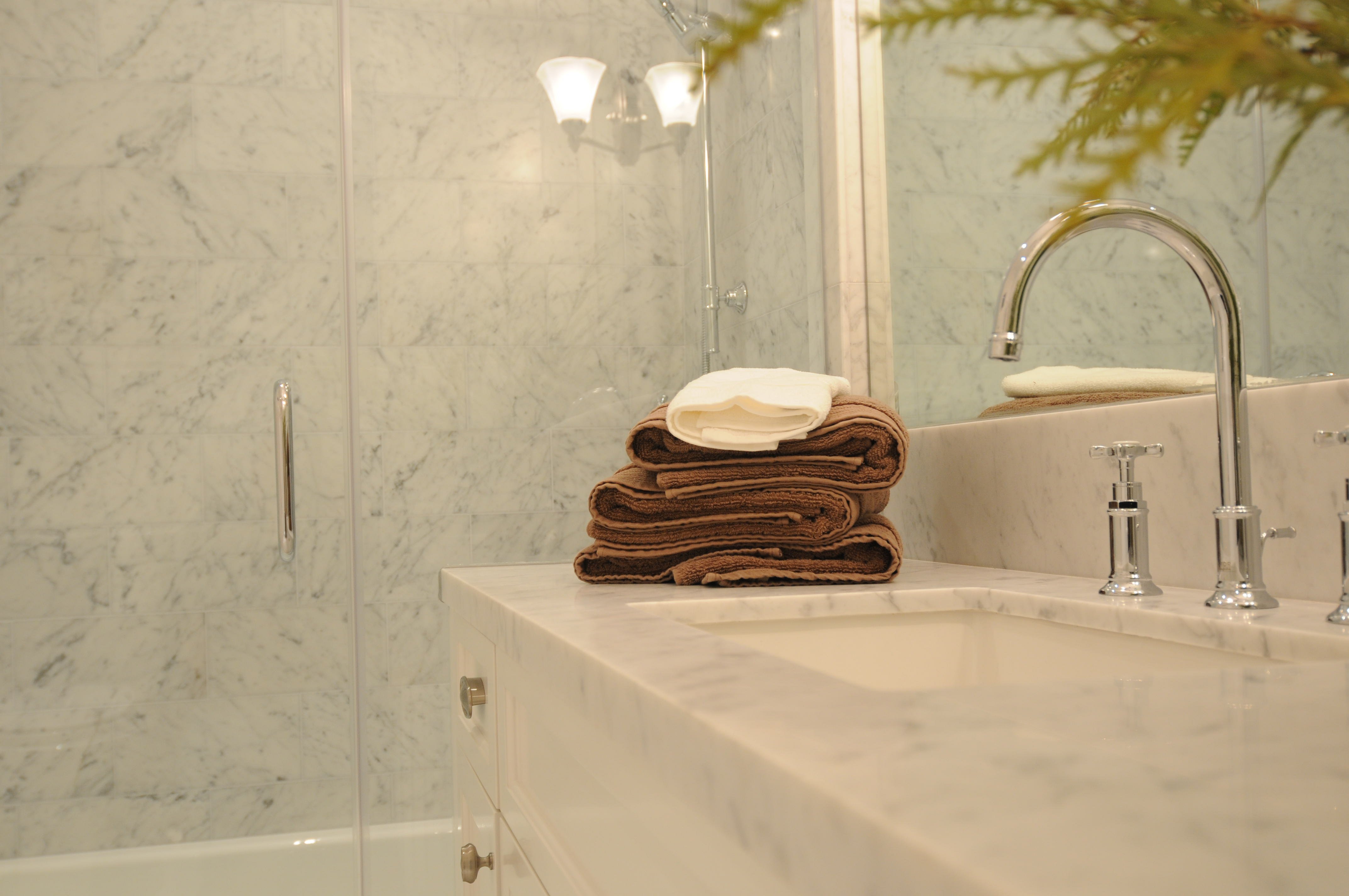Ванная с мраморной плиткой