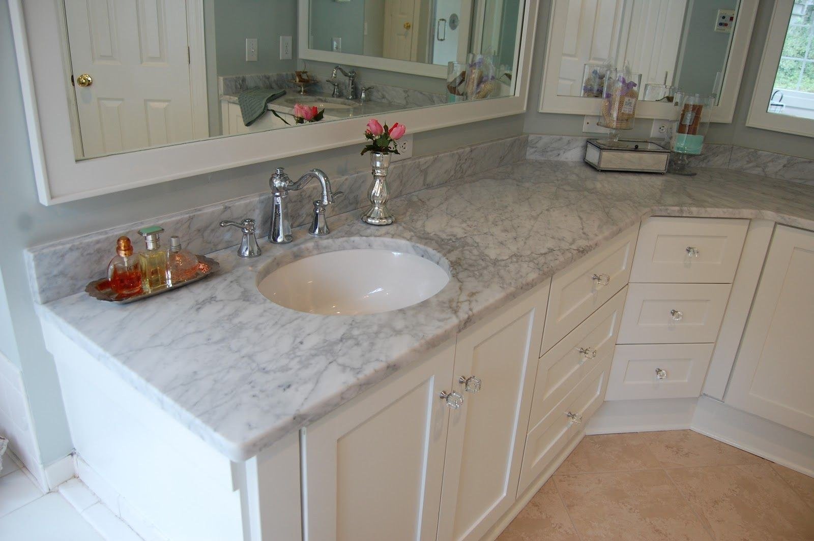 Белая мраморная столешница в ванной