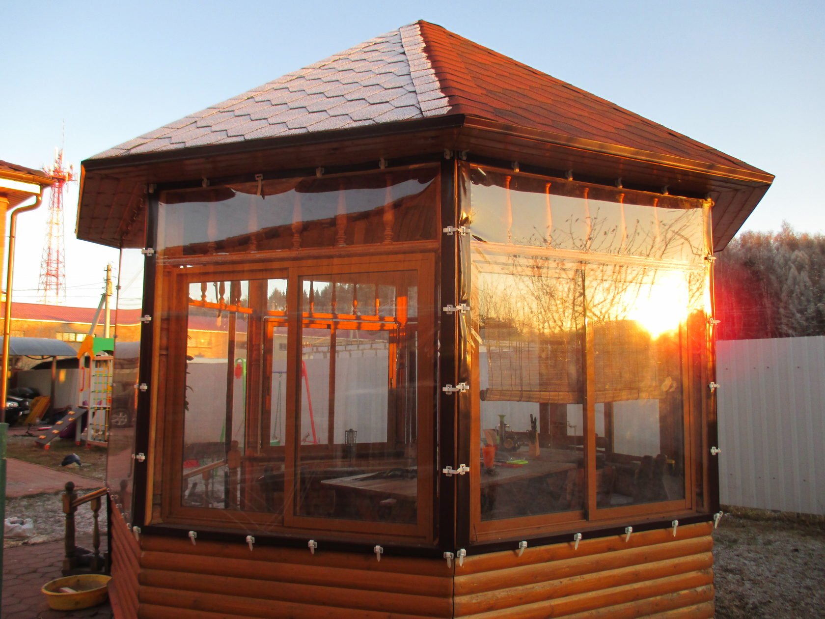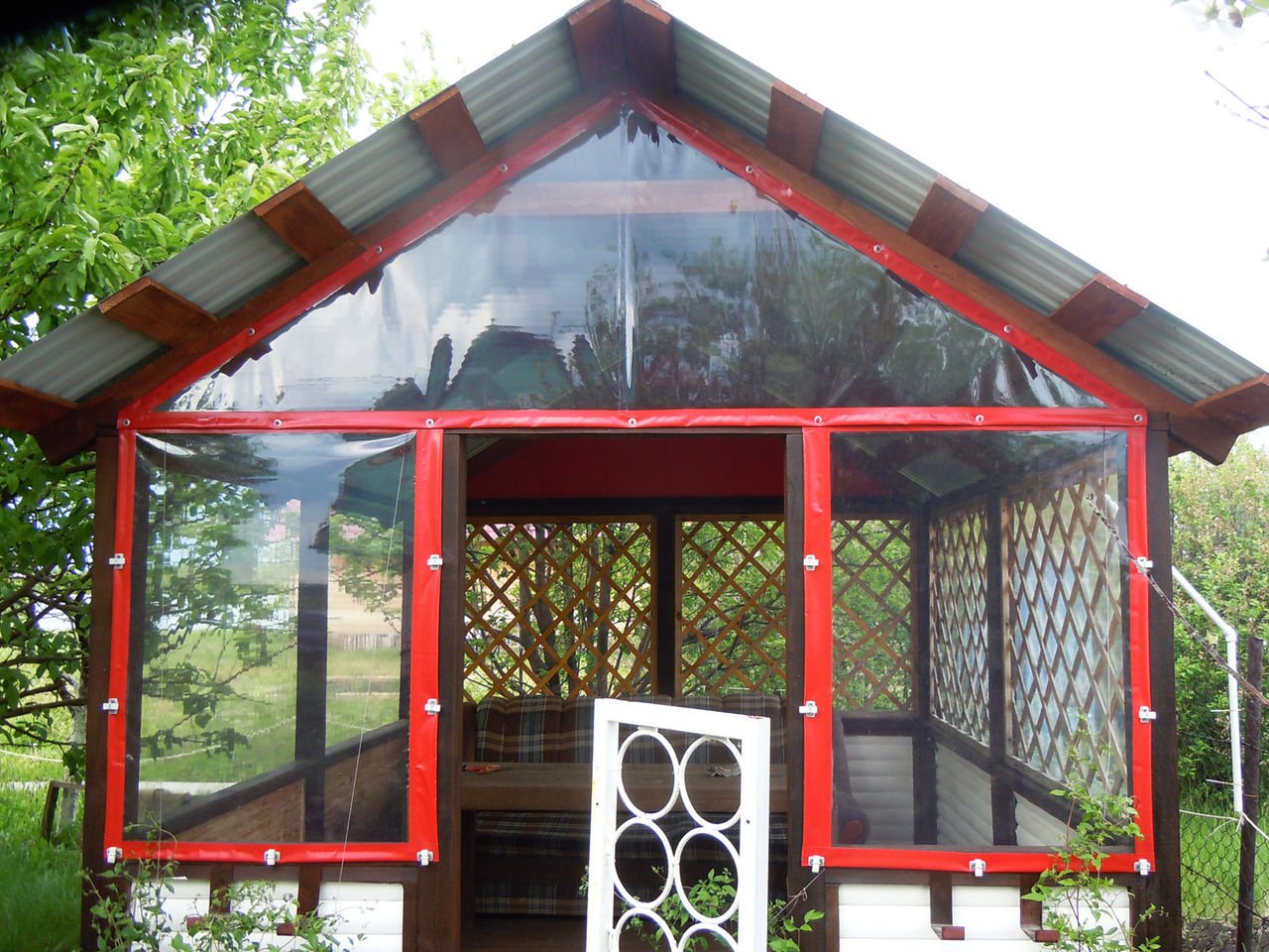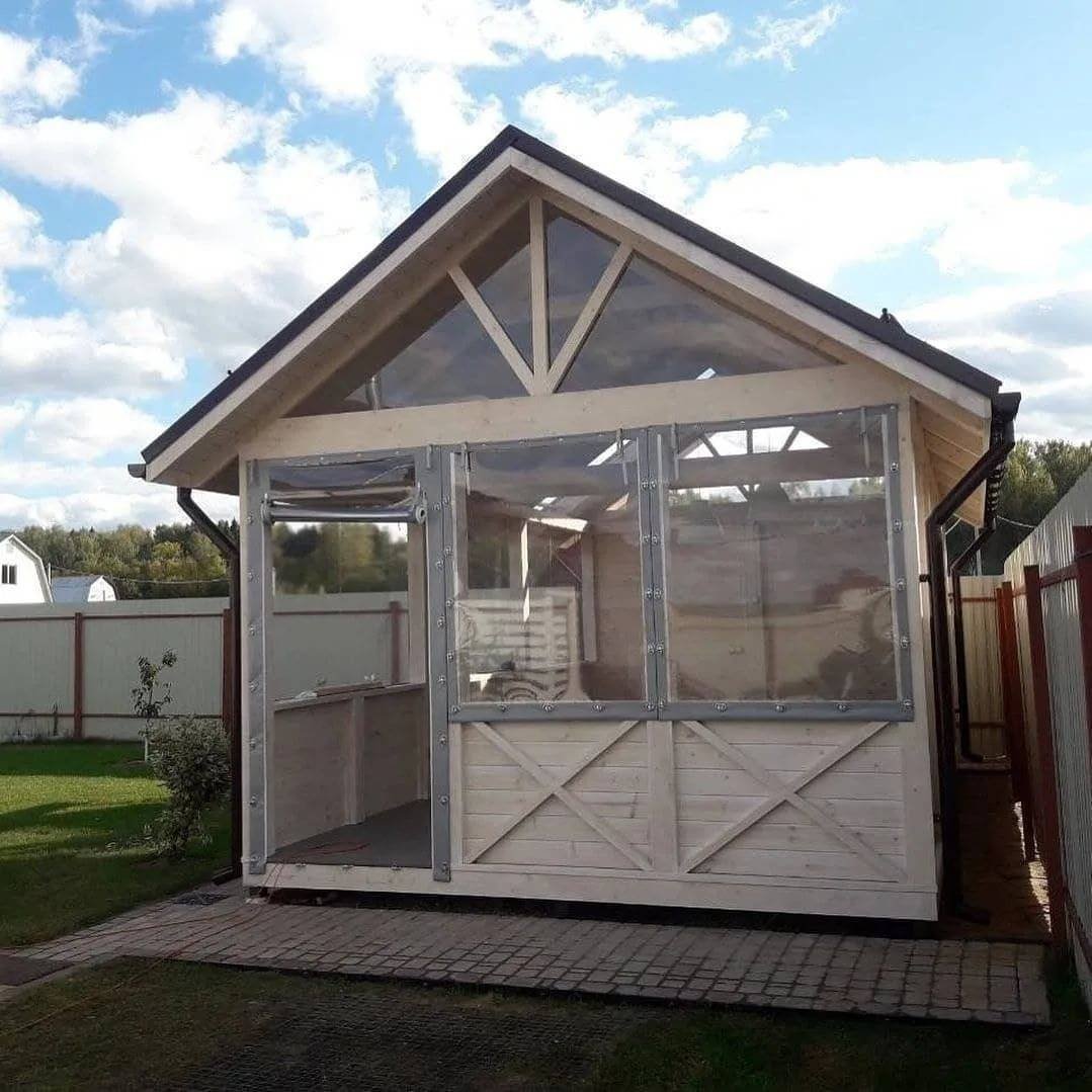 Беседка для дачи с мягкими окнами