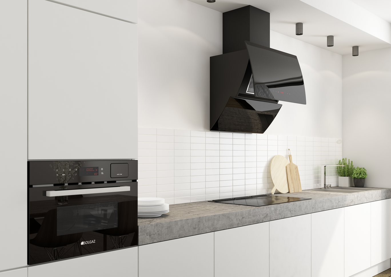 Черная вытяжка на белой кухне