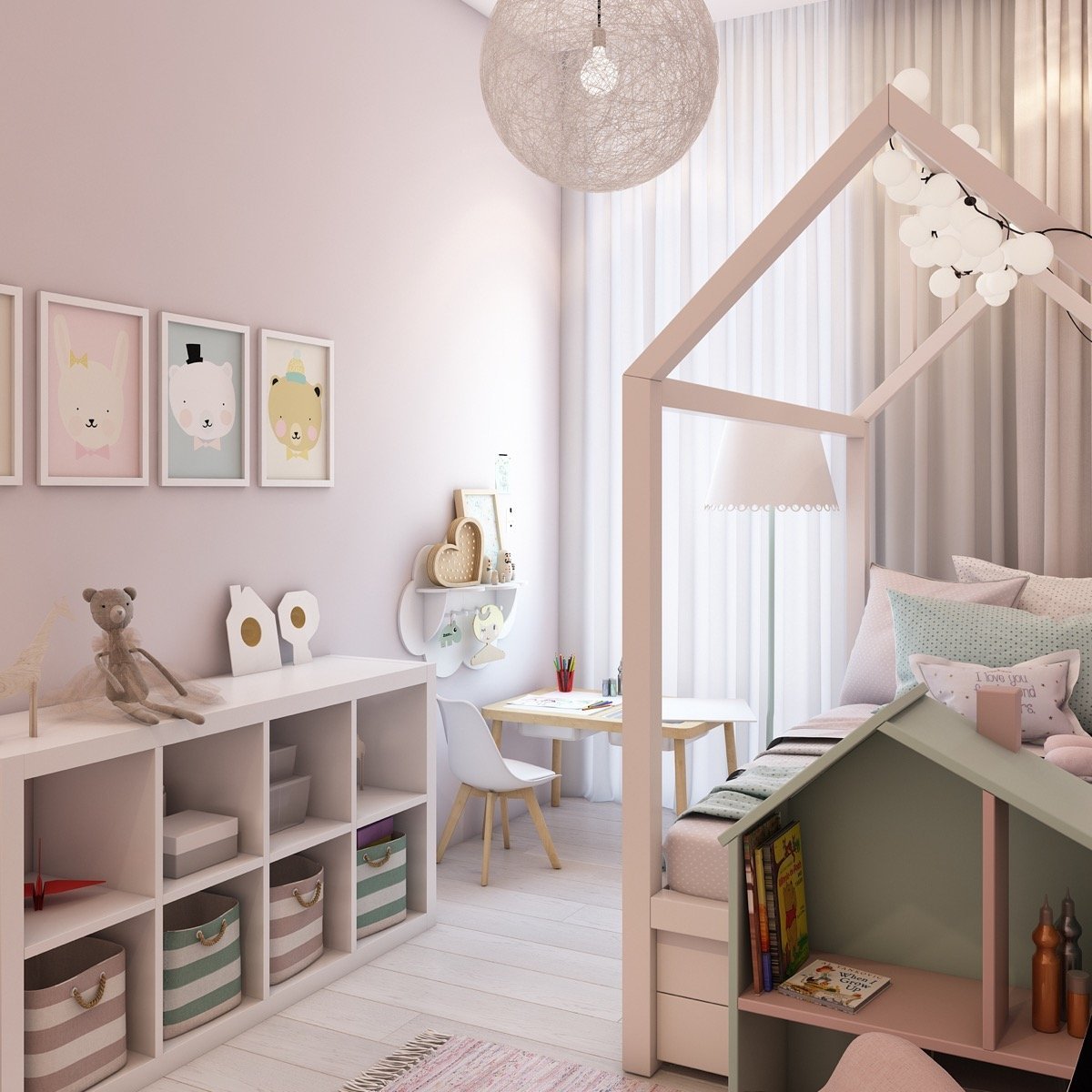 Комната для девочки с кроватью домиком