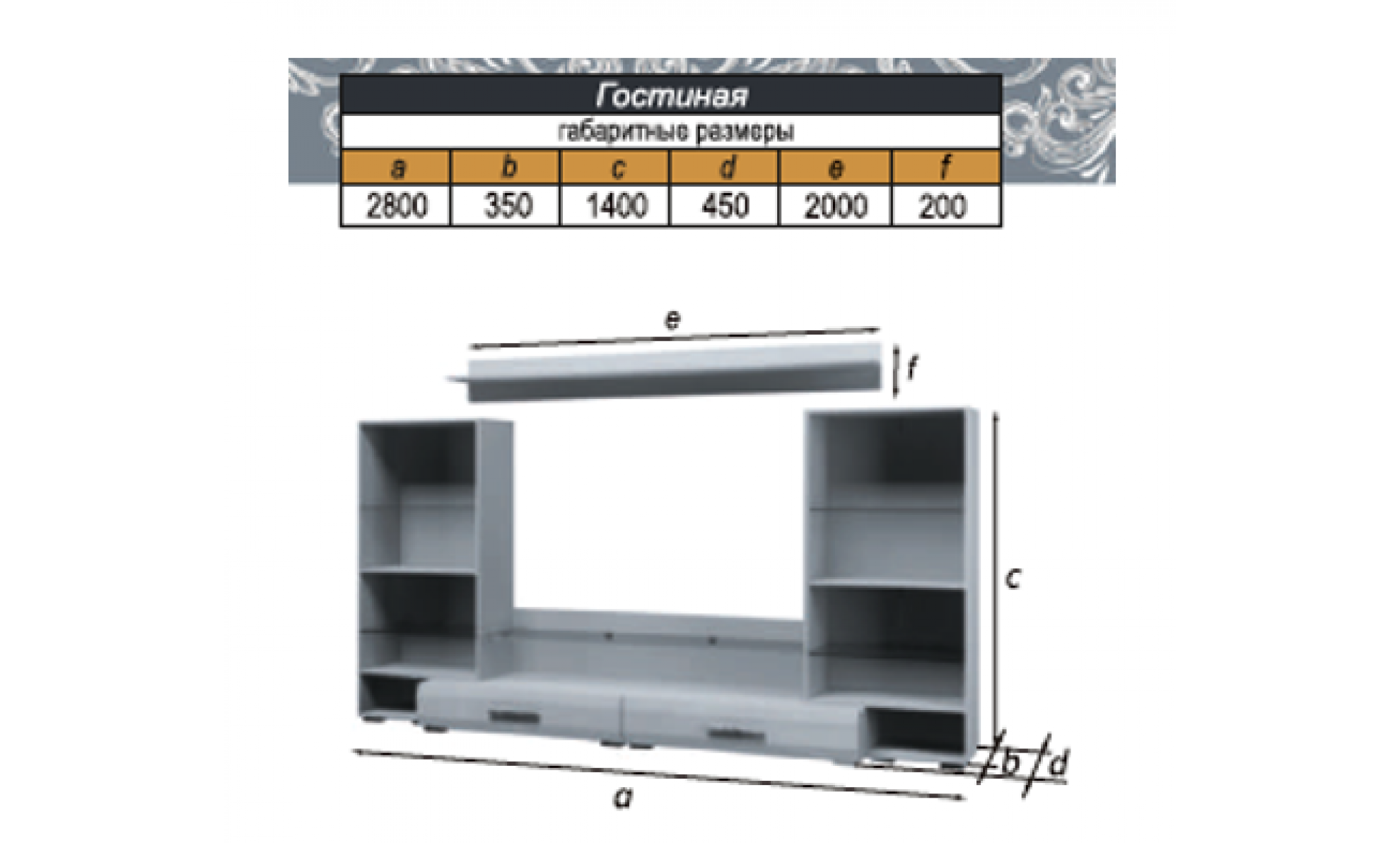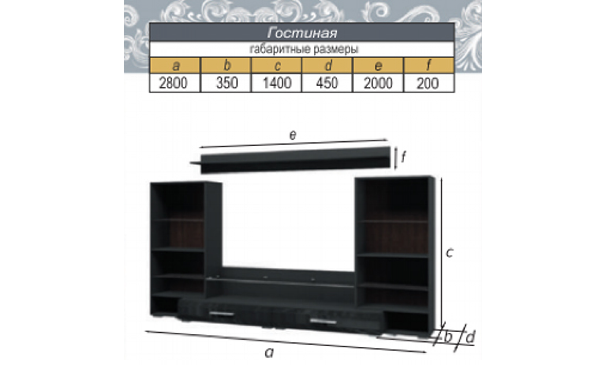 Гостиная Домино Браво мебель габариты