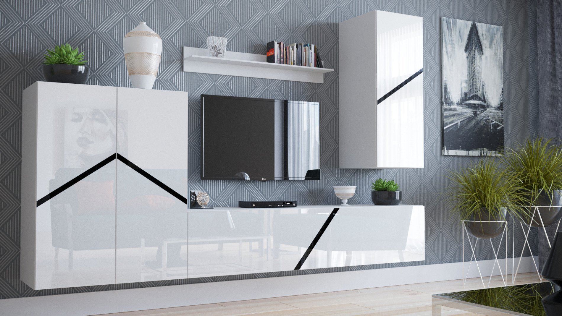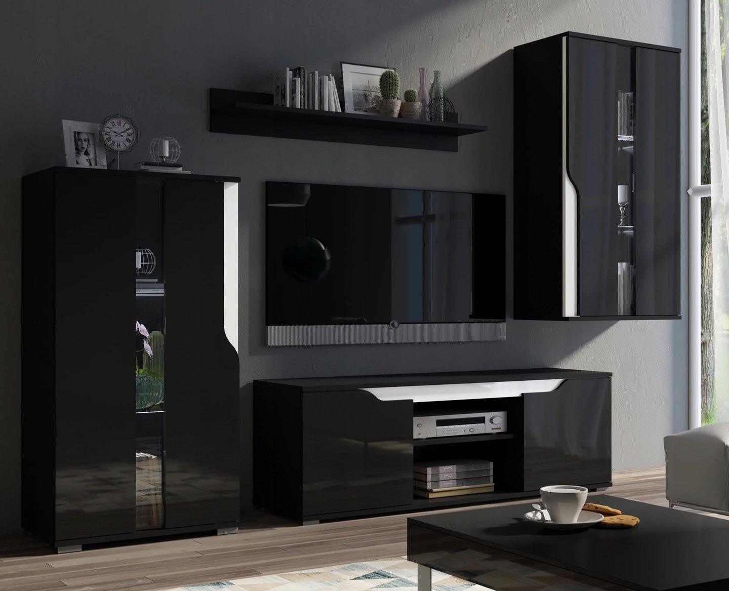 Стенка белая черная глянец Kala