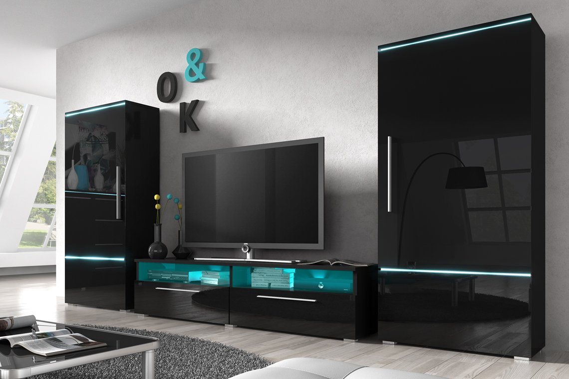 Стенка Домино черный глянец