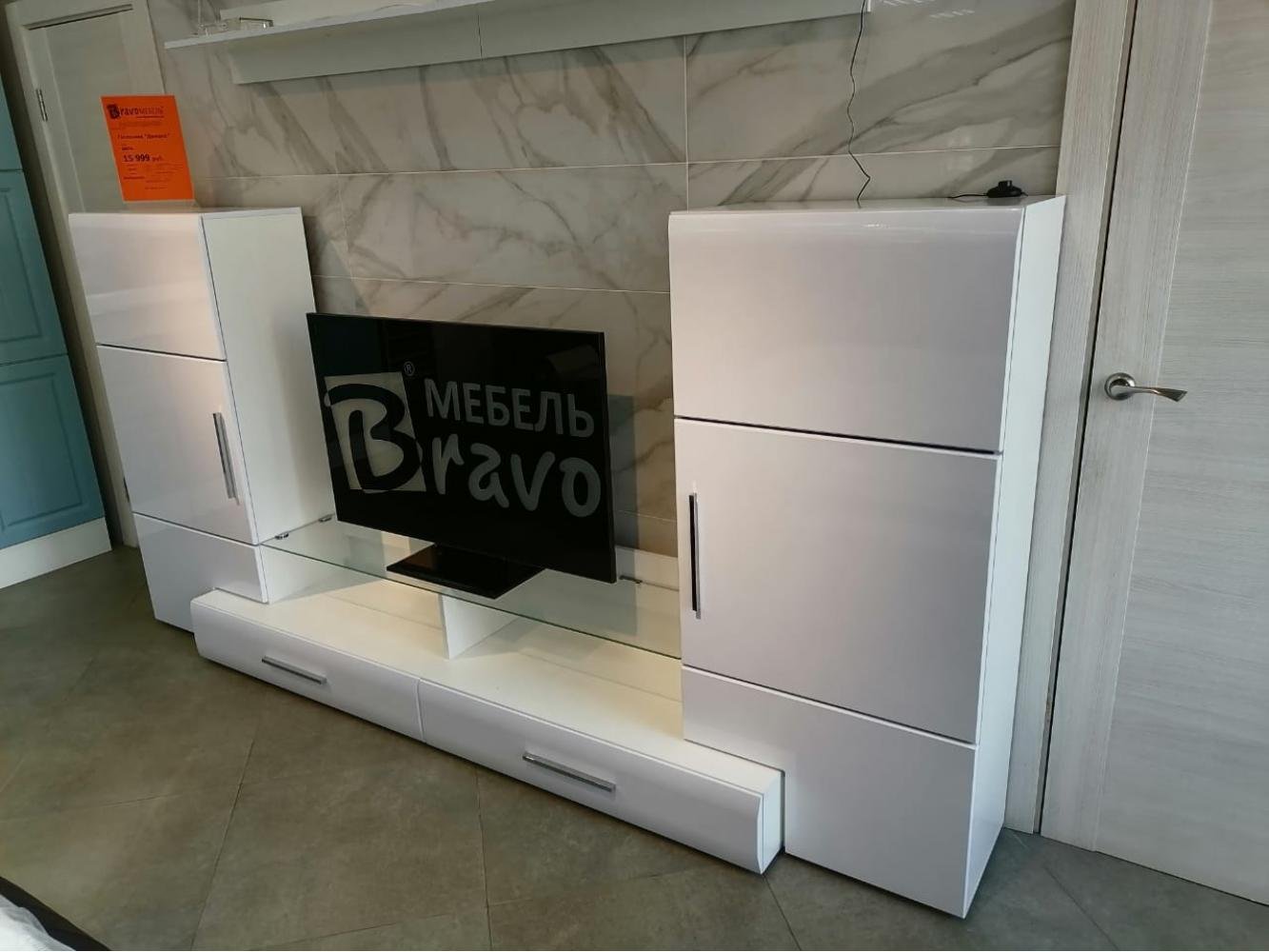 Гостиная Домино белый глянец Браво