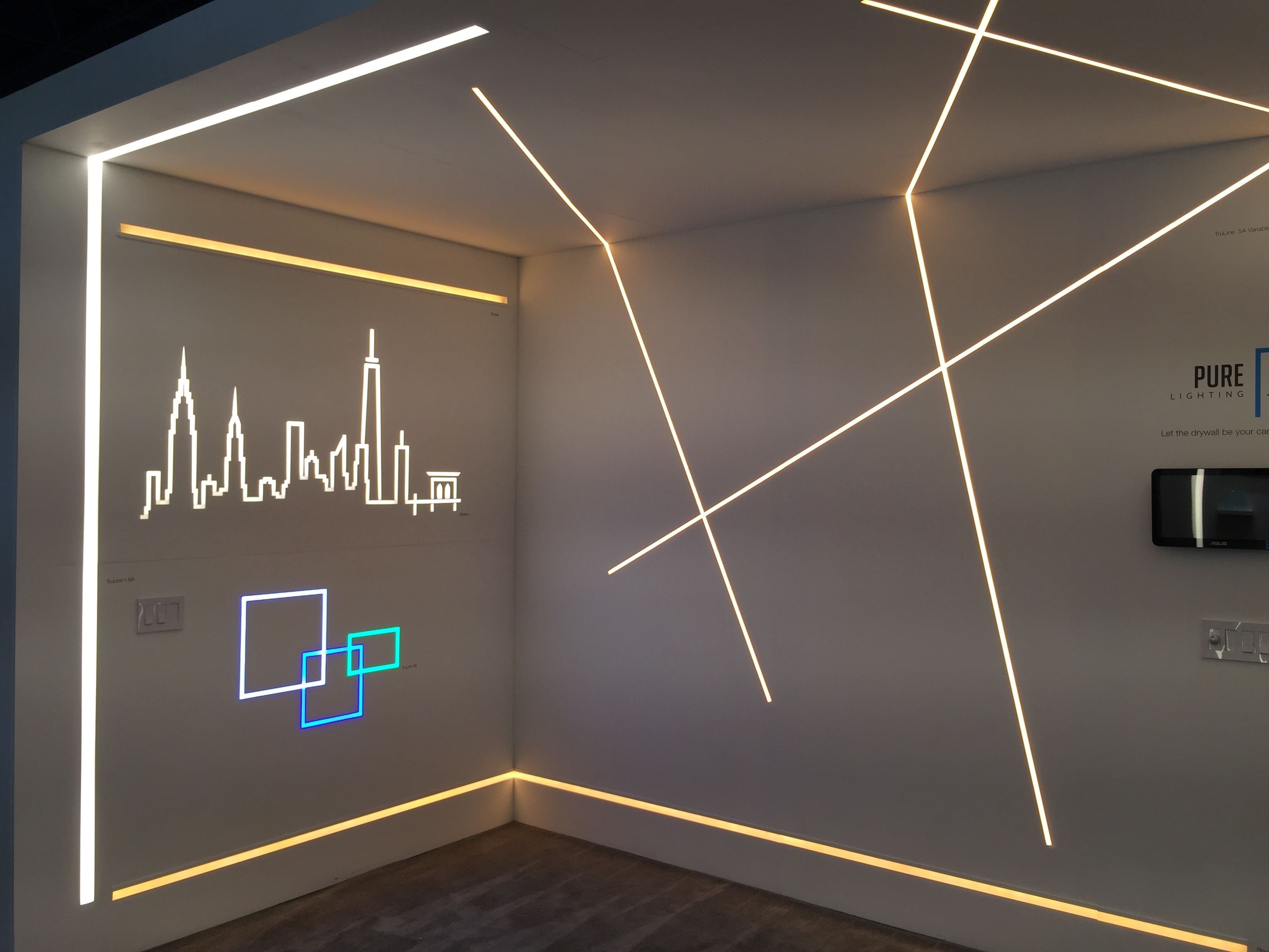 Световые линии на стене в интерьере