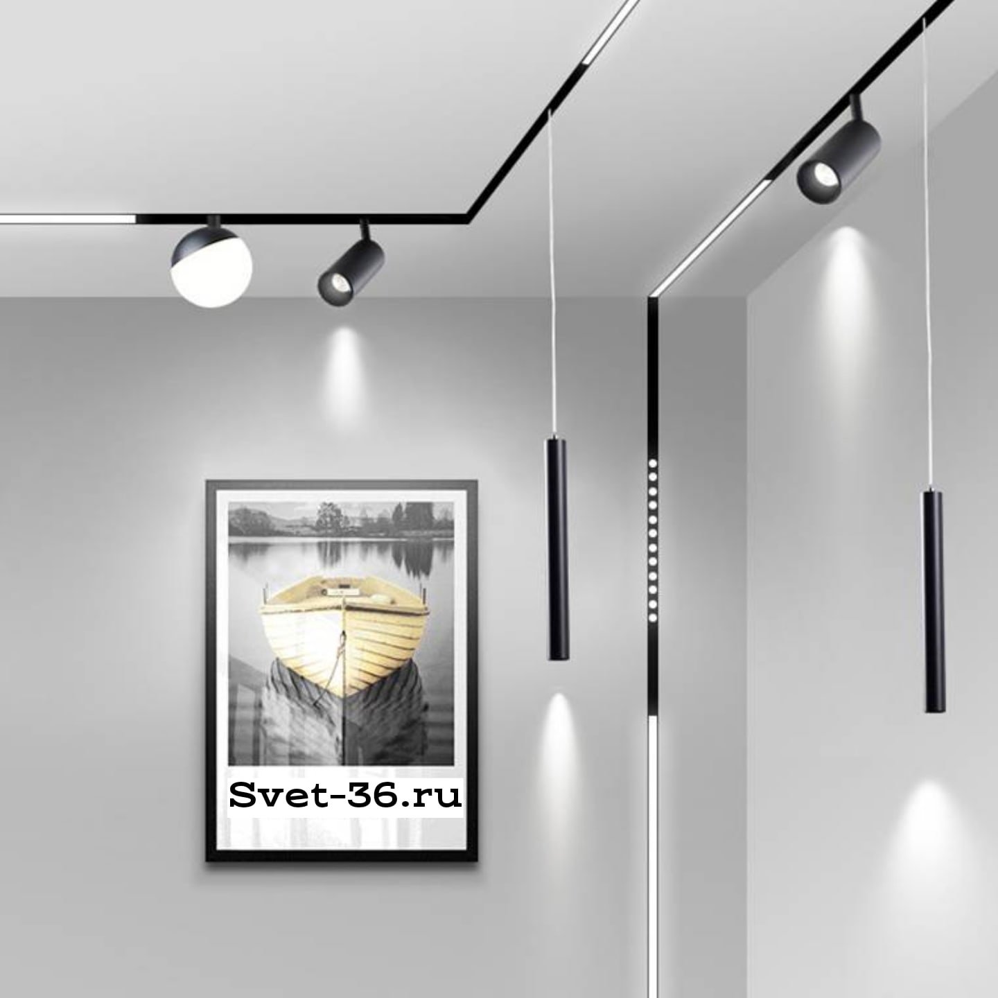 Подвесной магнитный шинопровод с поворотными светильниками 2метра