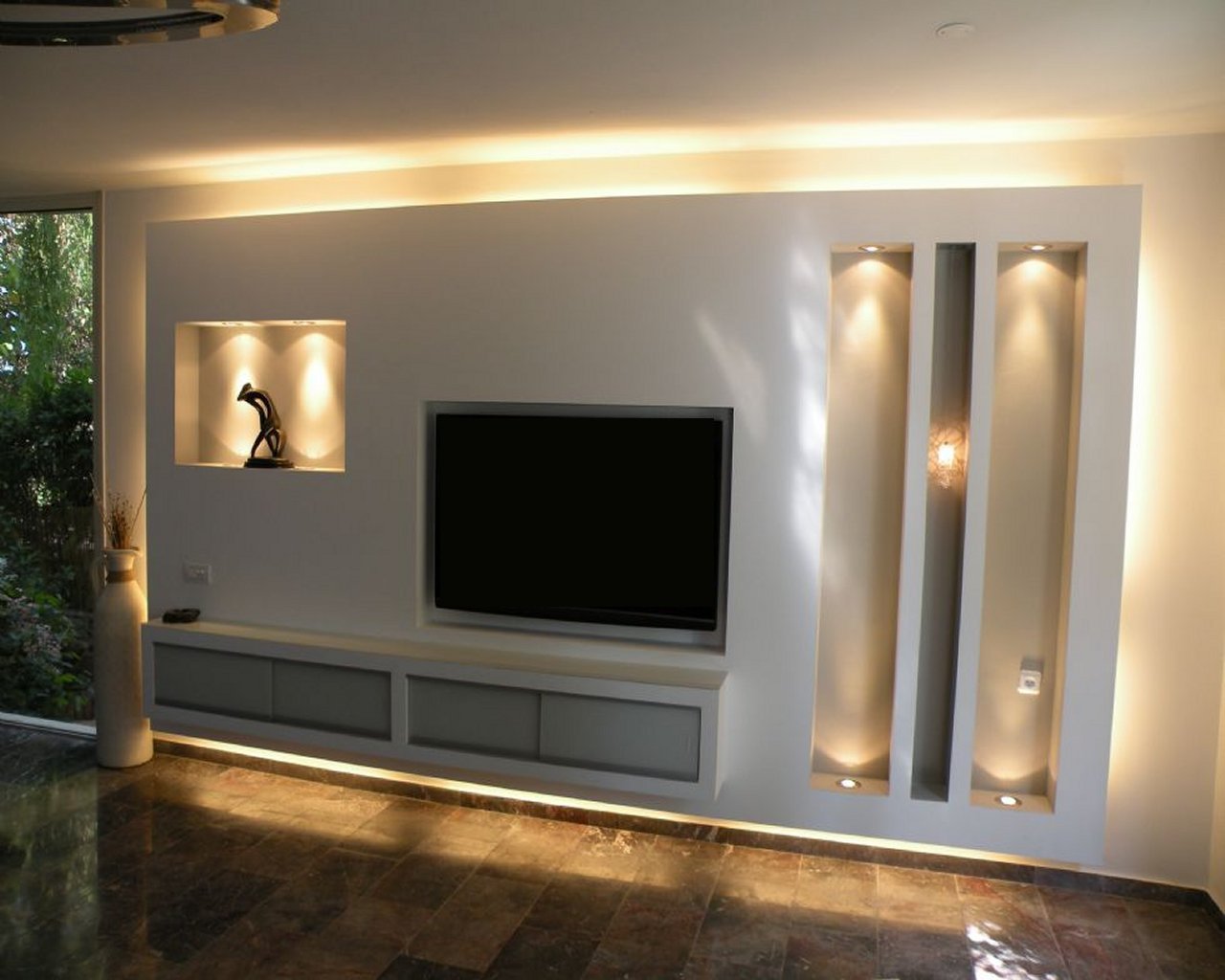 Стенка из гипсокартона под телевизор