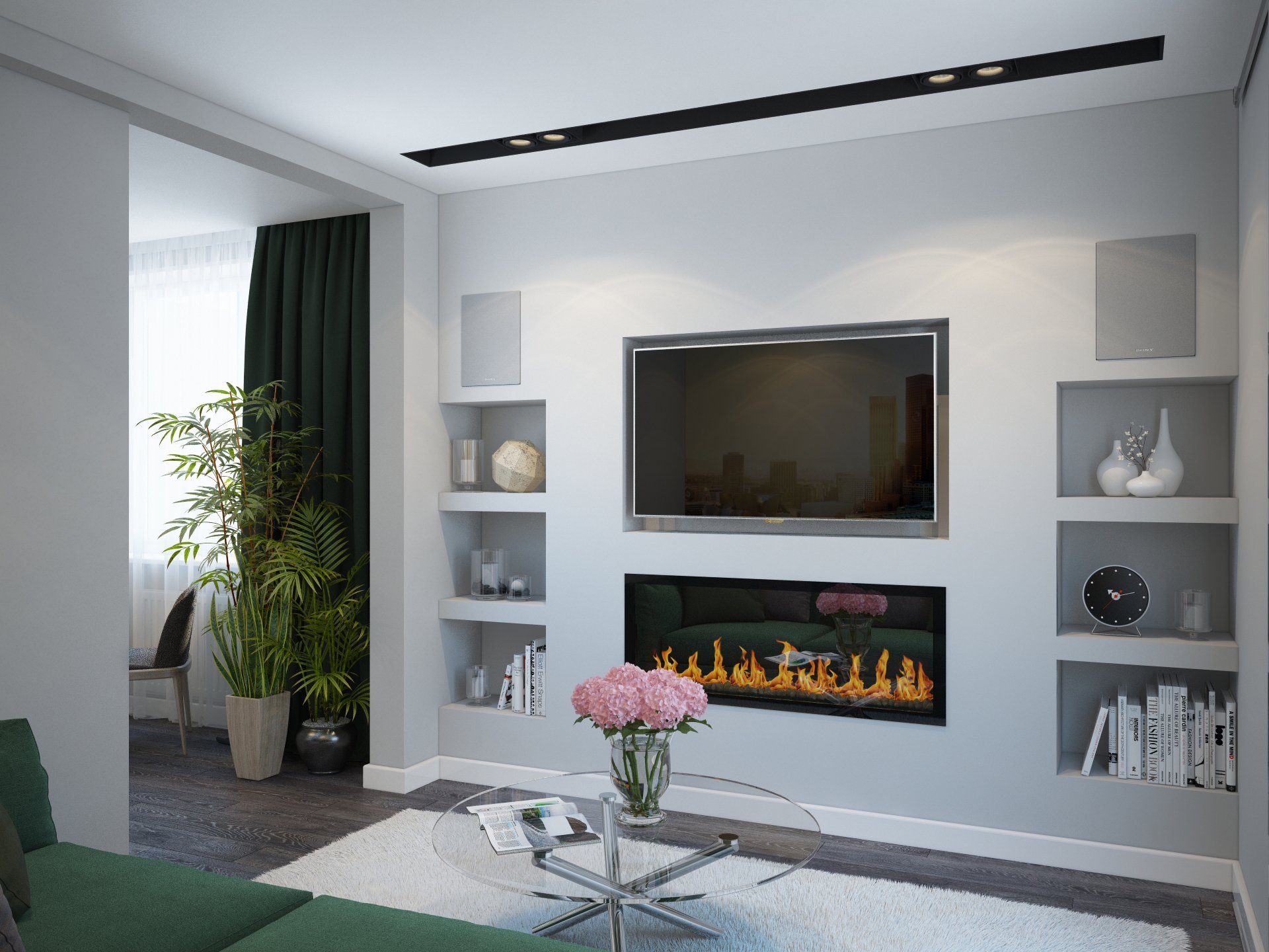 Ниша с камином и телевизором