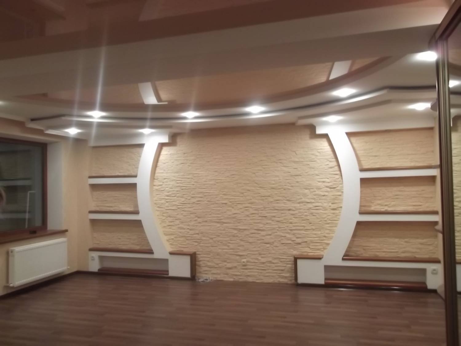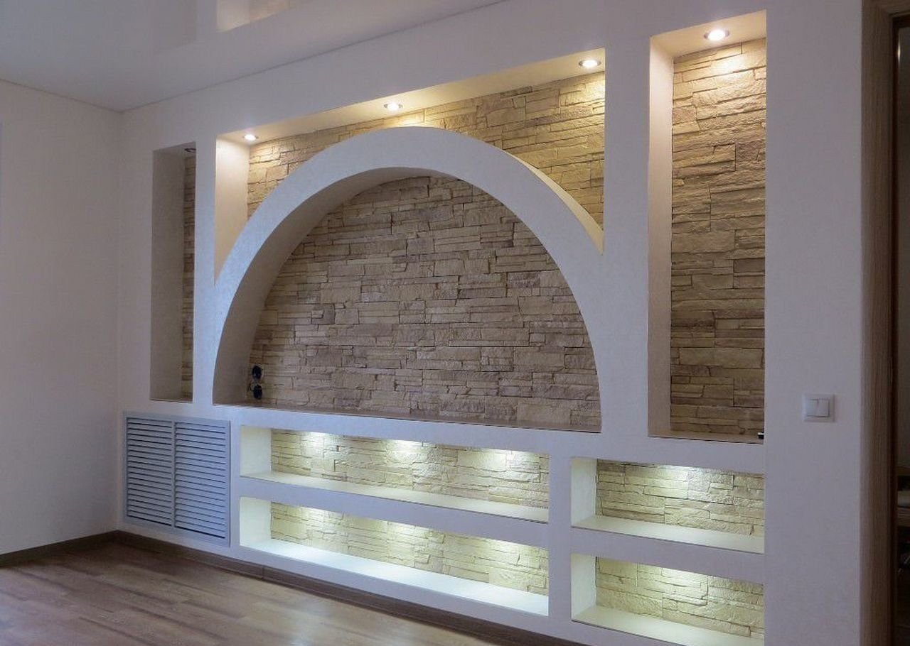 Стенка из гипсокартона в зале