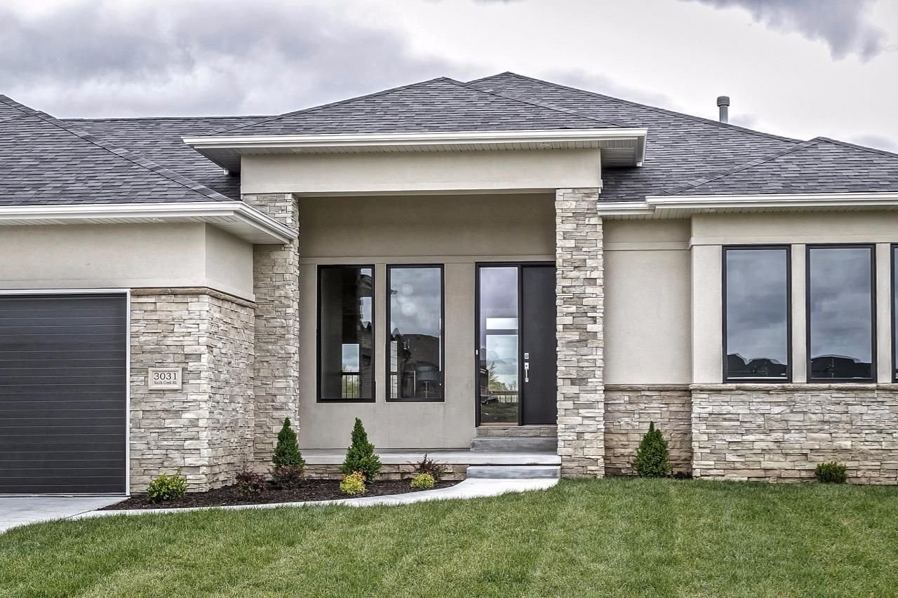 Фасады одноэтажных домов в серых тонах