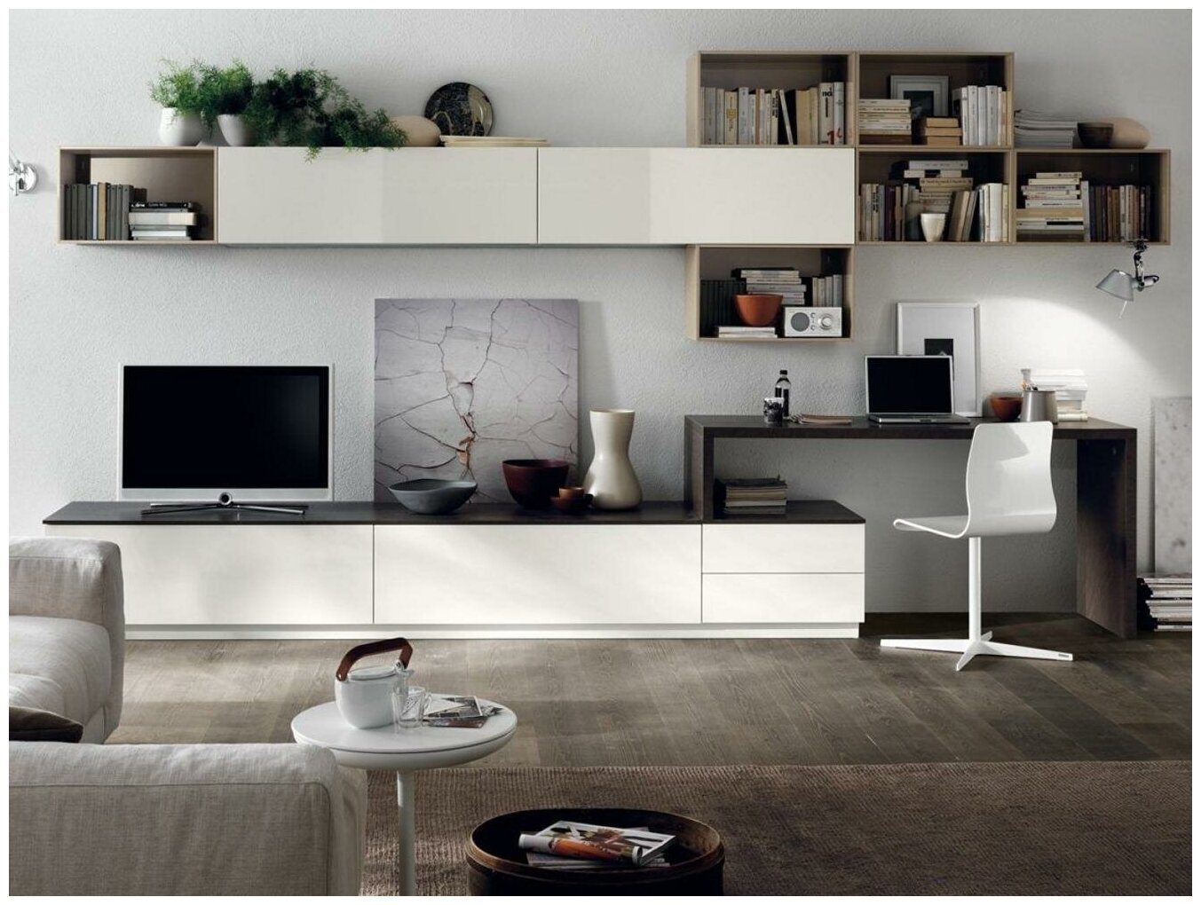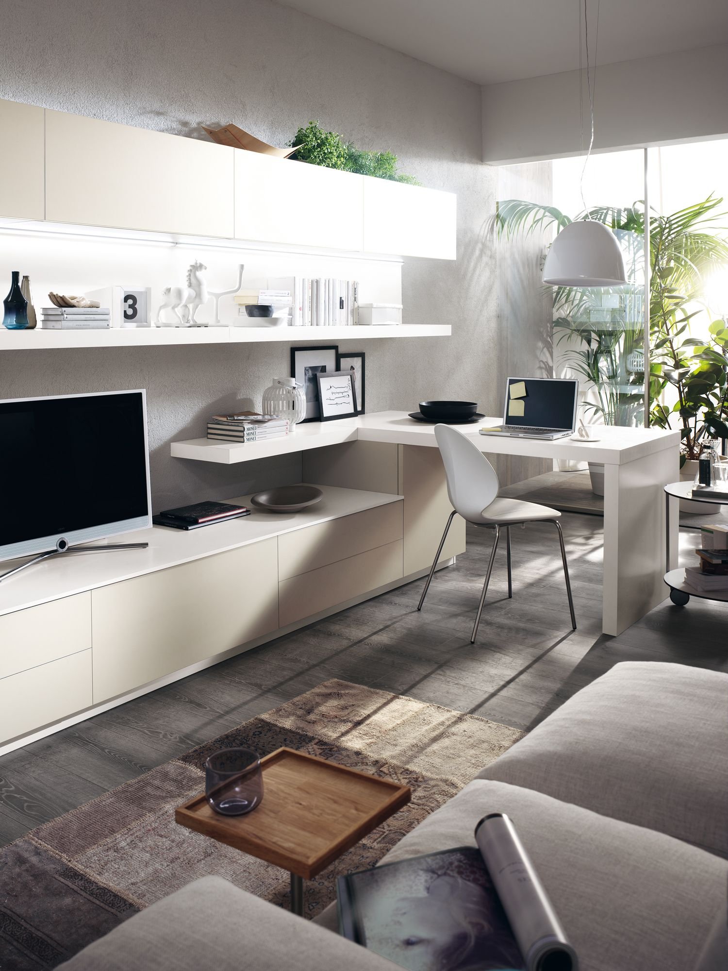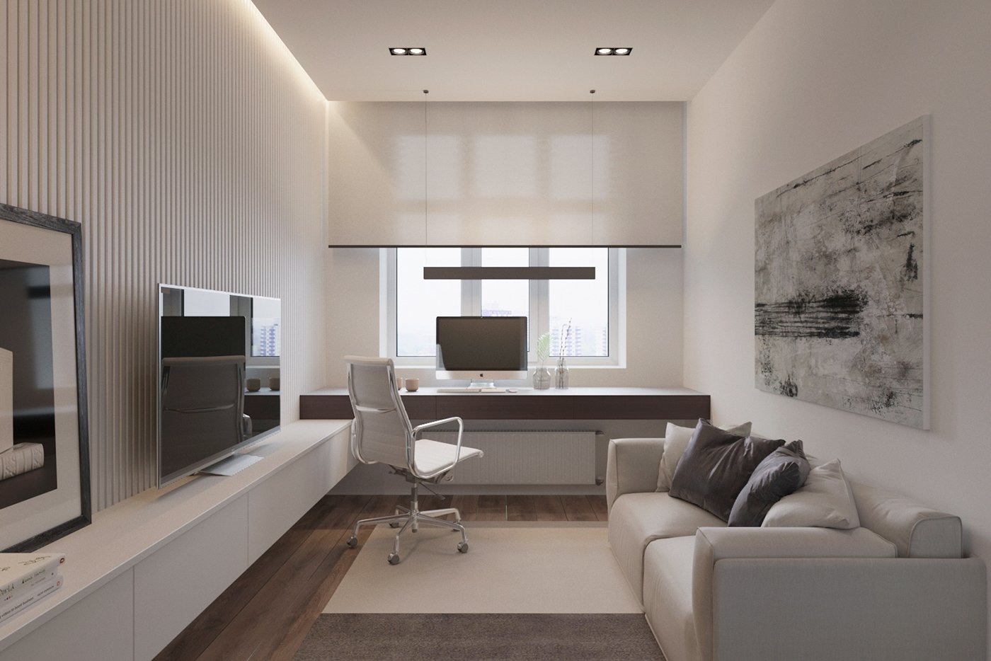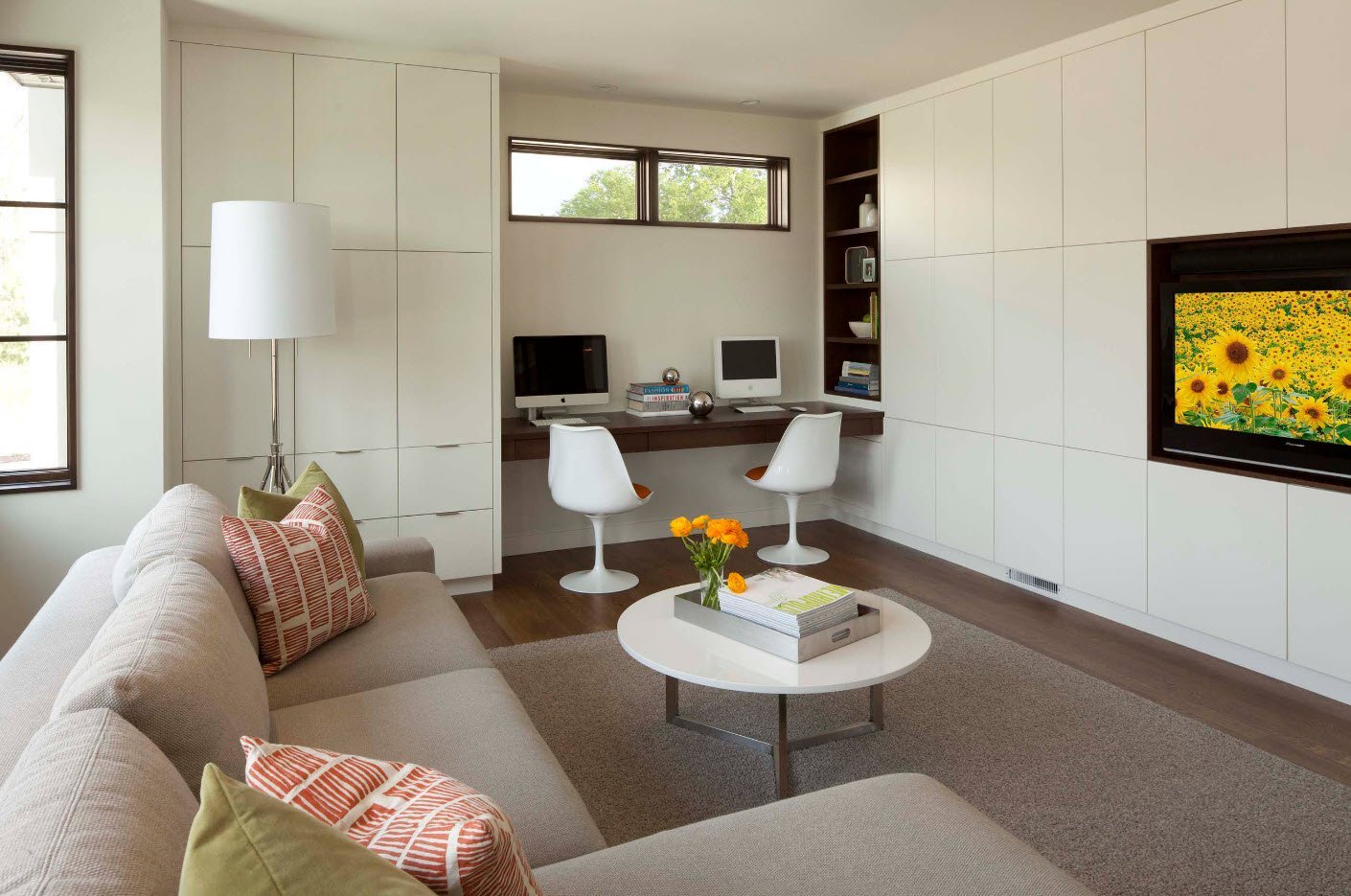 Гостиная с рабочим местом в современном стиле