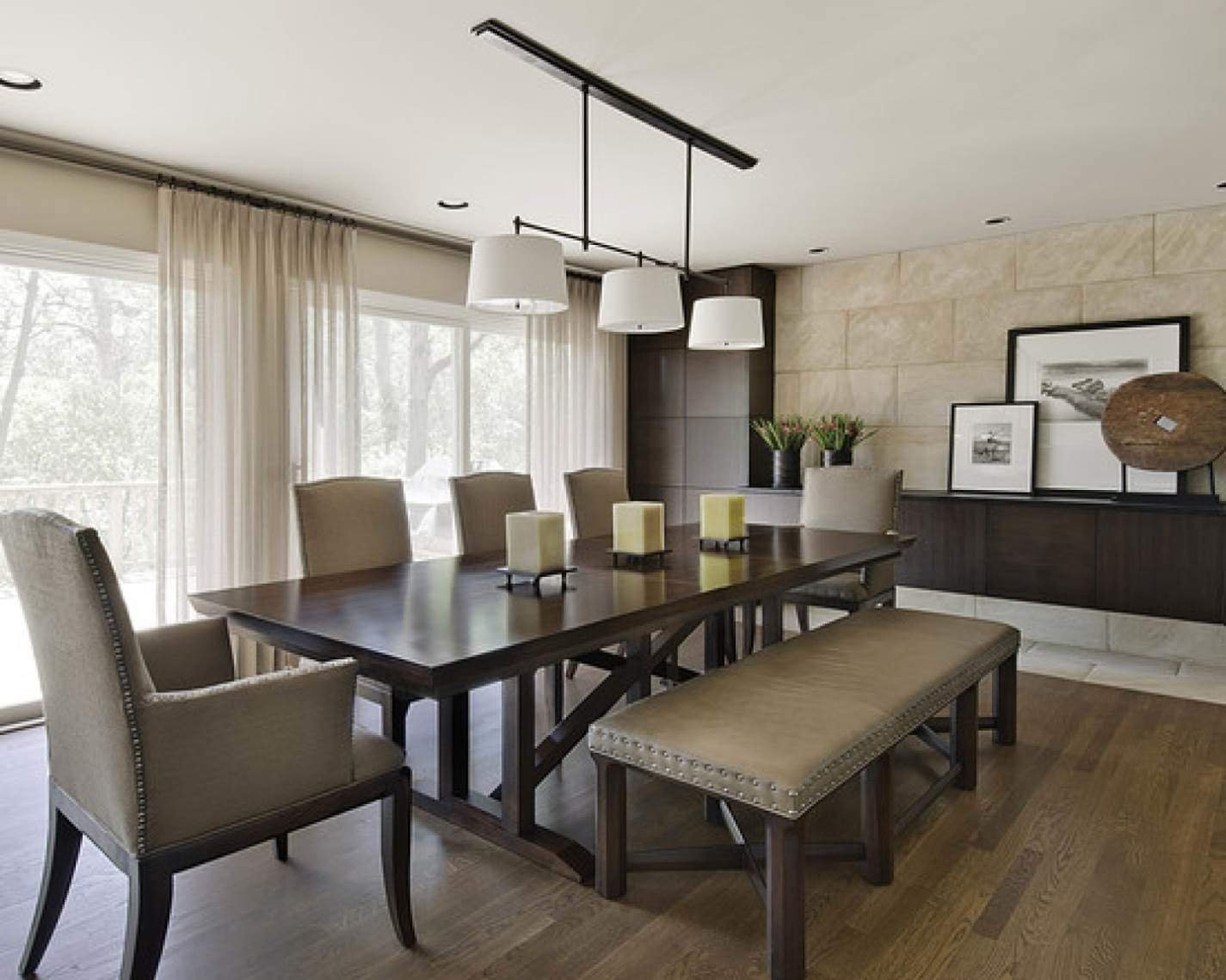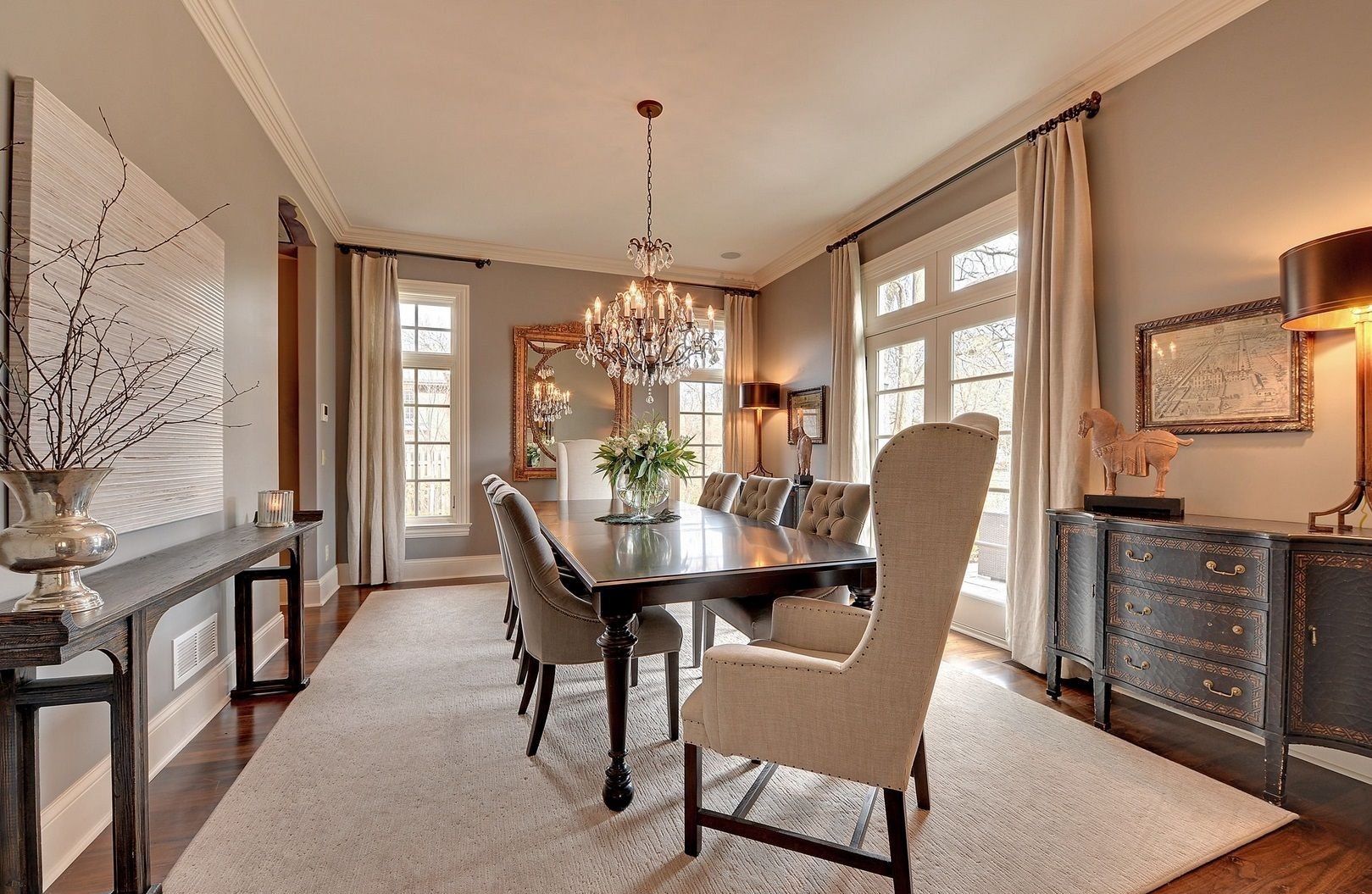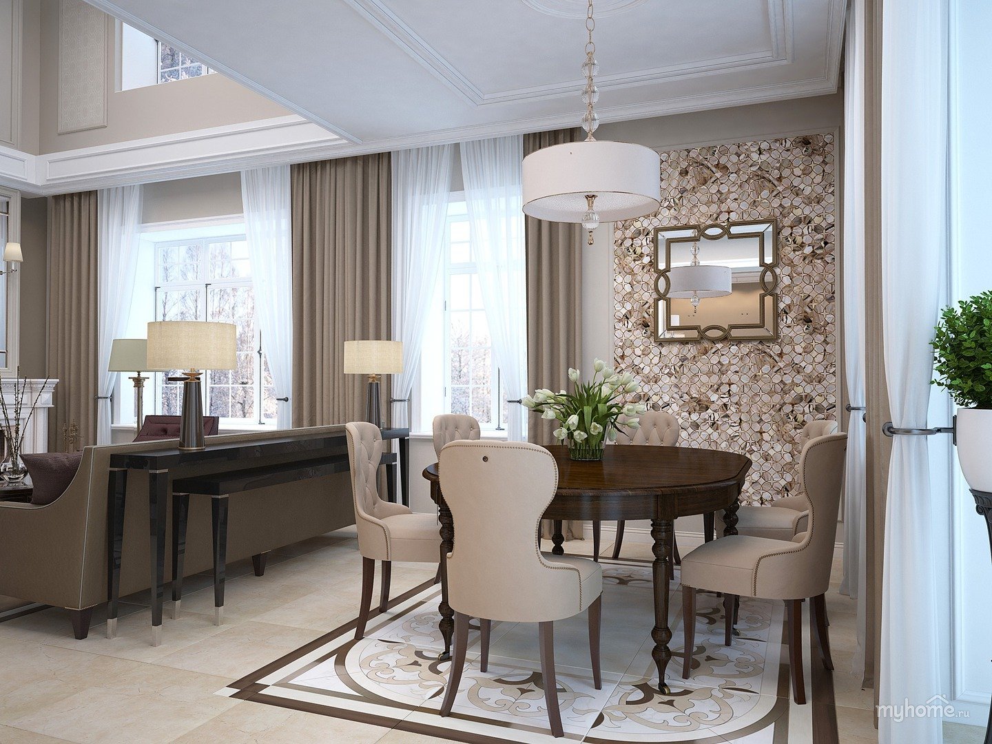 Обеденный стол в гостиной в интерьере