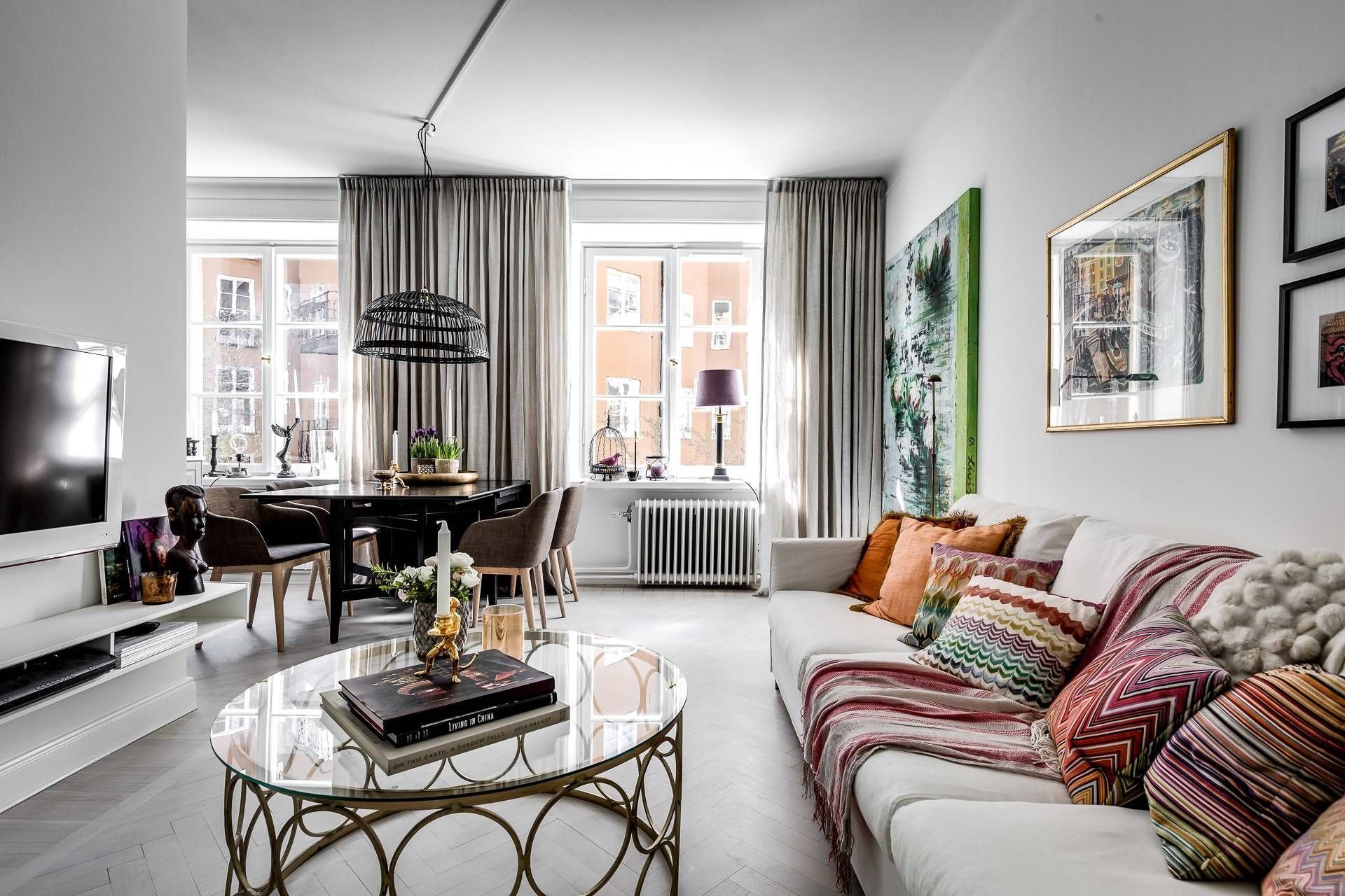 Скандинавский интерьер с яркими шторами