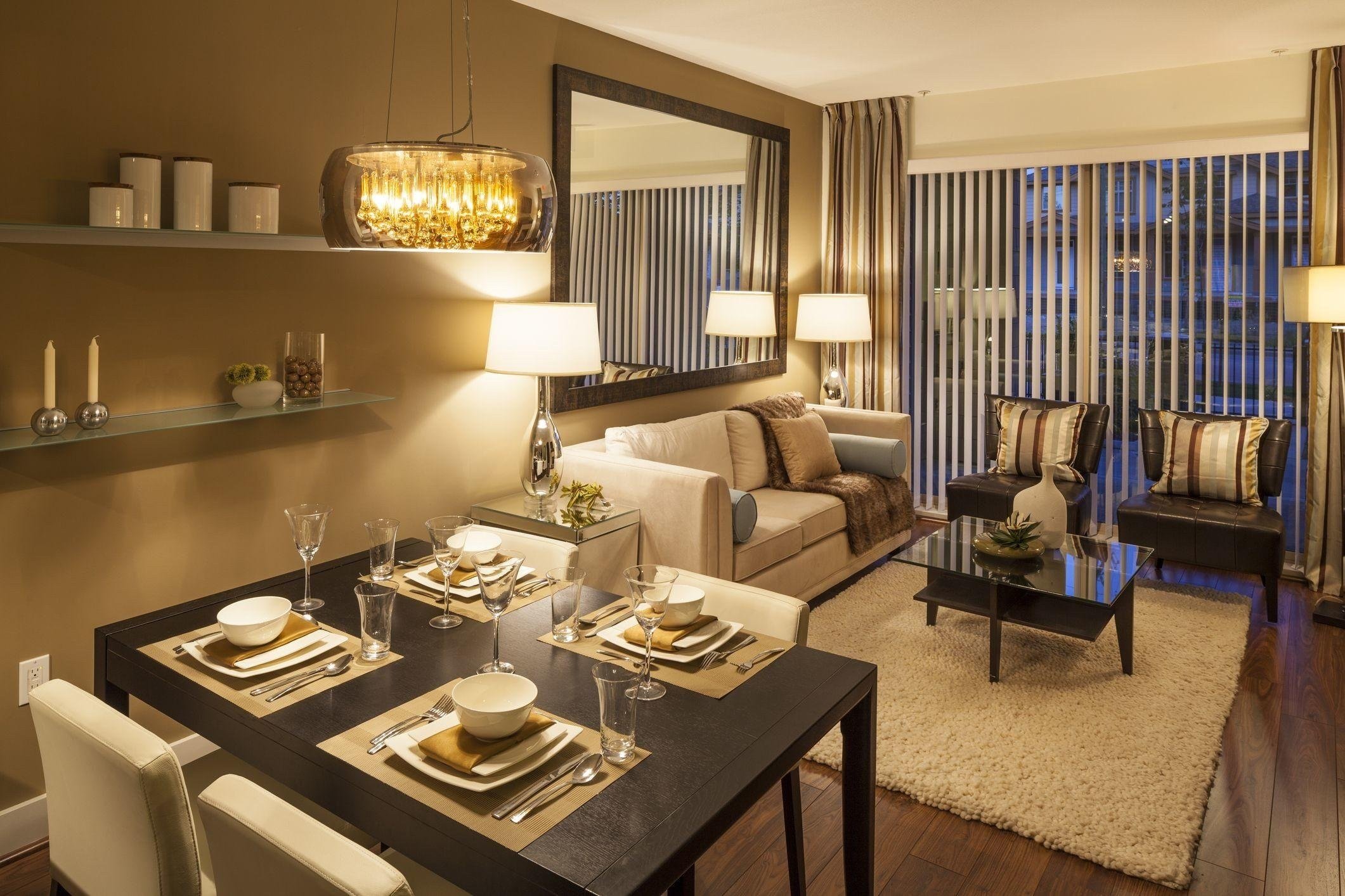 Небольшая гостиная с обеденным столом