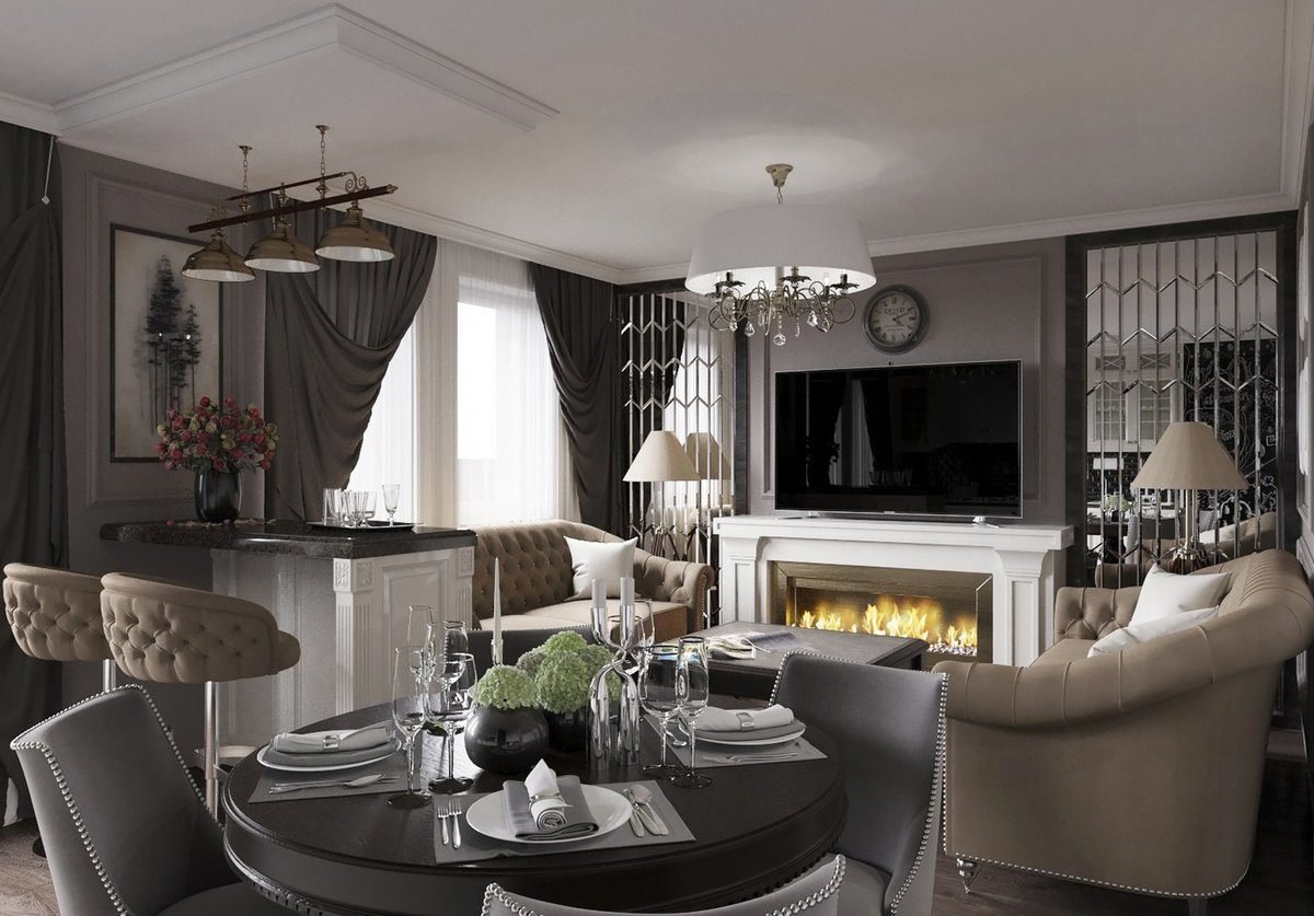 Гостиная столовая ар деко
