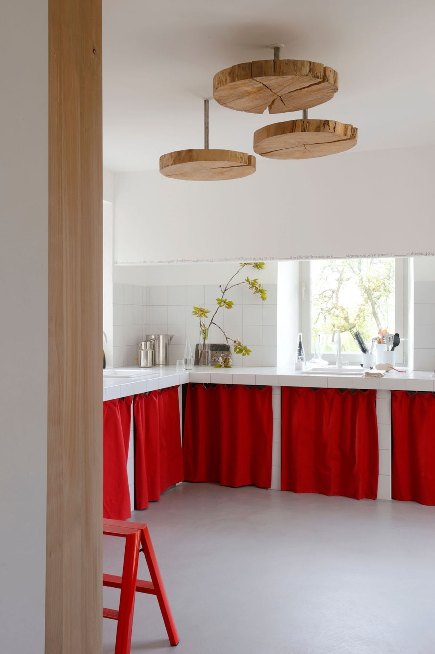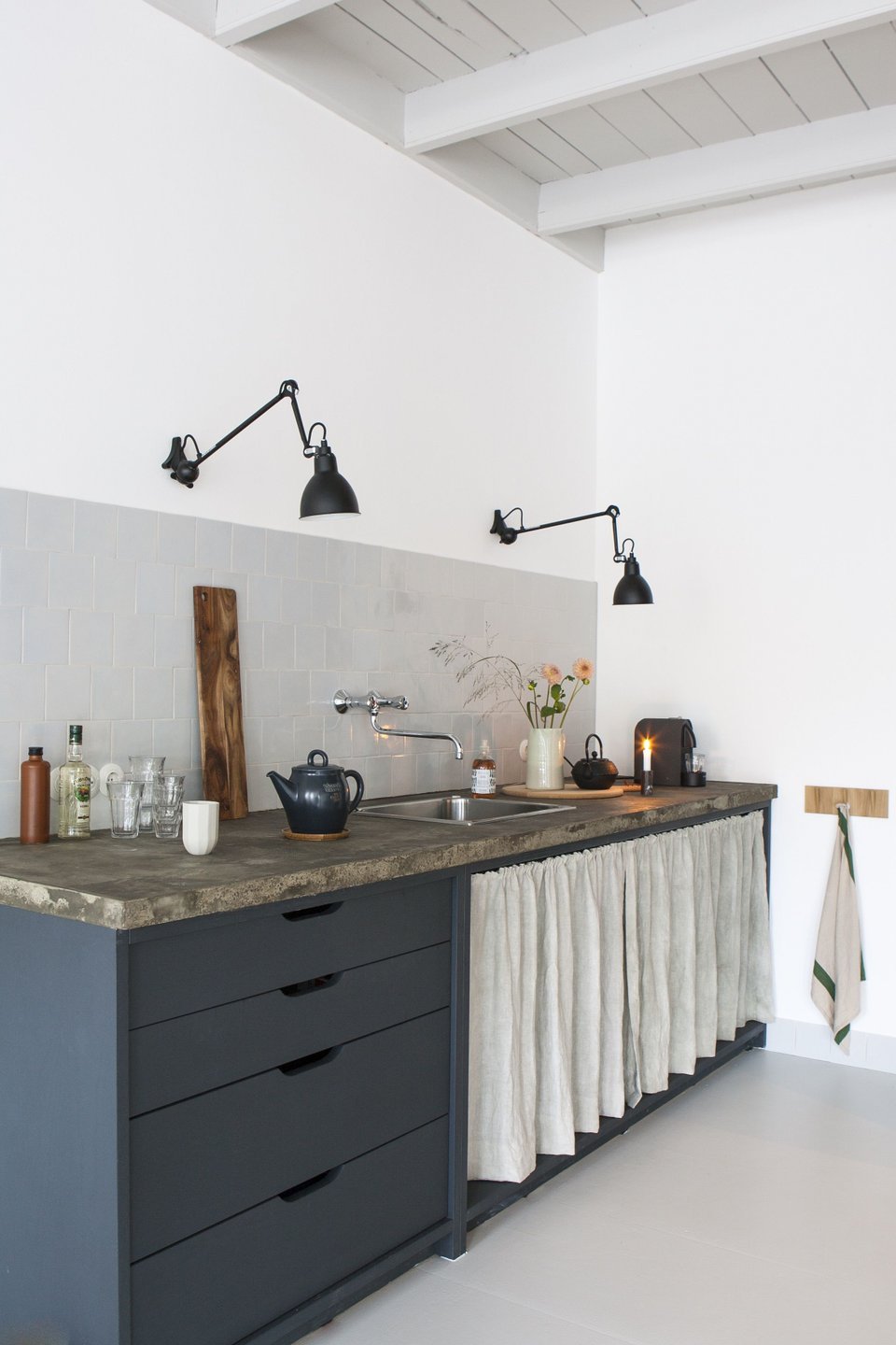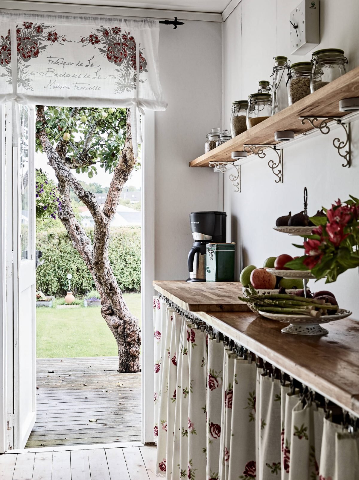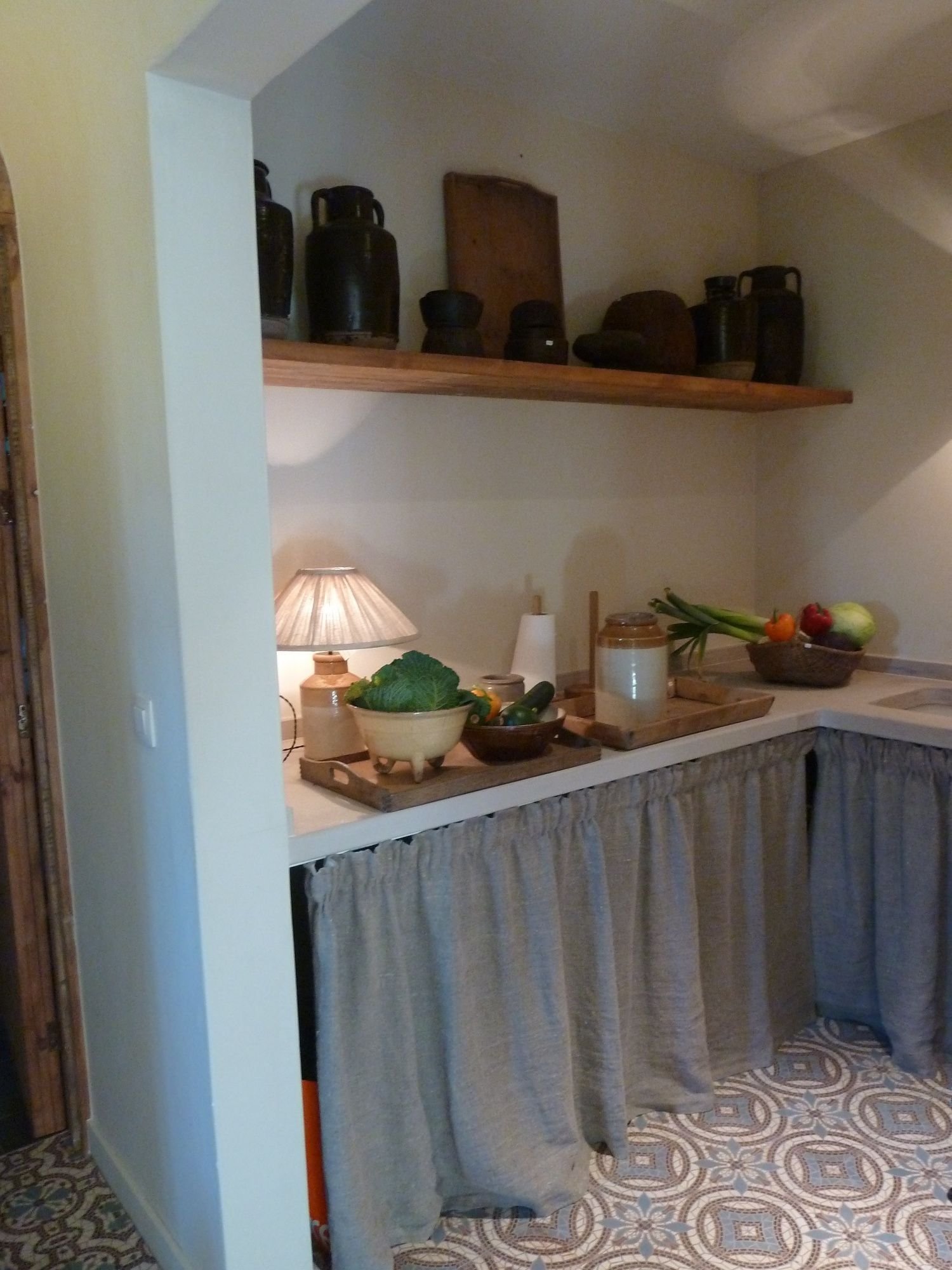 Кухня с занавесками вместо фасадов
