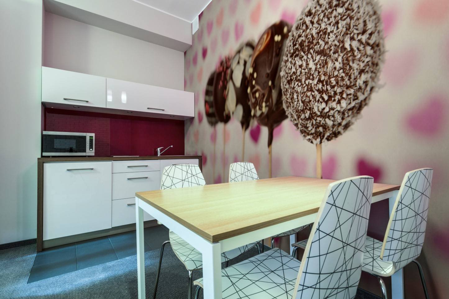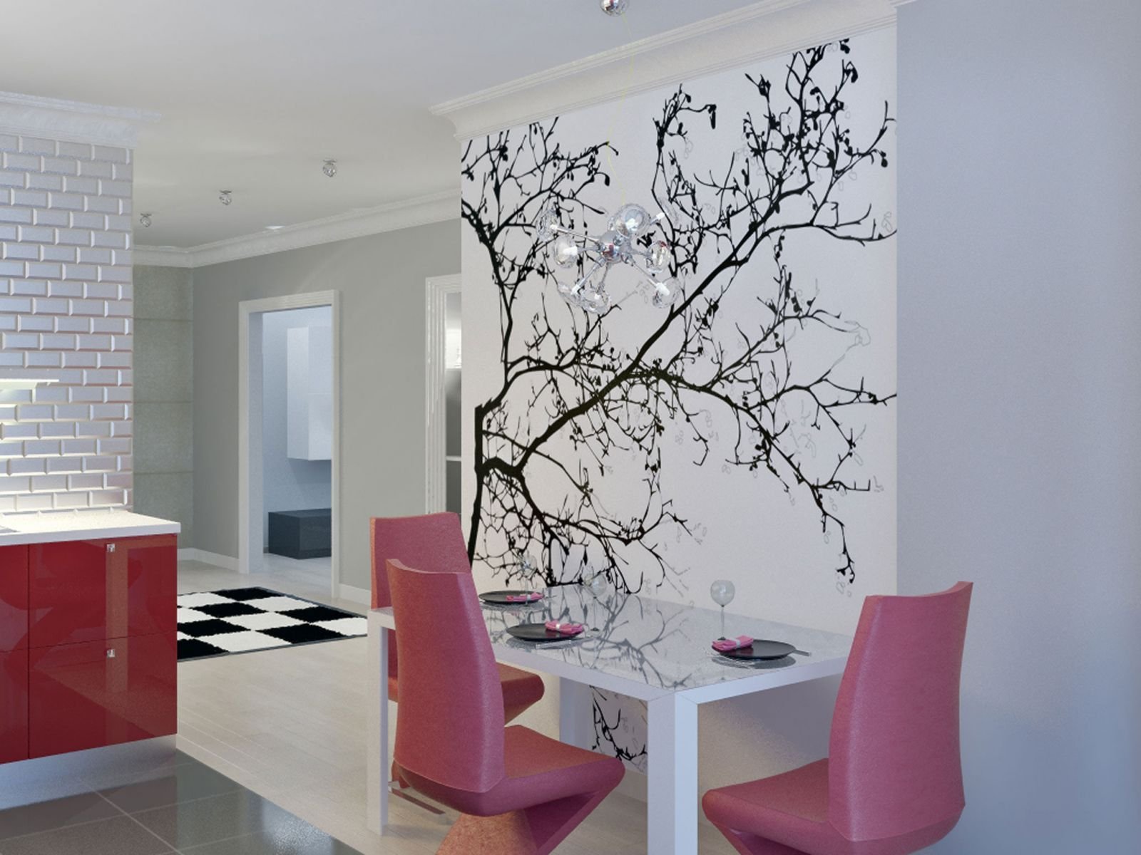 Фотообои для малиновой кухни