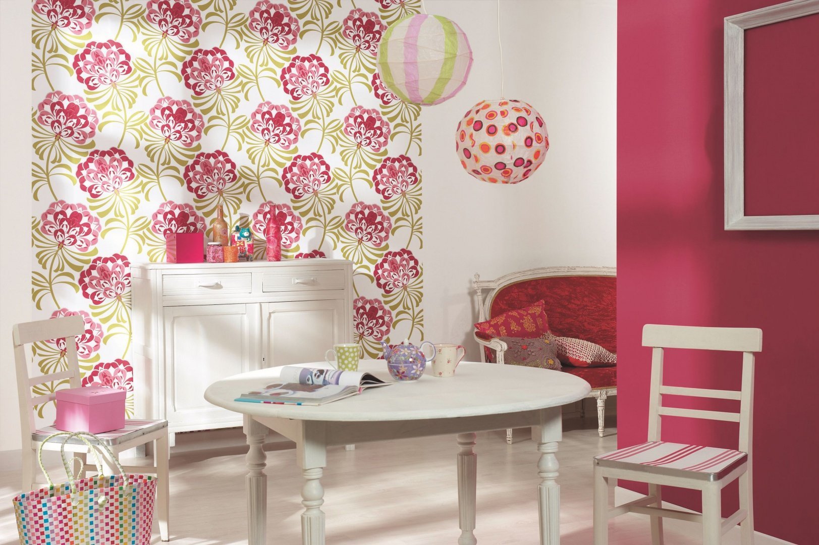 Зеленый и розовый в интерьере