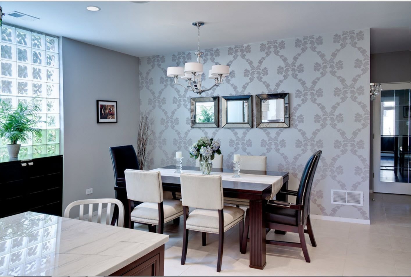 Комбинированные обои для кухни в интерьере