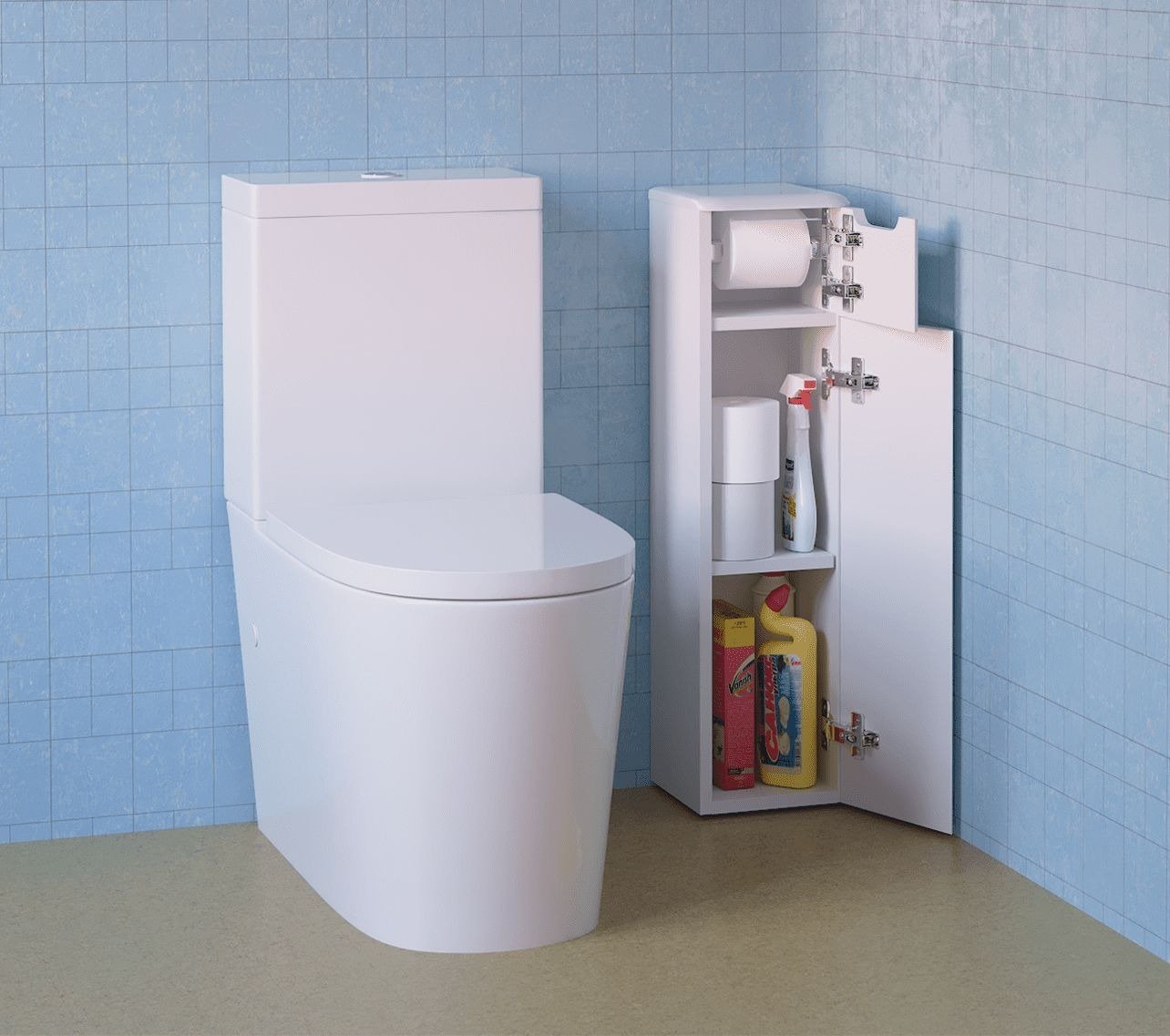 Узкий шкаф в туалет напольный