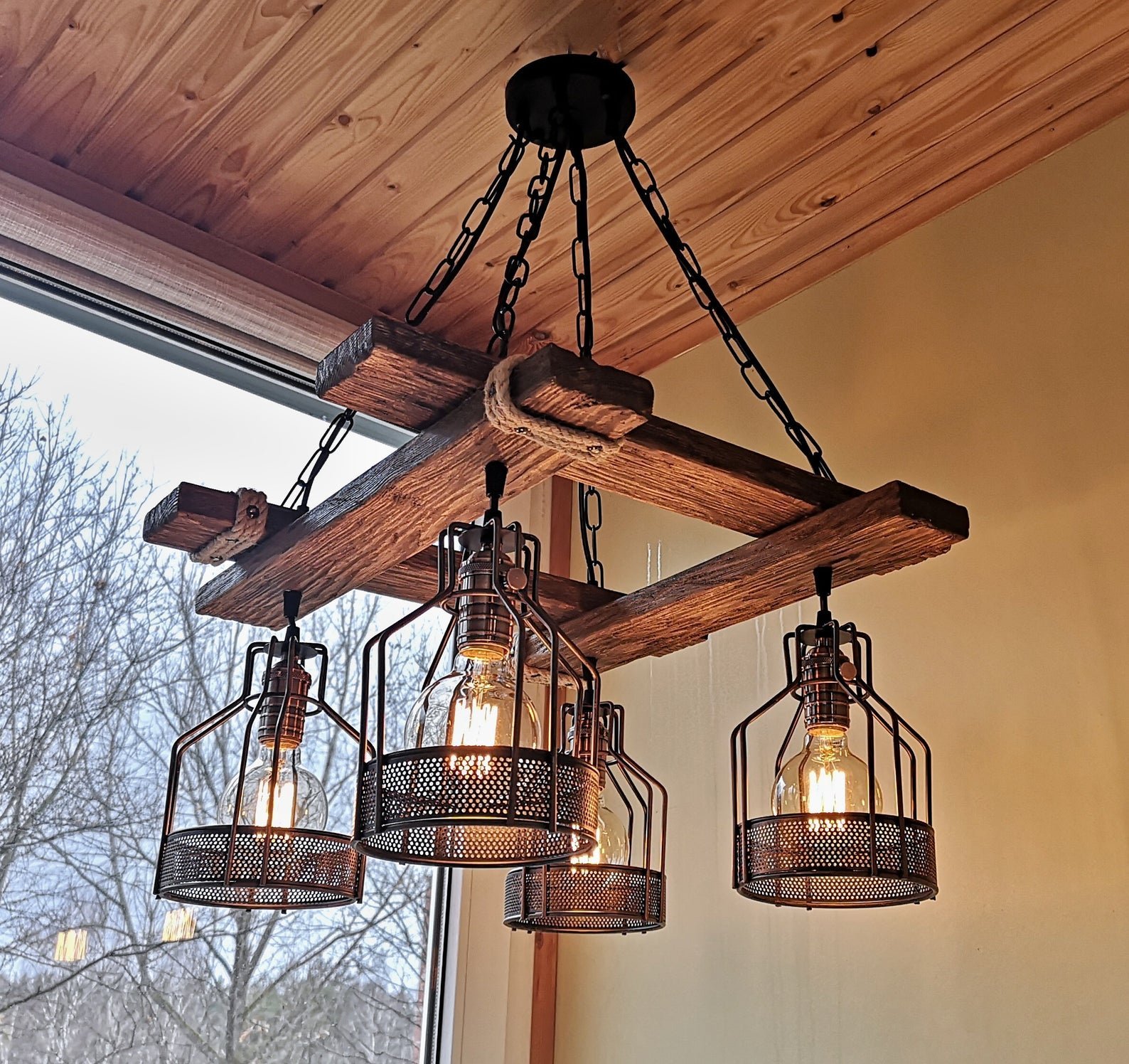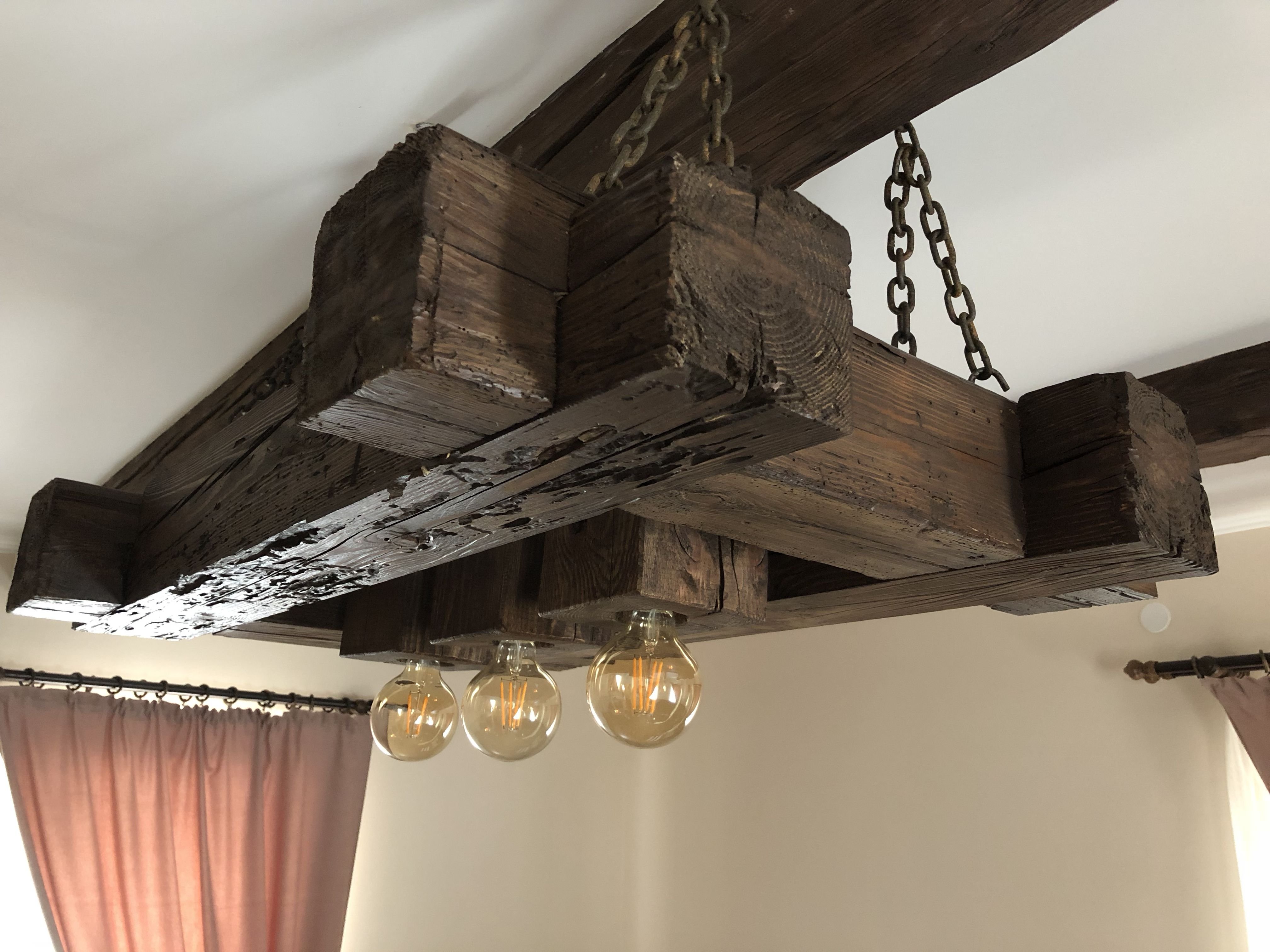 Люстра из состаренного дерева