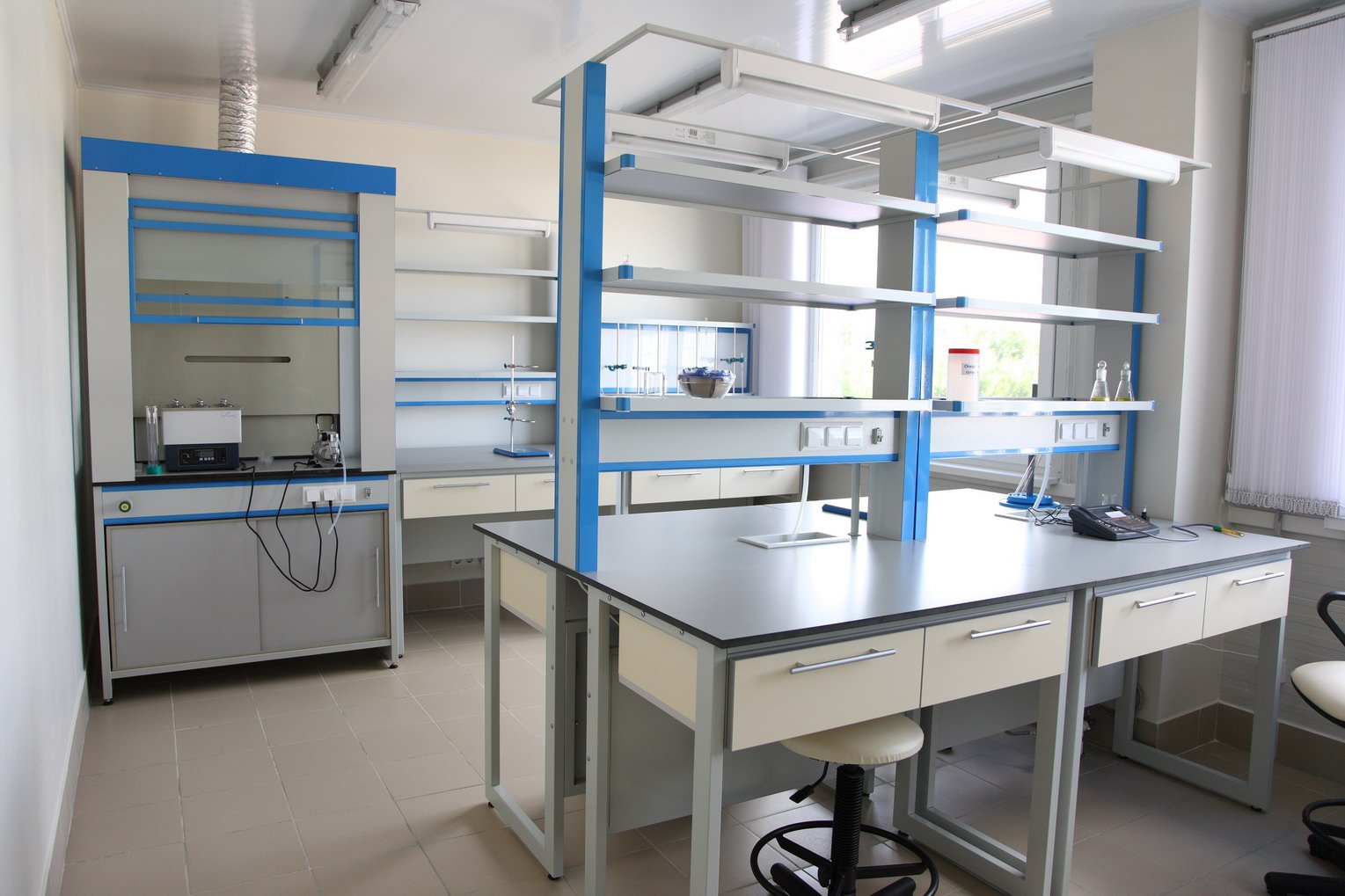 Стол лабораторный островной с интегрированной сервисной стойкой
